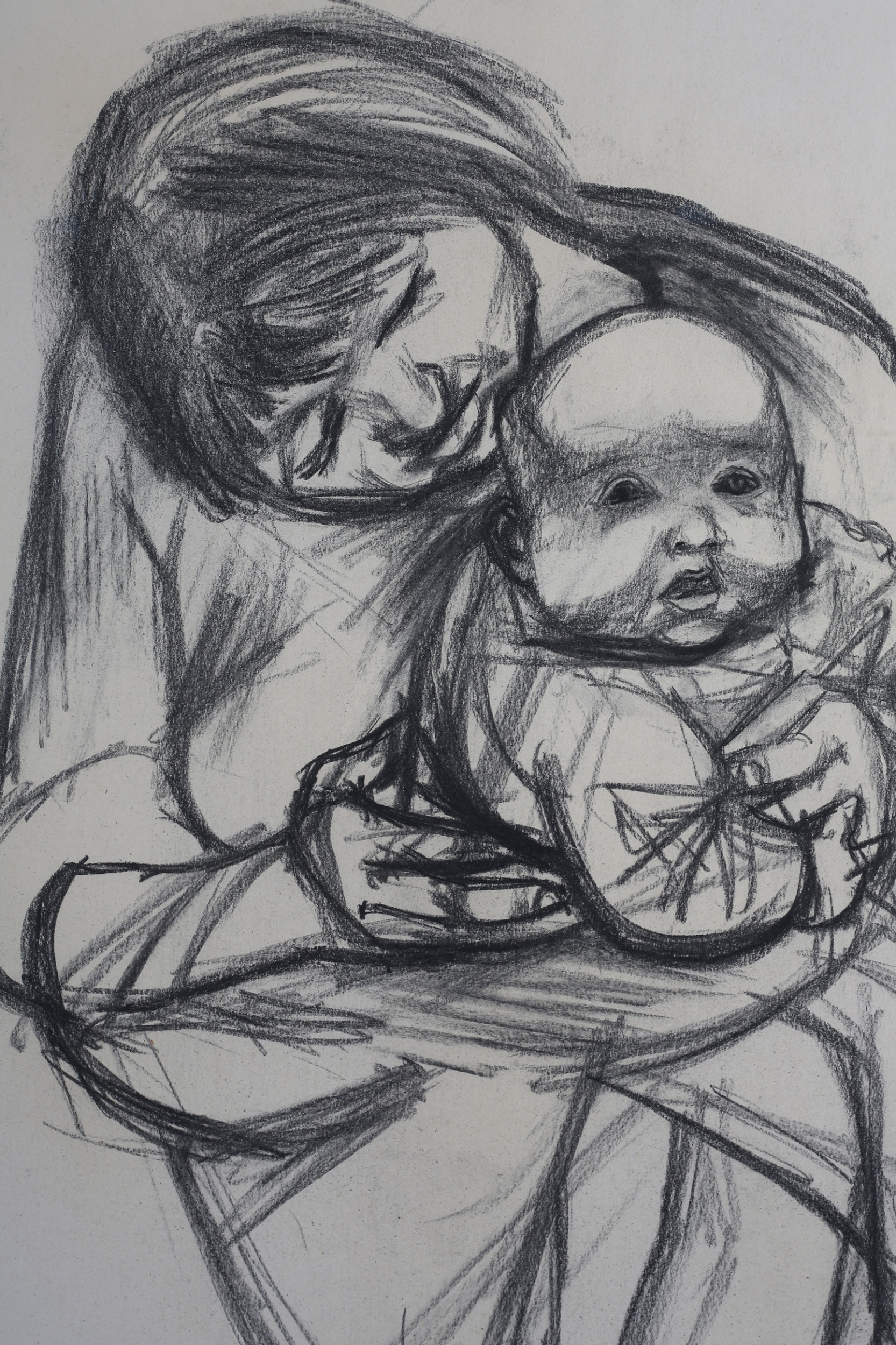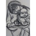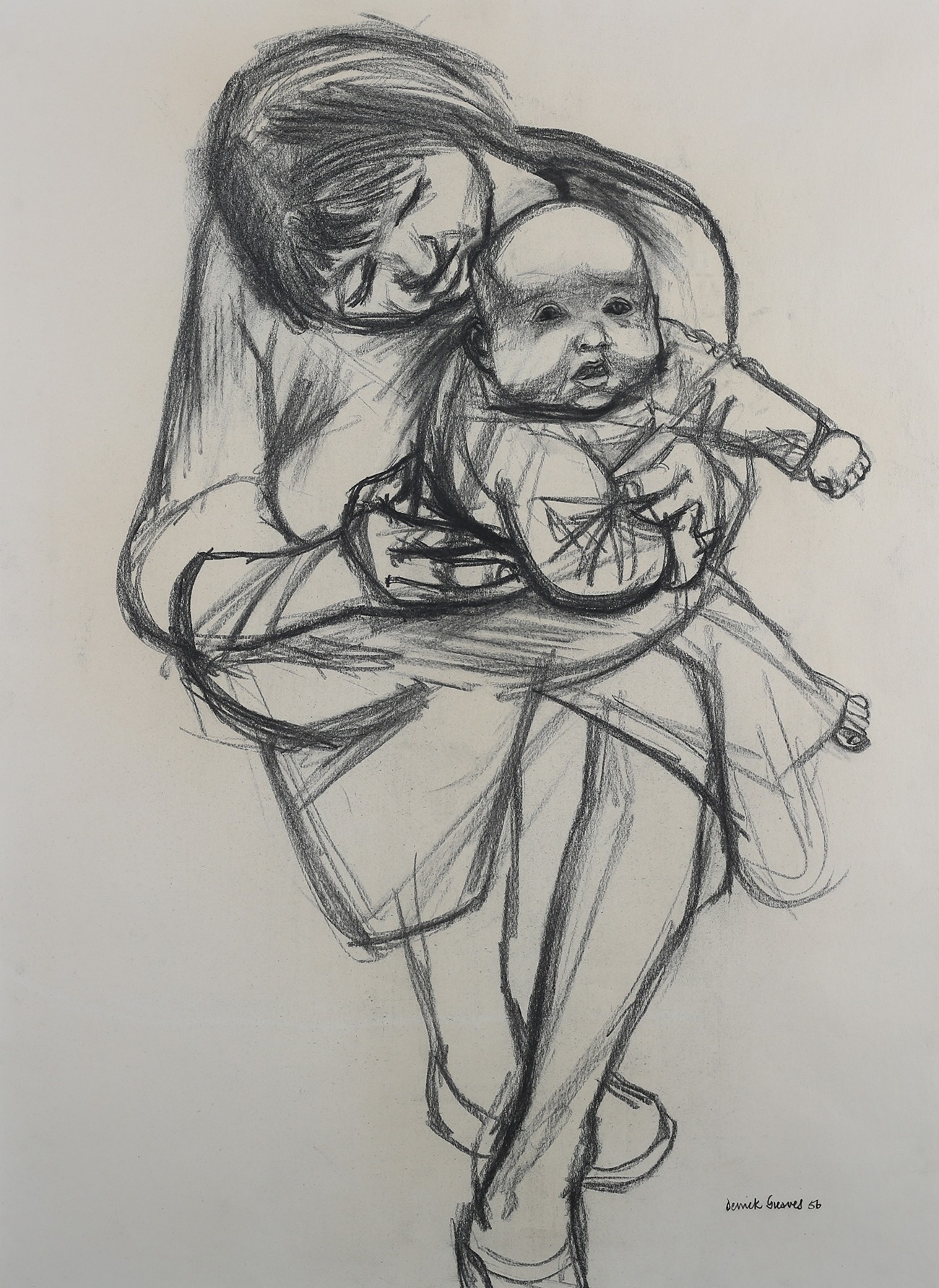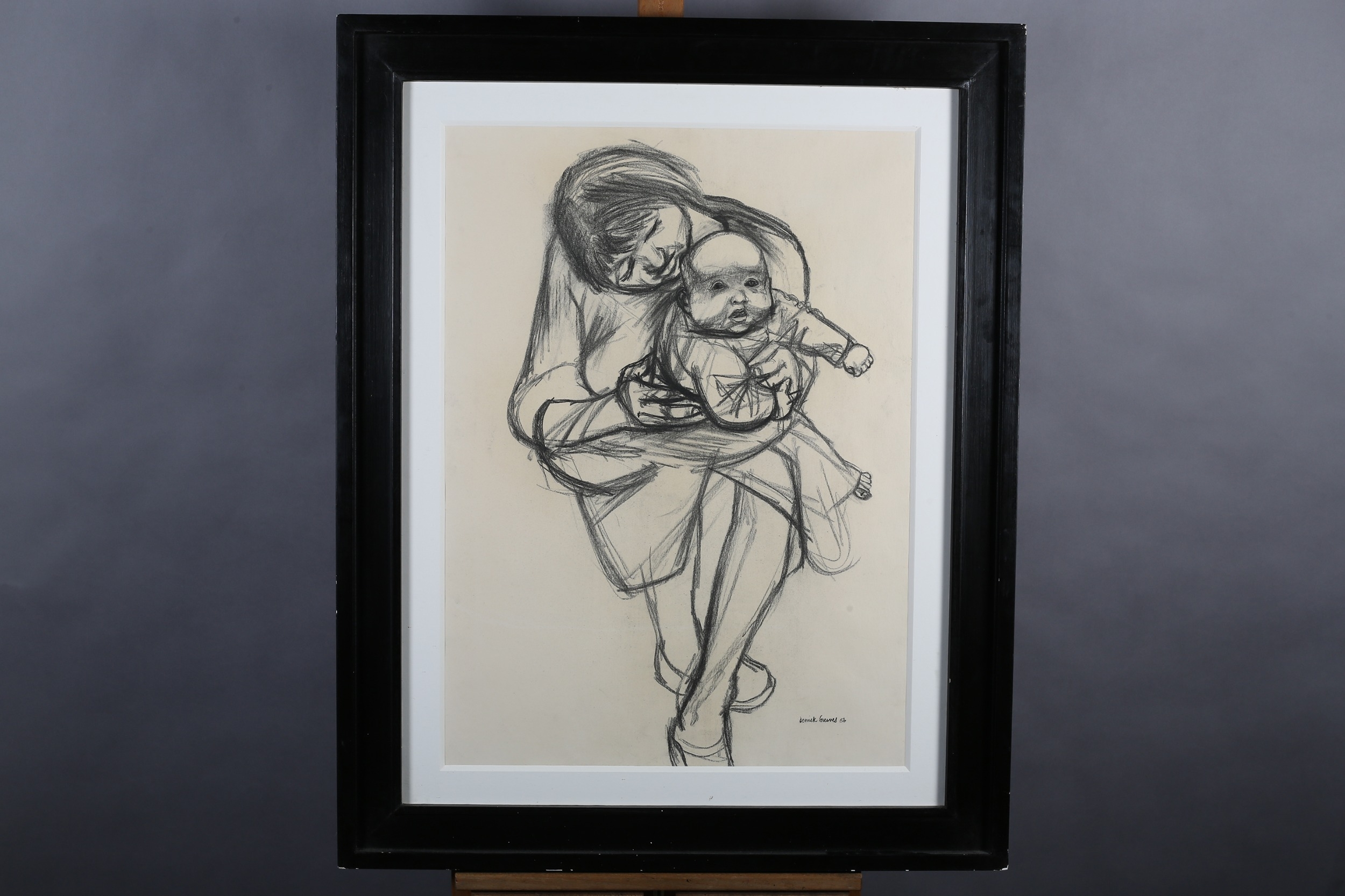 ARR DERRICK GREAVES (1927-2002) Mother and Child, charcoal, signed and dated (19)56 to lower right 53.5cm x 74cm