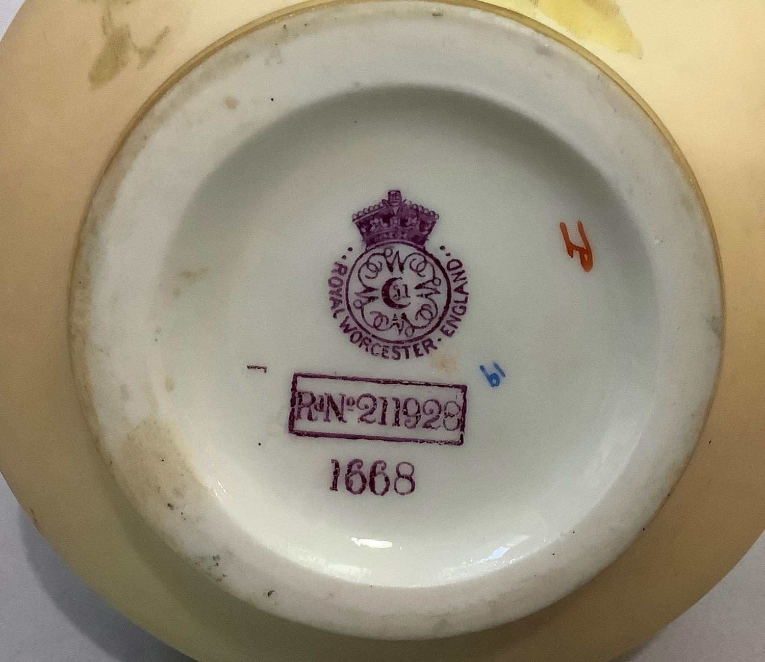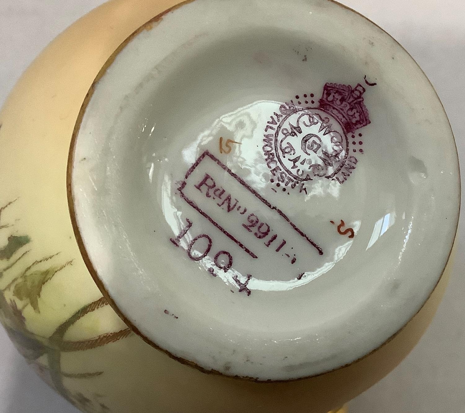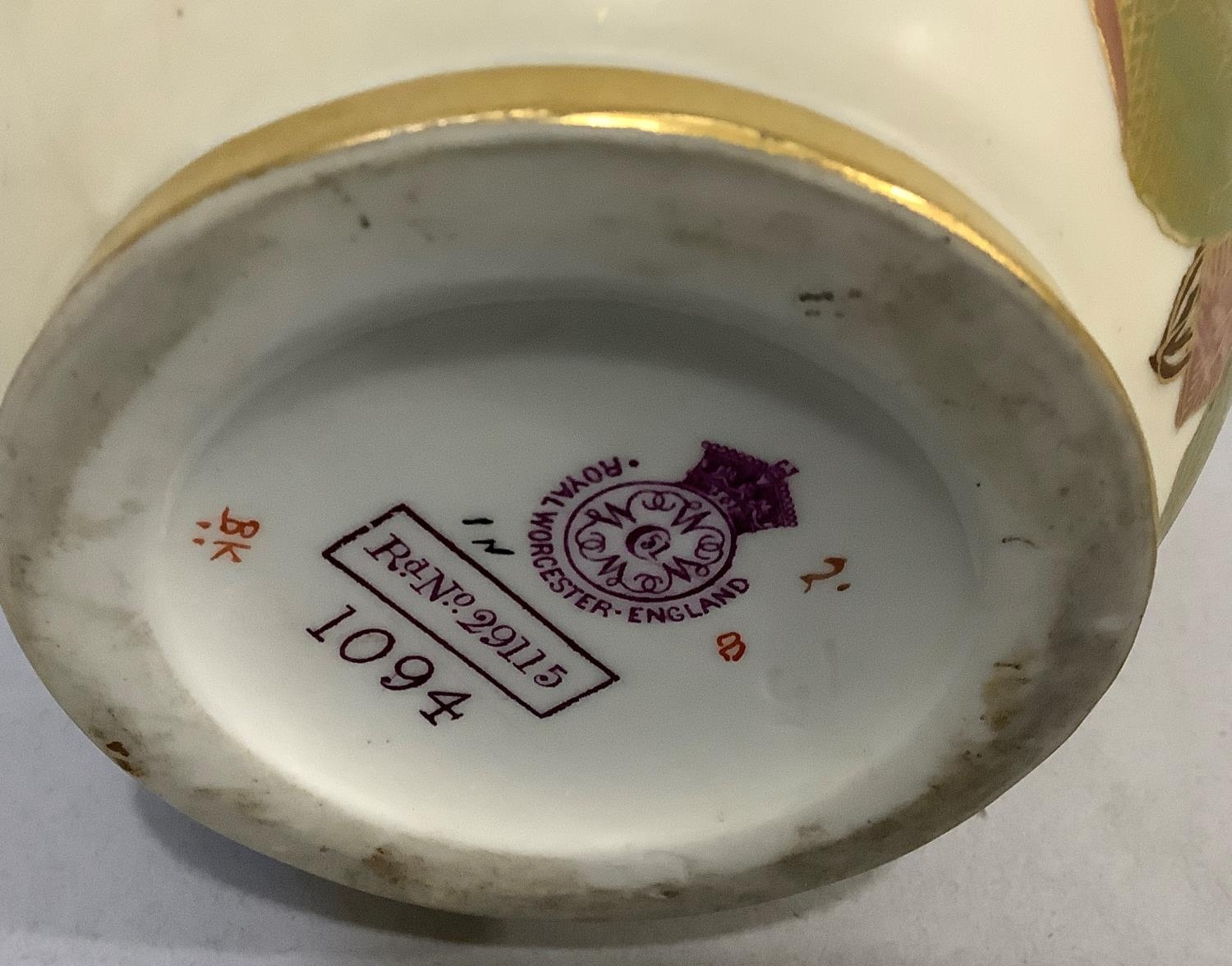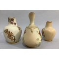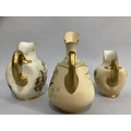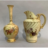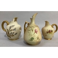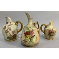 A ROYAL WORCESTER BLUSH IVORY JUG painted with butterfly, dragonfly and flowers, leaf capped handle, shape no. 1668, printed mark for 1895 17.5cm high together with two flat back jugs shape no 1094, 15.5cm and 13cm high printed marks for 1892 and 1906 (3)