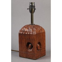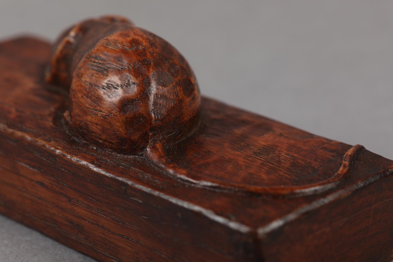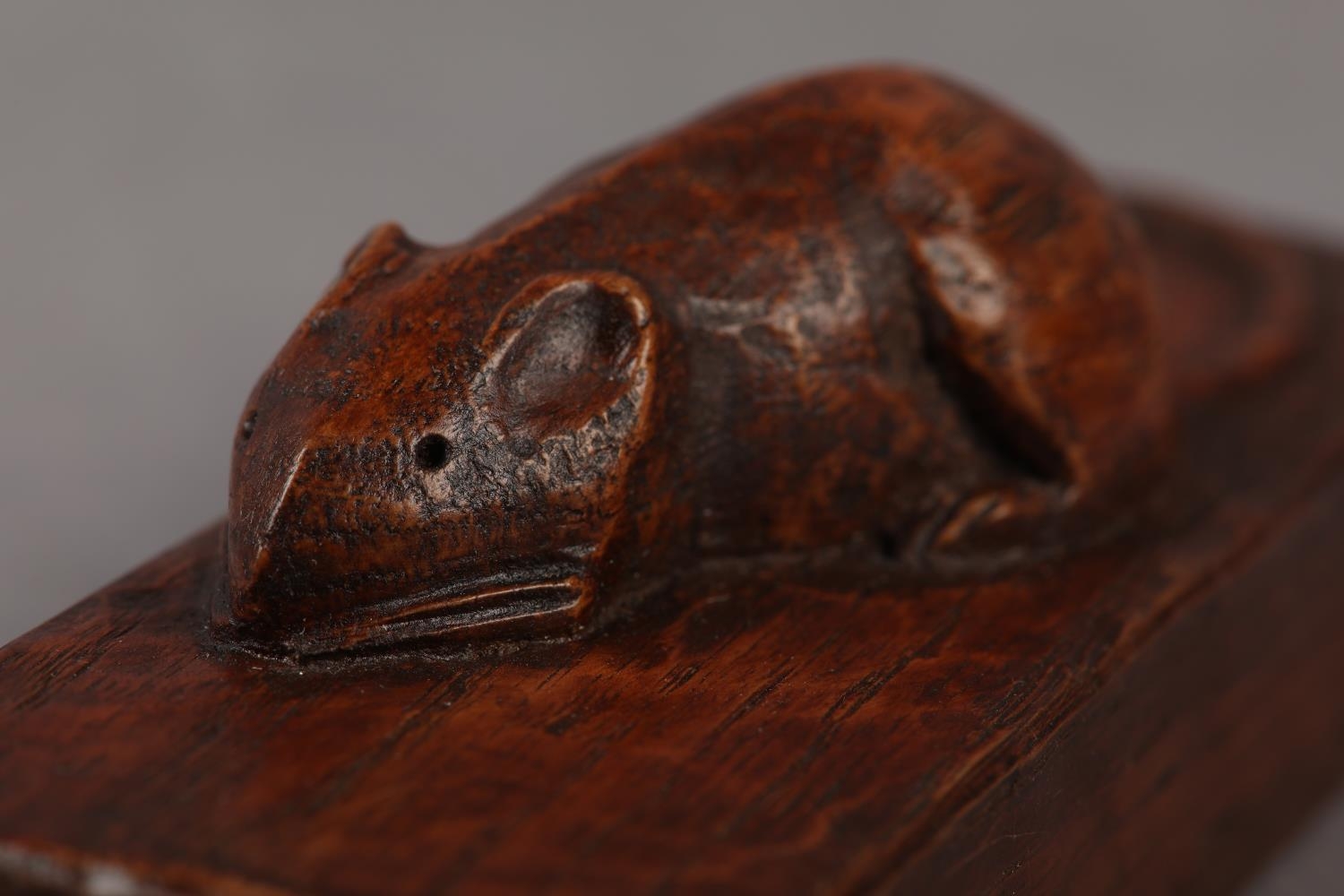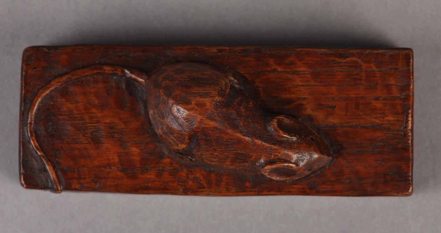 THOMPSON OF KILBURN 'MOUSEMAN' English oak apprentice piece carved with a mouse in high relief, on a rectangular plinth, 11cm long x 4cm wide x 4cm high