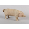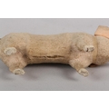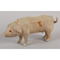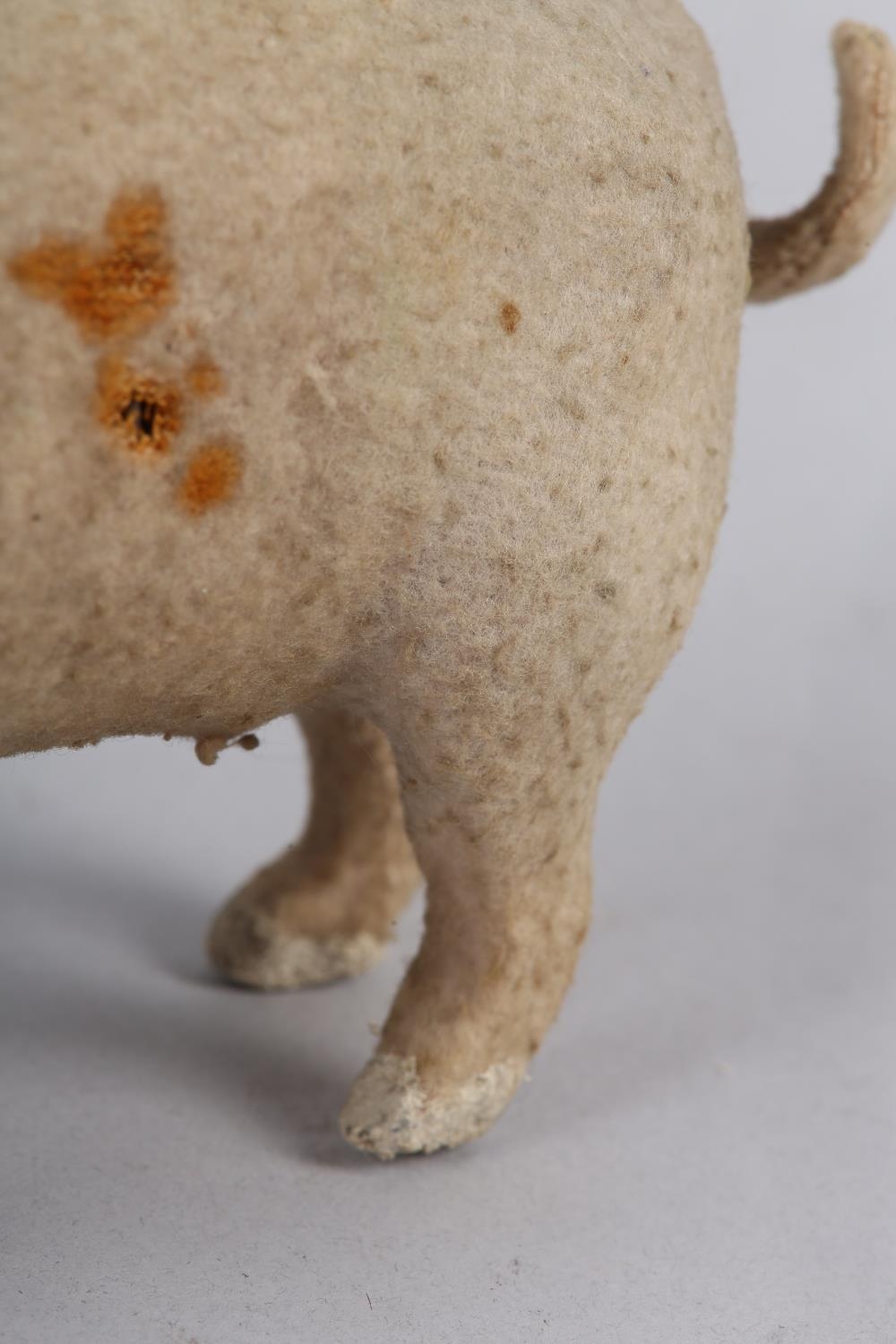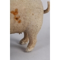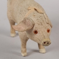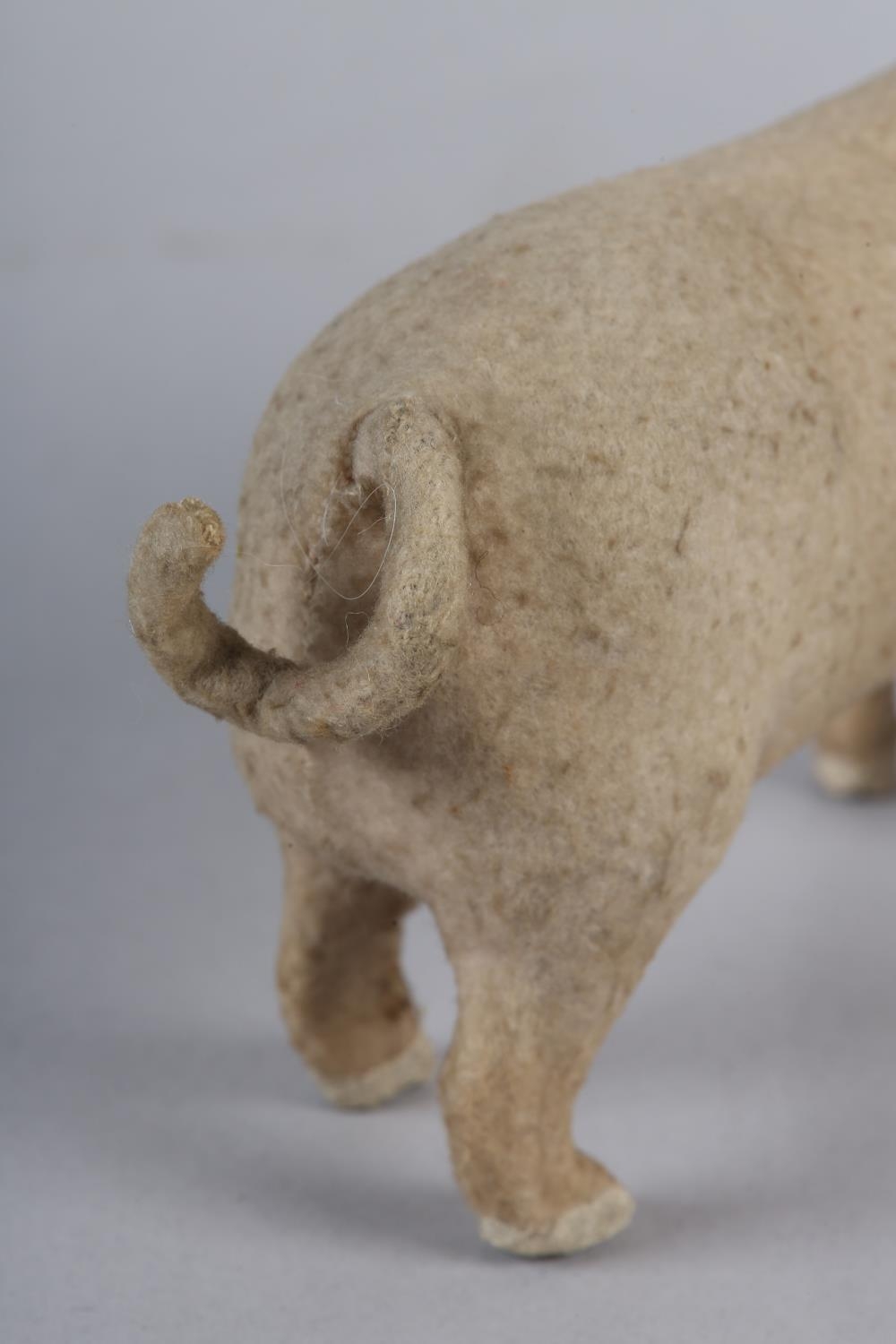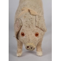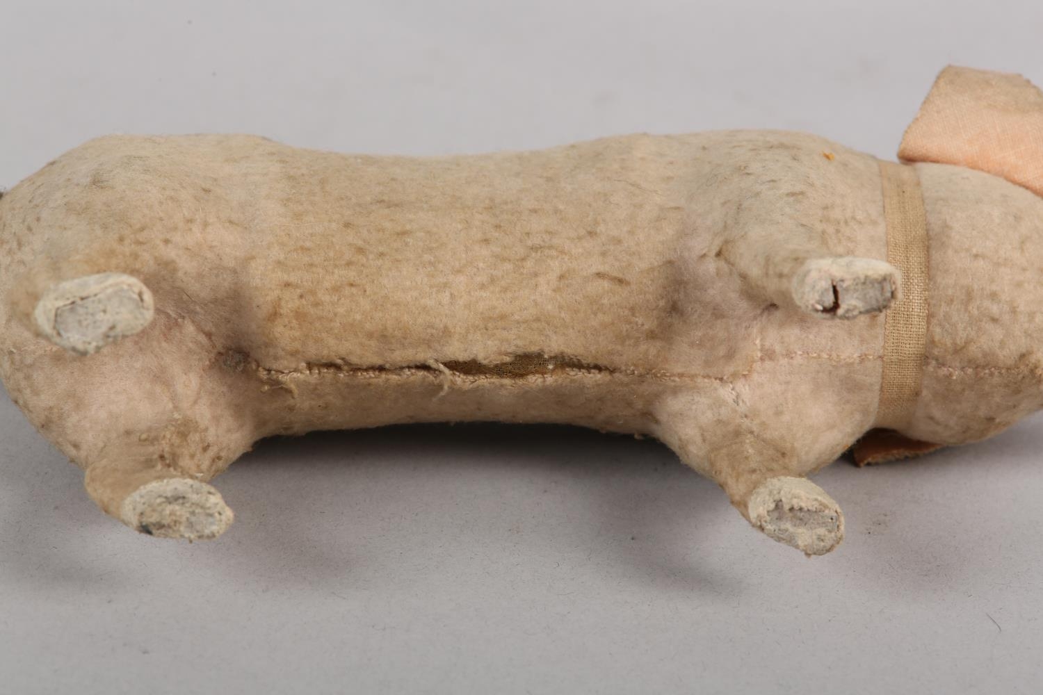 A LATE 19TH/EARLY 20TH CENTURY PINK FELT PIG, probably German, with squeak concertina (at fault), with glass amber eyes, 22cm long x 9.5cm high
