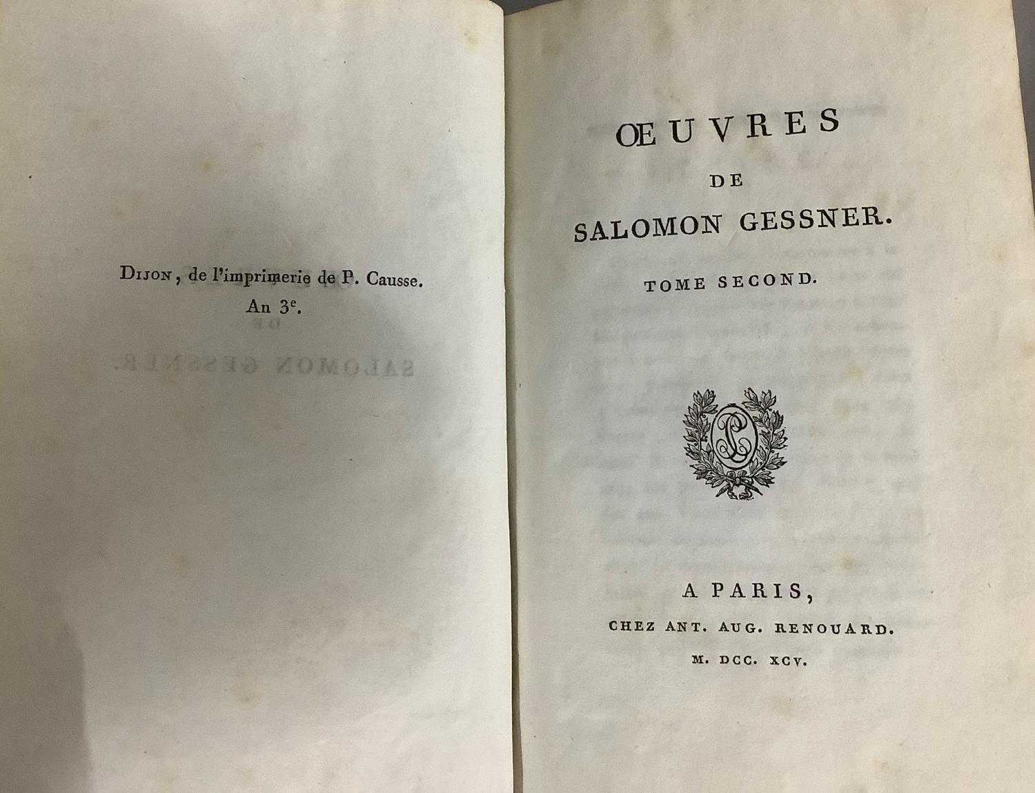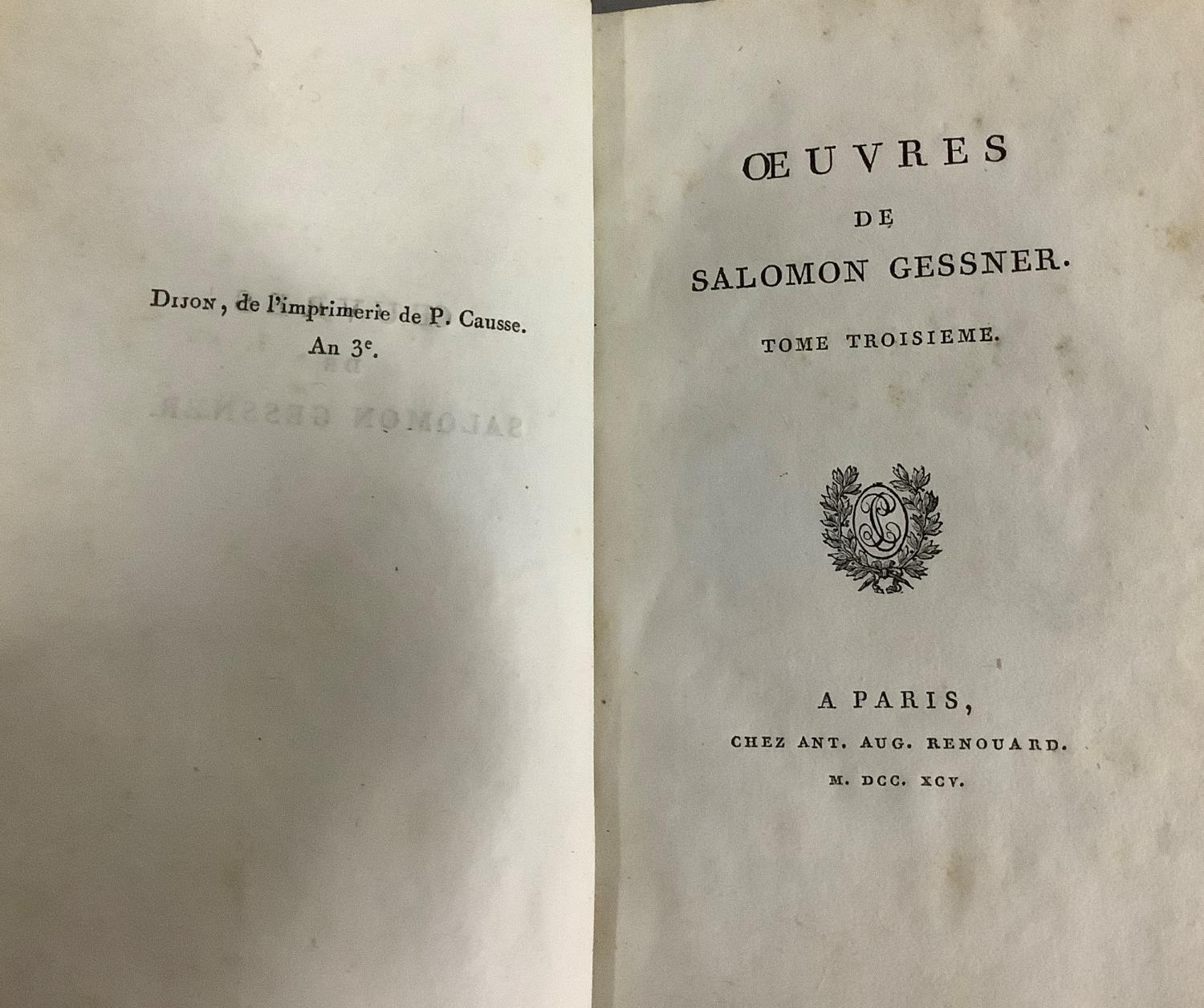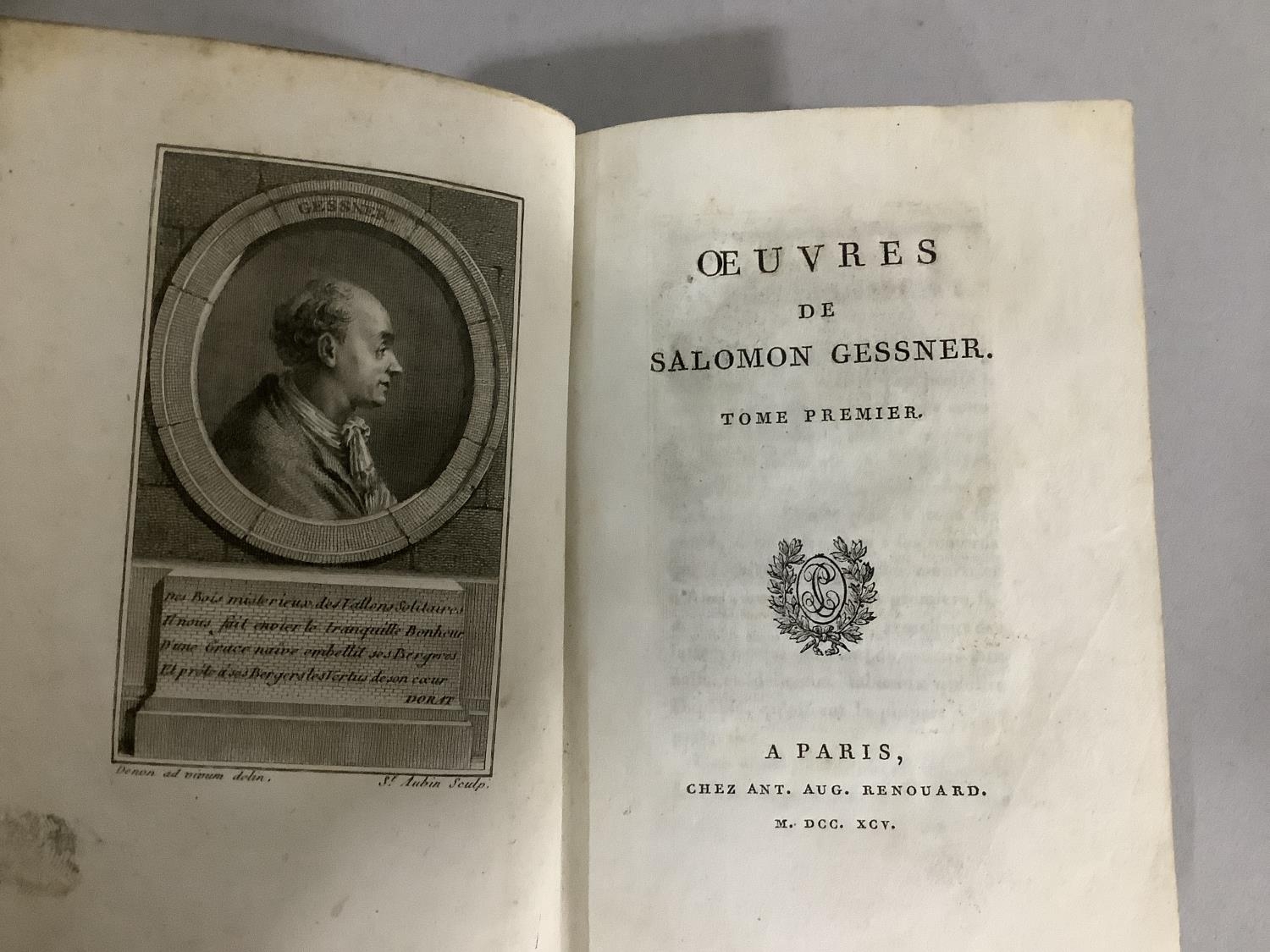 GESSNER, SALOMON - Oeuvres de, pub. Aug. Renouard 1795, cols. 1, 2 and 3 (of 4), engraved frontispiece, half calf and marbled boards
