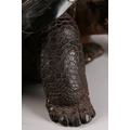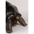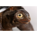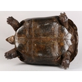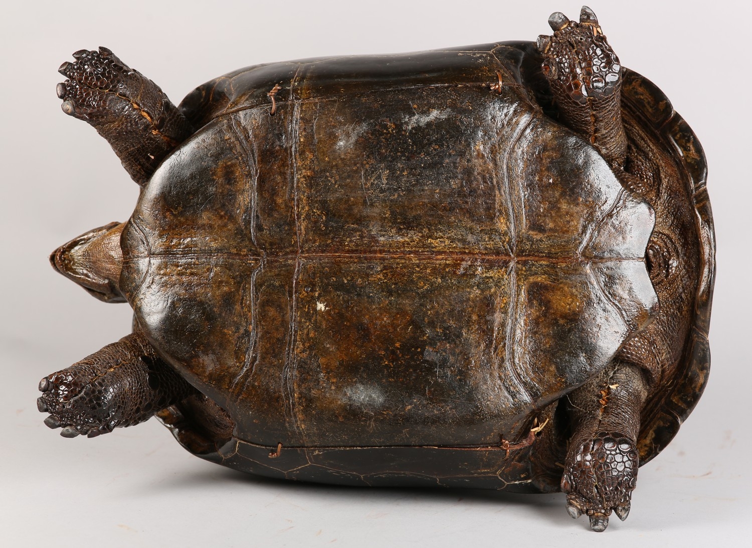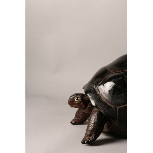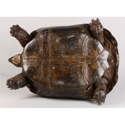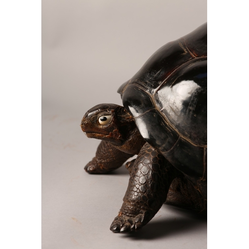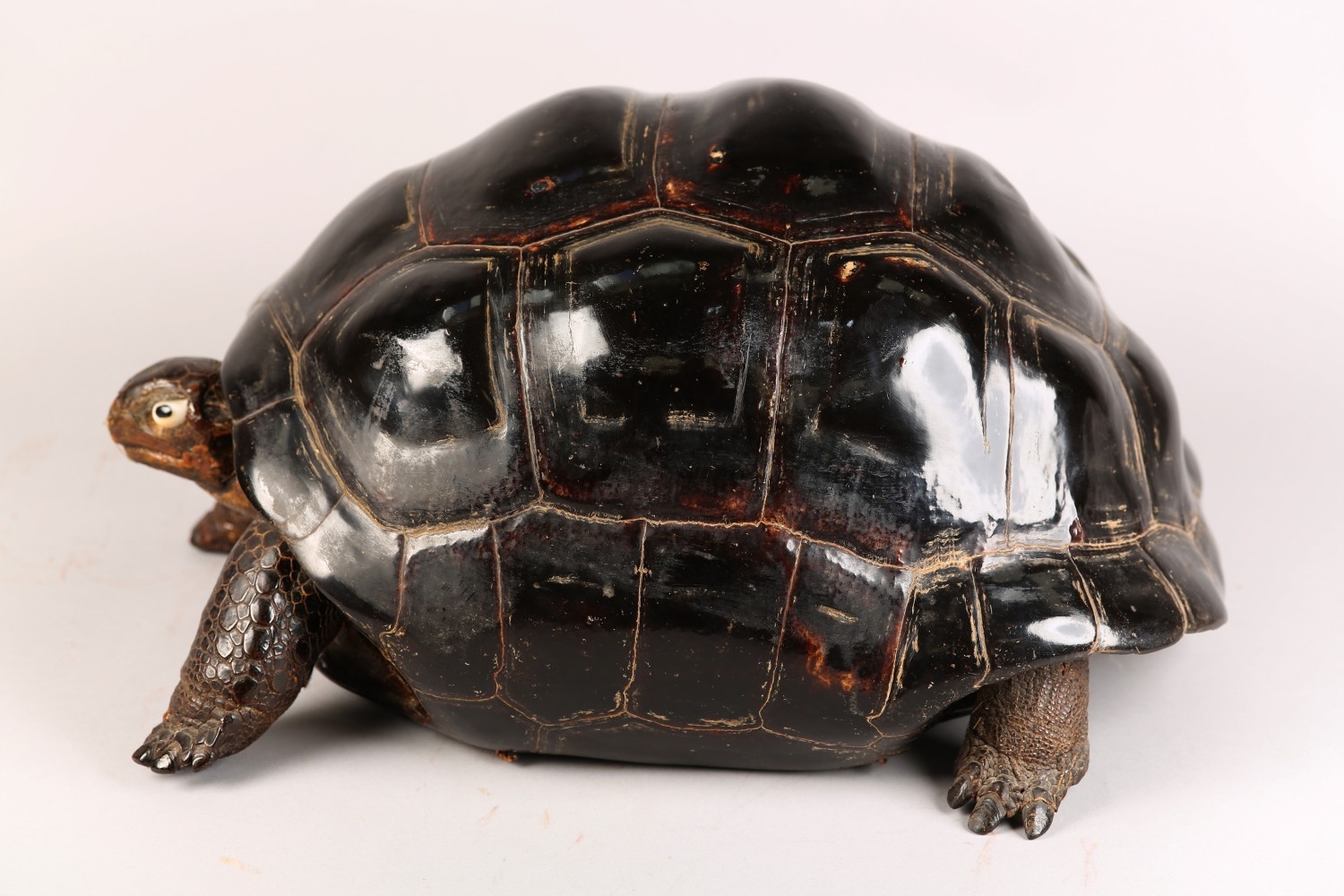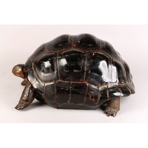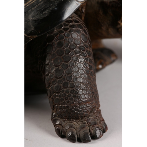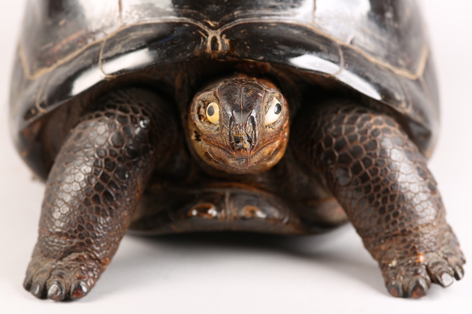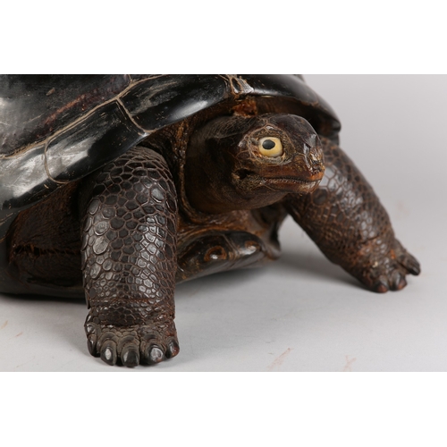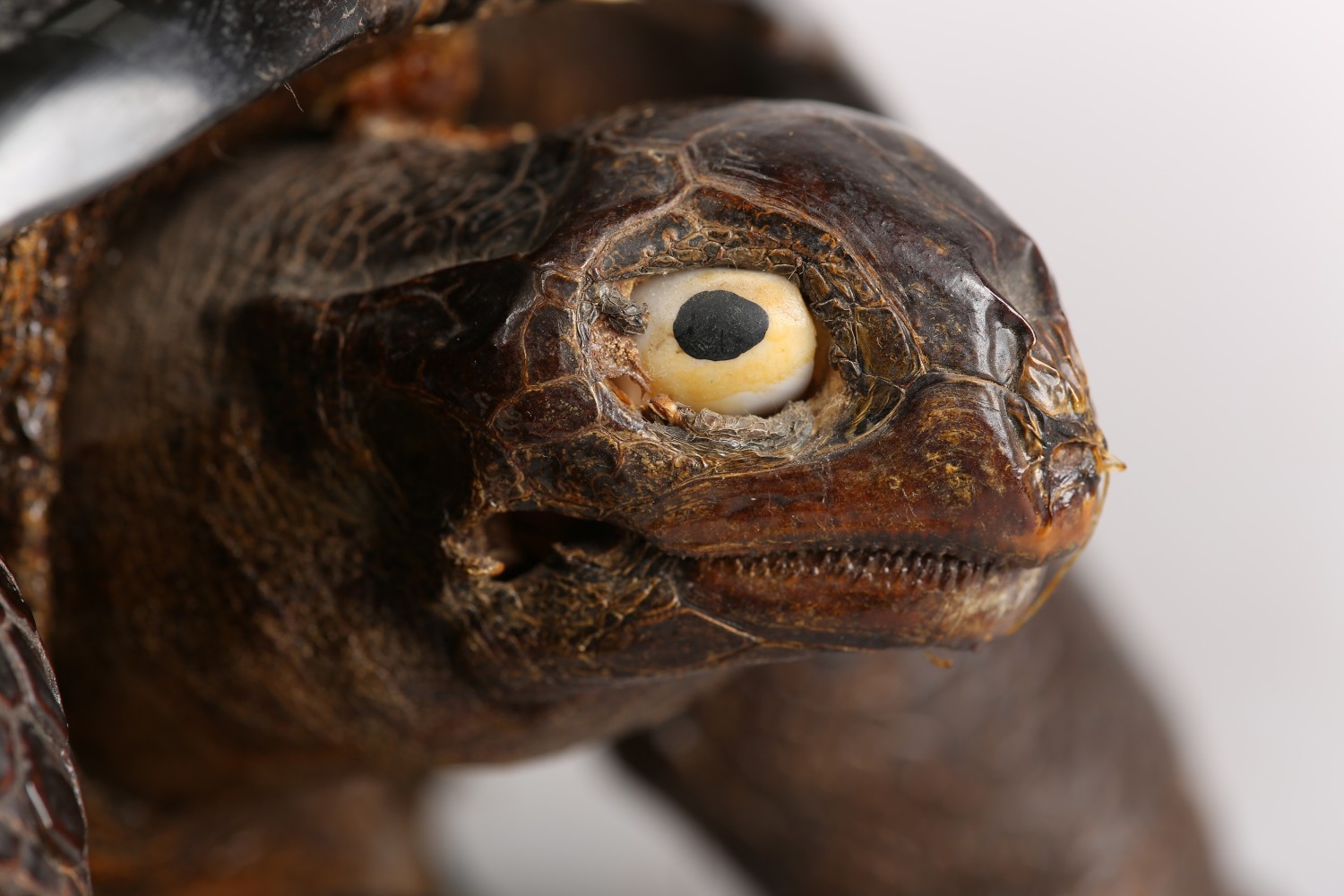 TAXIDERMY: AN ALDABRA GIANT TORTOISE (πππ₯π’π£π³π’π€π©π¦ππΊπ΄ ππͺπ¨π’π―π΅π¦π’) late 19th/early 20th century, well modelled, full body mount with seashell eyes, the body stuffed with wood shavings, 48cm long x 32cm wide x 25.5cm high. Probably a young female, Endemic to the Seychelles, the Aldabra giant tortoise is one of the largest in the world. Historically giant tortoises were found on many of the Western Indian Ocean islands but in the 17th to 19th centuries, they became a food source for sailors who captured and held them on board as a source of fresh meat. Numbers declined and eventually became extinct on many of the islands with the exception of those on the Aldabra atoll.