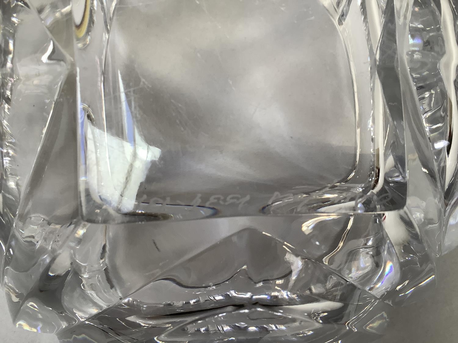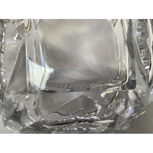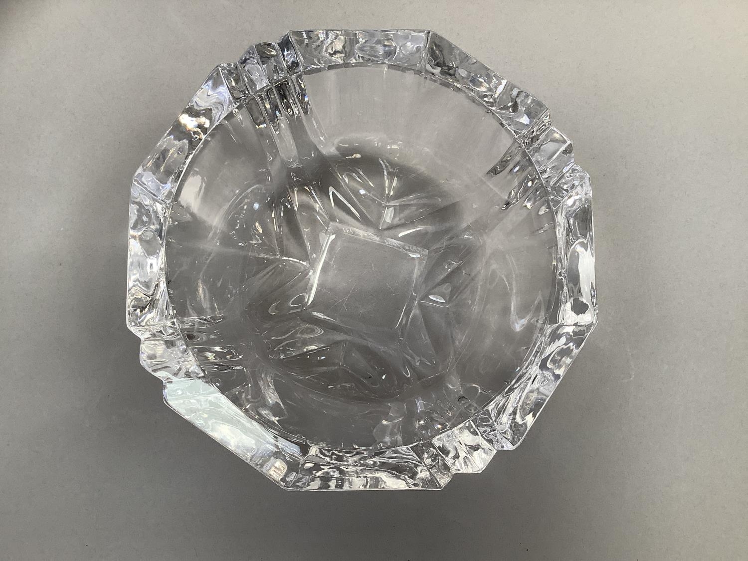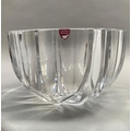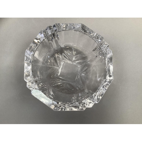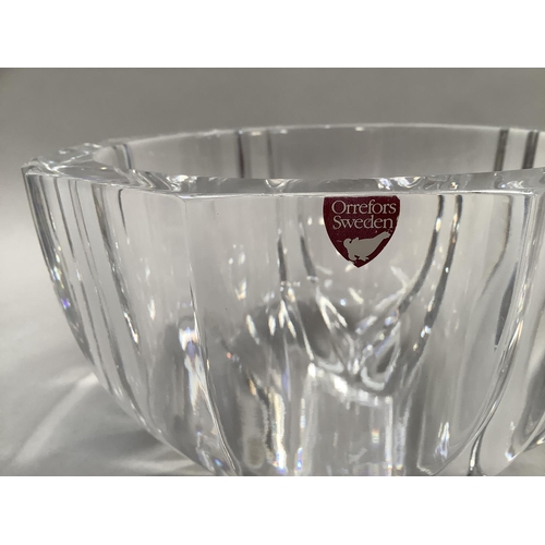 An Orrefors glass bowl, circular, of panelled form, signed to underside Orrefors 1534-131, original label, 18.5cm diameter x 11cm high