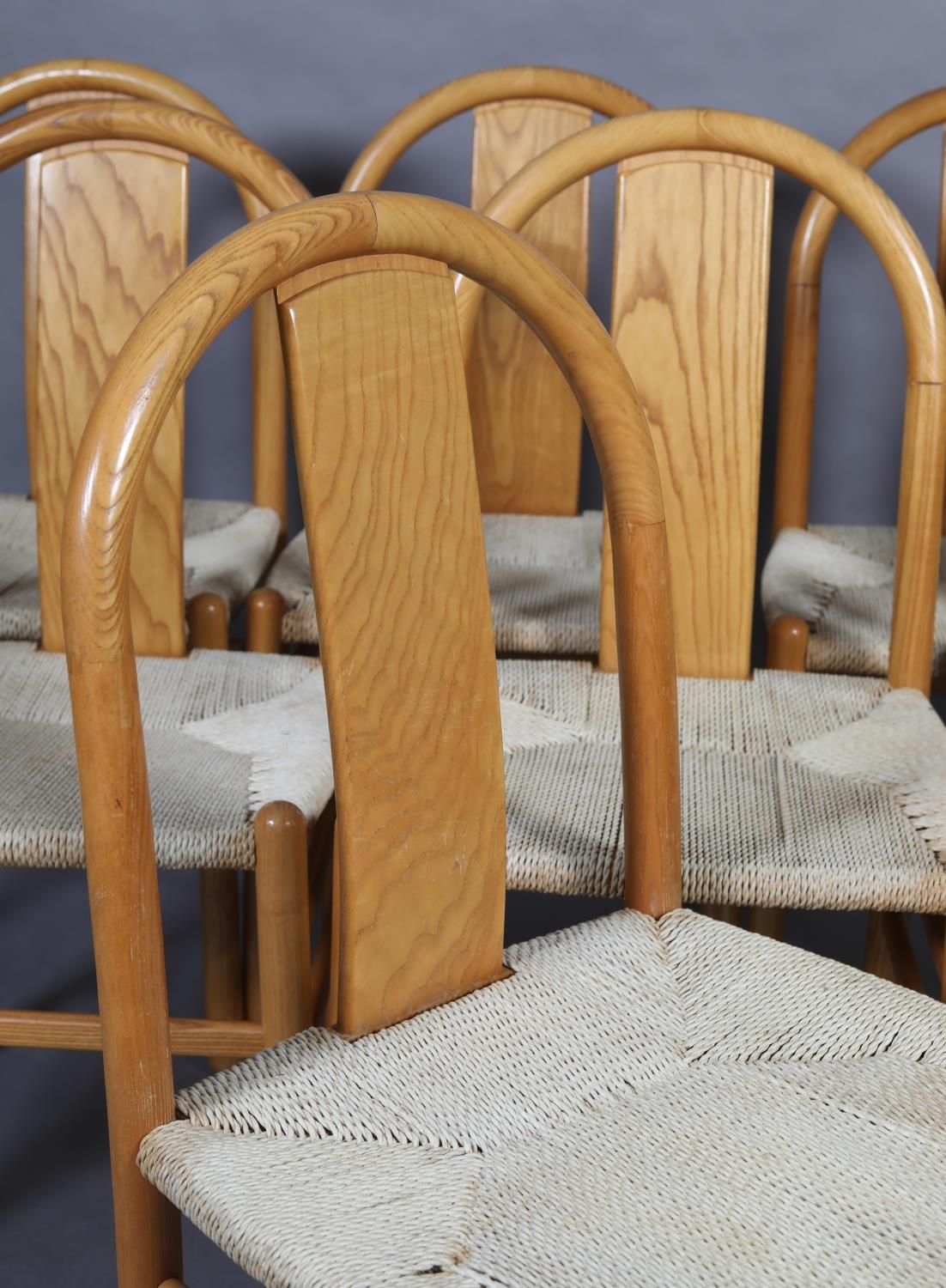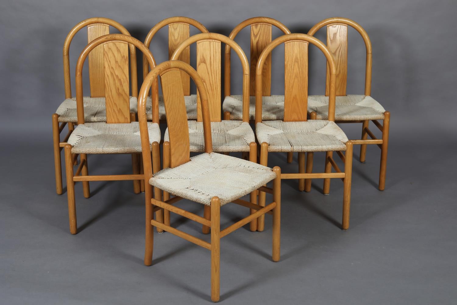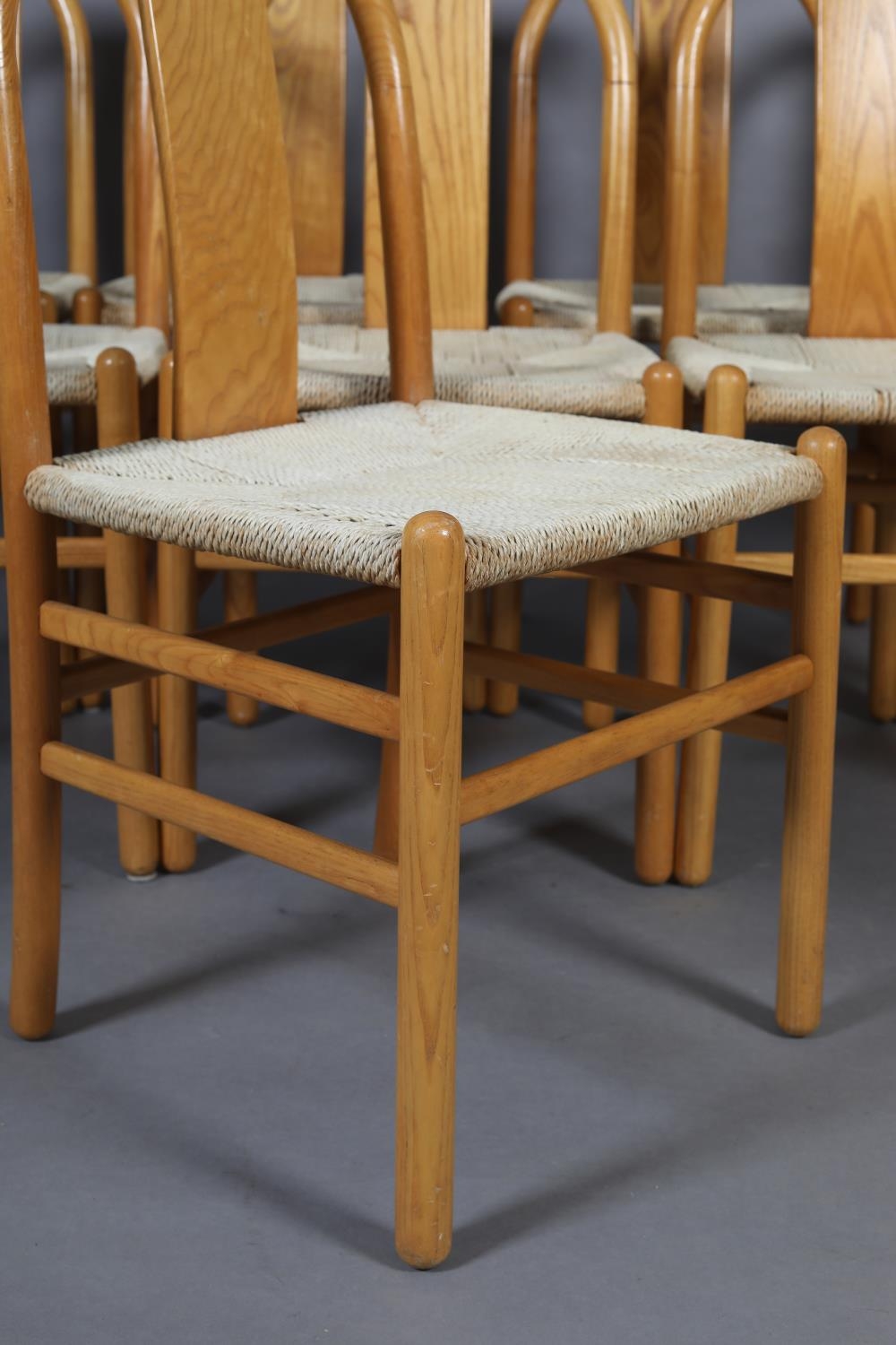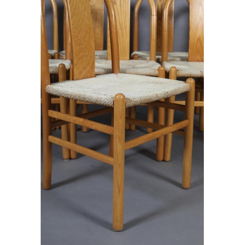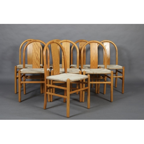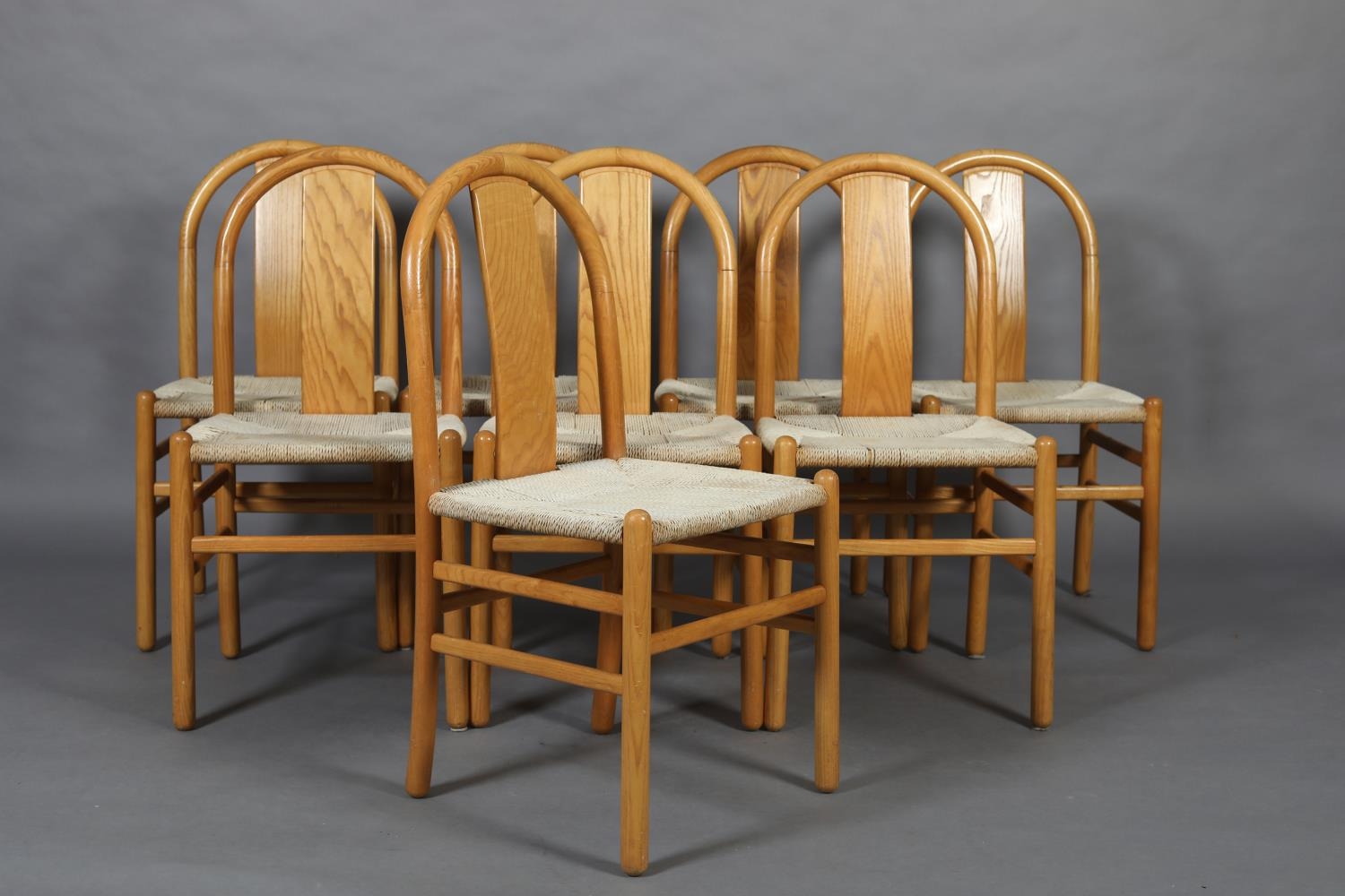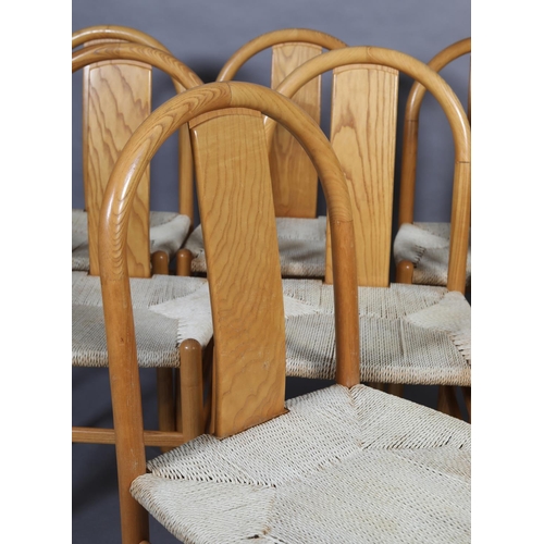 Annig Sarian for Tisettanta 1980s, A set of 8 Thalia bentwood and pale rush seated dining chairs