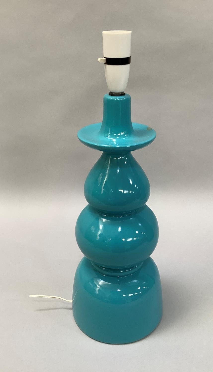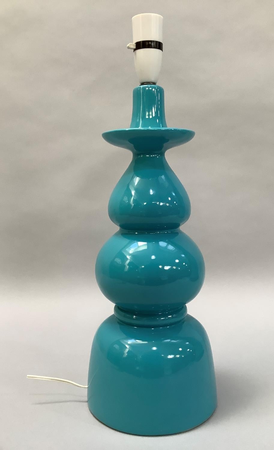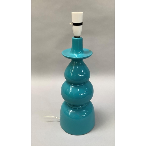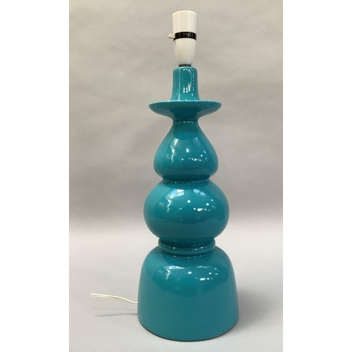 A 1970s turquoise glaze pottery double gourd table lamp, 45cm high