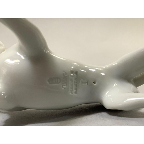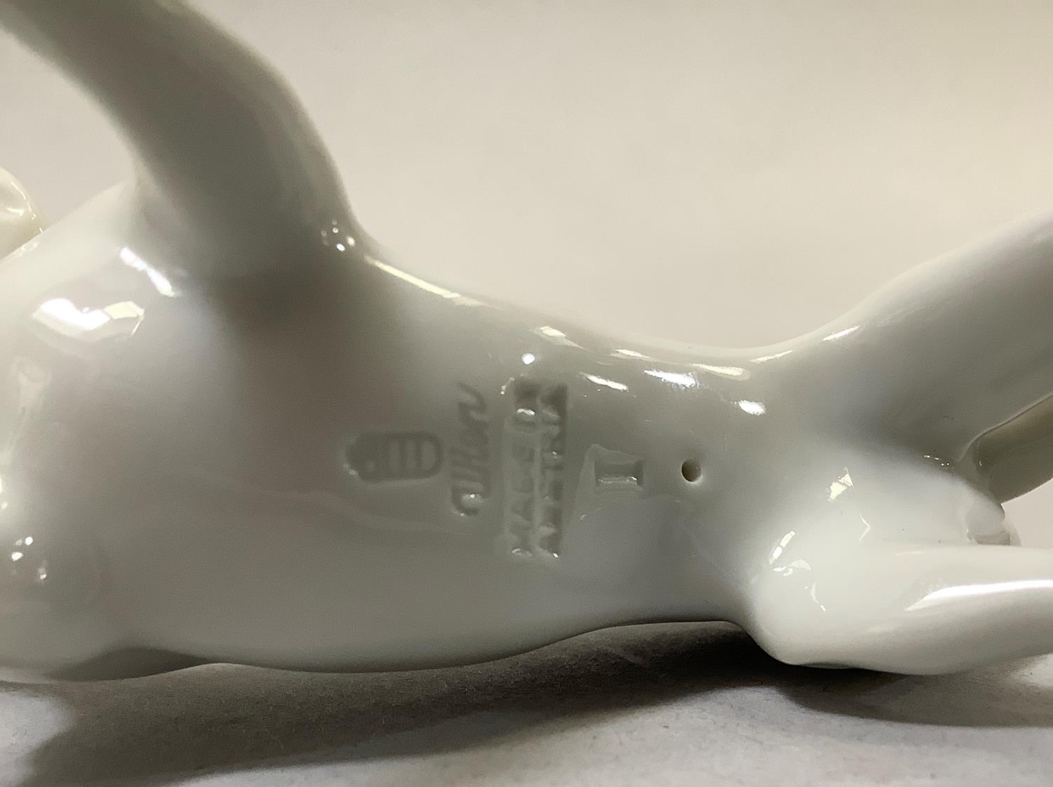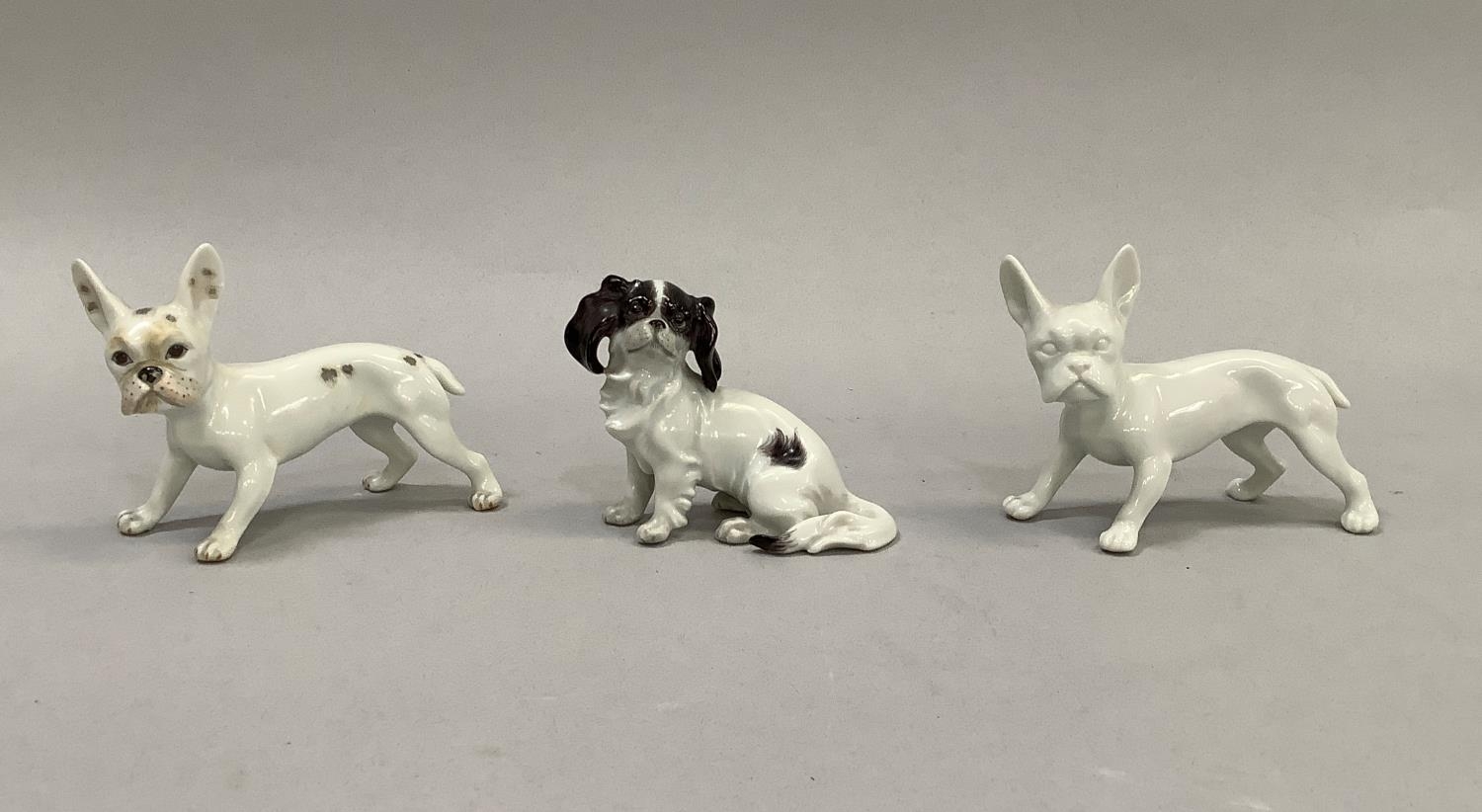 A Vienna figure of a dog, another the same but unpainted and a King Charles Spaniel, 8cm high max.