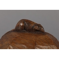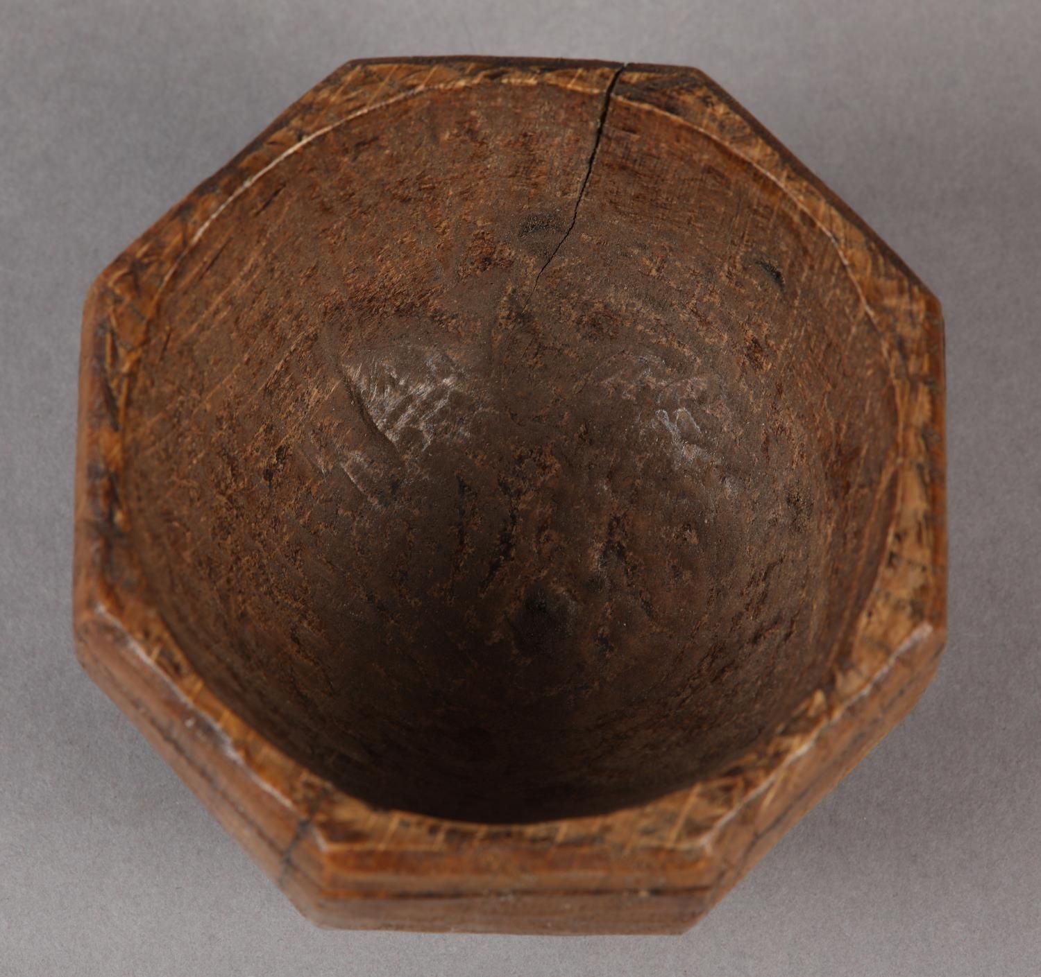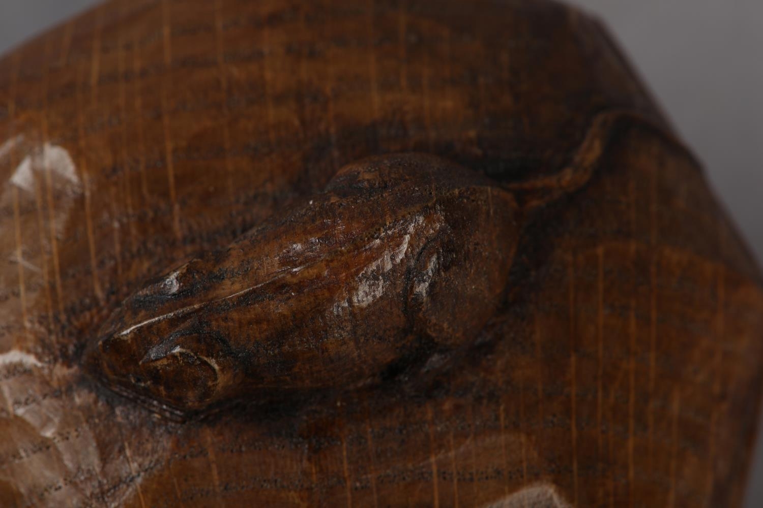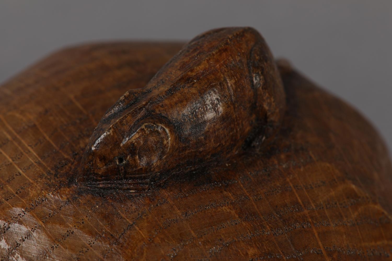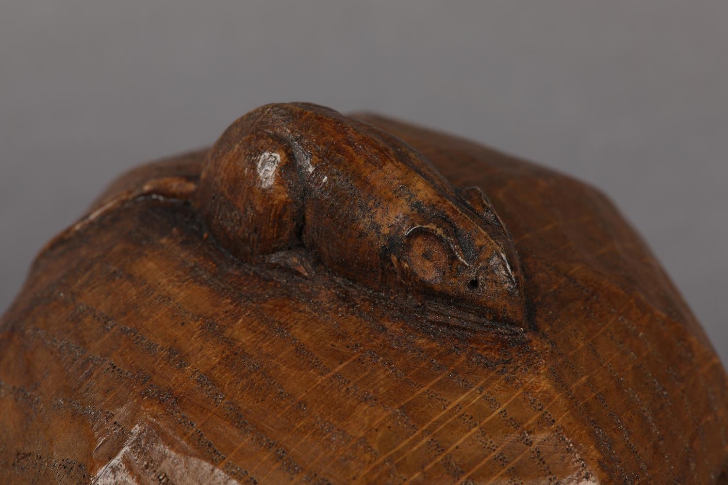THOMPSON OF KILBURN 'MOUSEMAN' box and cover in English oak, the octagonal form with mouse finial carved in high relief, 9.5cm diameter x 12cm high