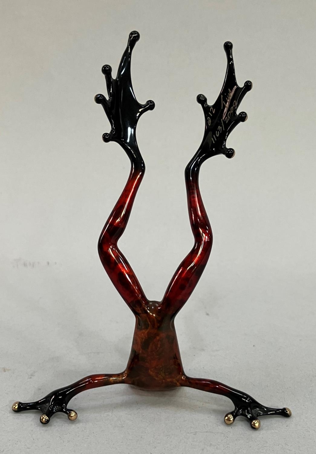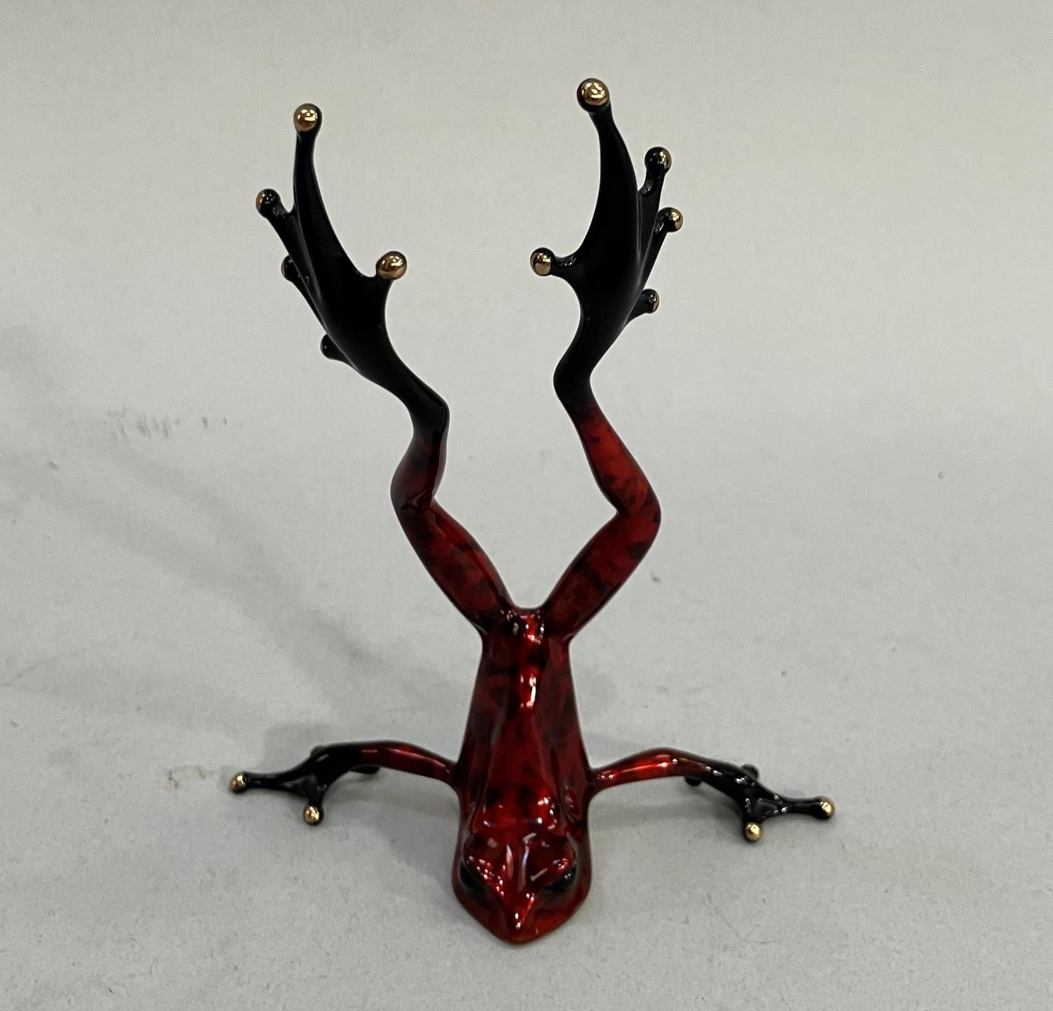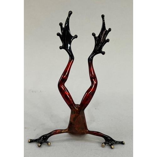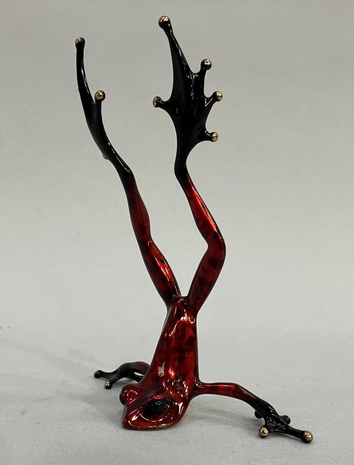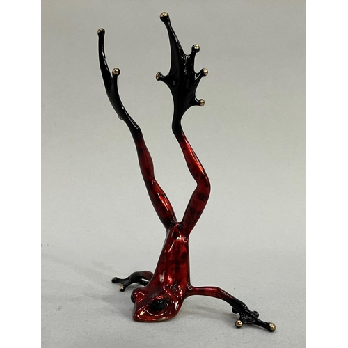 A red enamelled gilt metal sculpture of a frog, titled to the underside Frogman and Limited Edition 1163 of 2000, signed Tim, 14cm high
