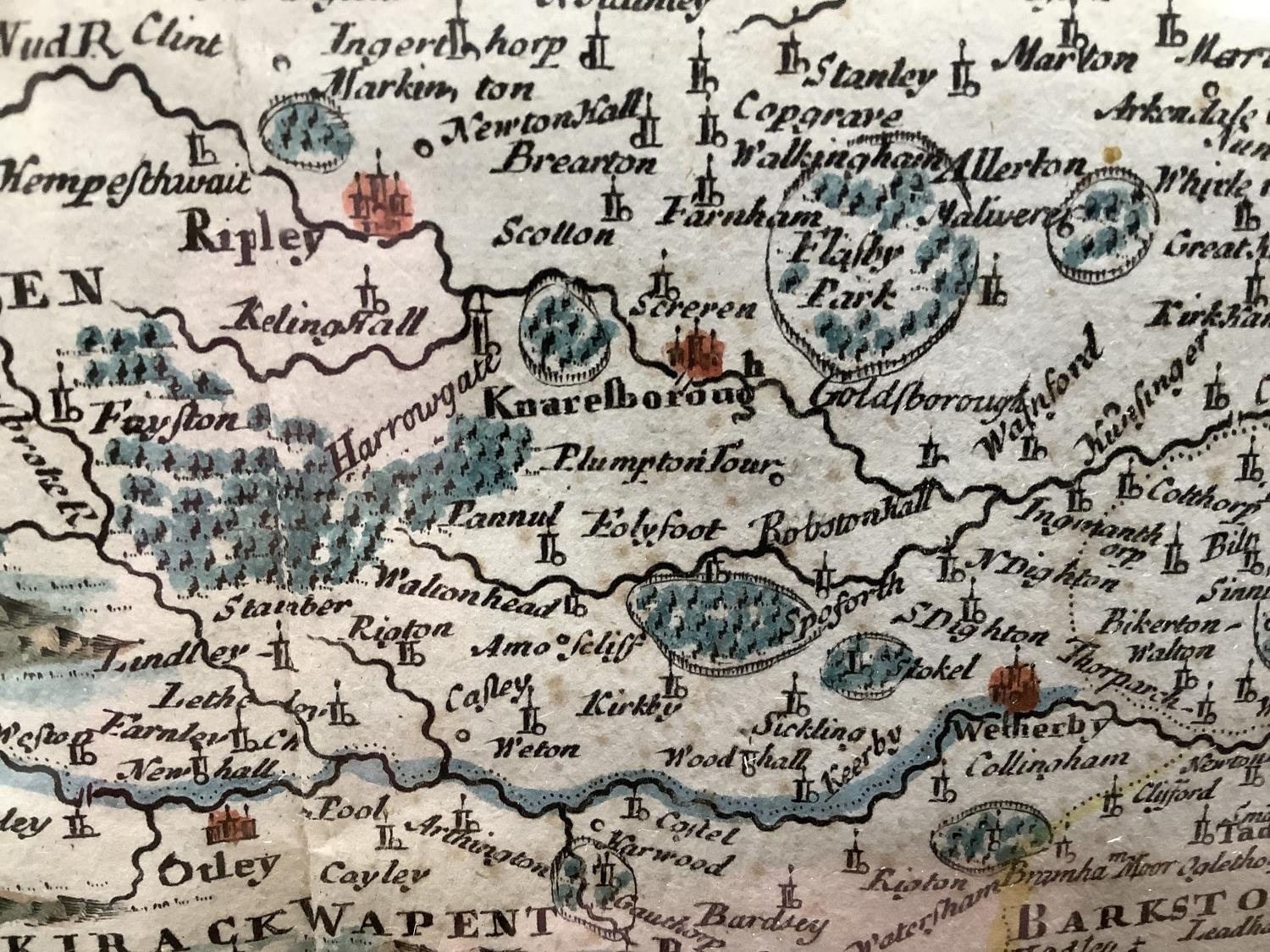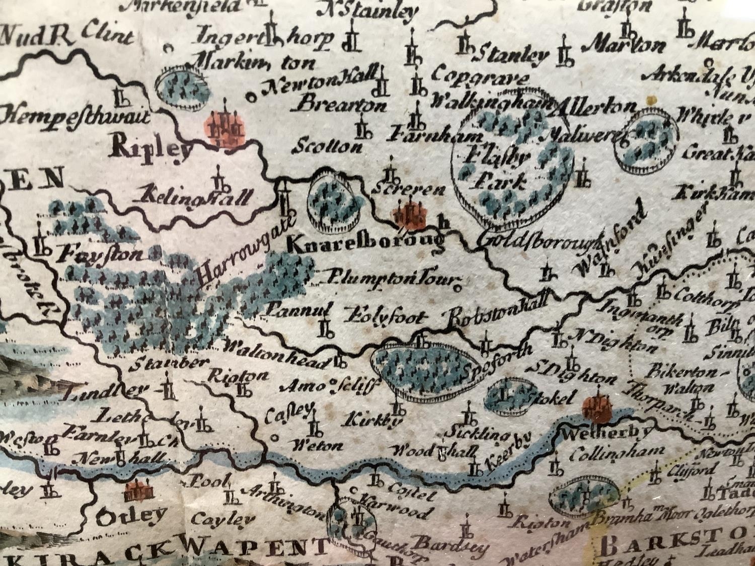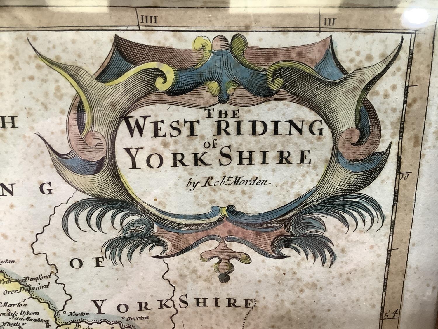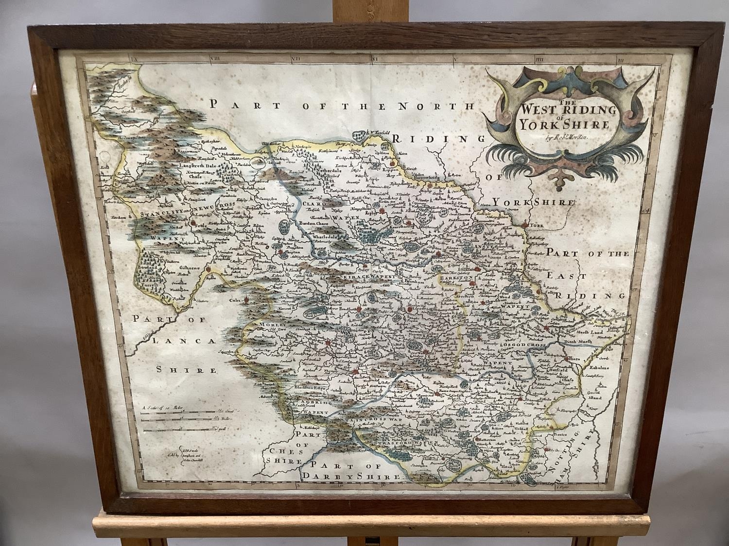 The West Riding of Yorkshire map by Robert Morden c. 1695 with hand tinted colour, foxing, measuring 36.5cm x 43,5cm