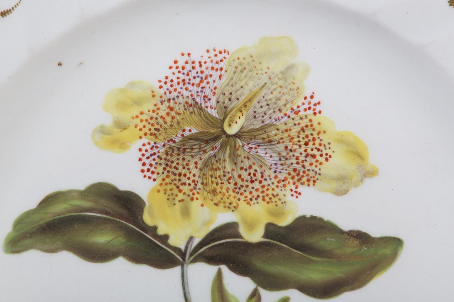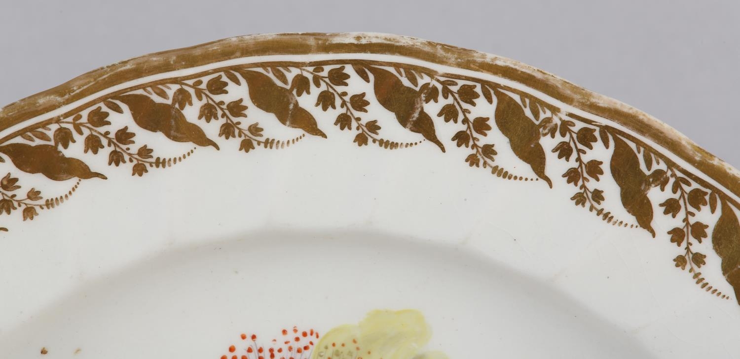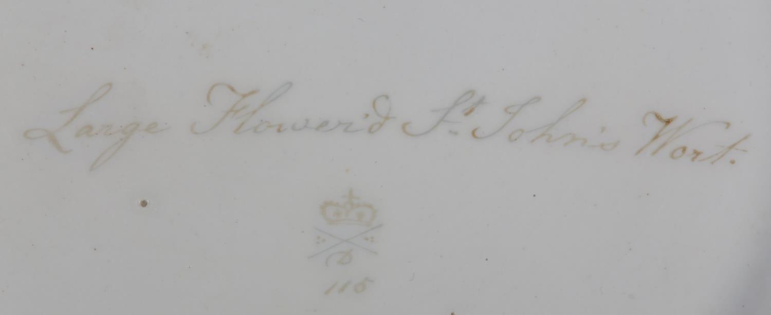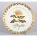 A DERBY PORCELAIN BOTANICAL PLATE, c.1815 painted by William Pegg with a study of 'Large Flower'd St John's Wort', within a gilt and writhen moulded border, title, mark and 115 in gilt, 23cm diameter