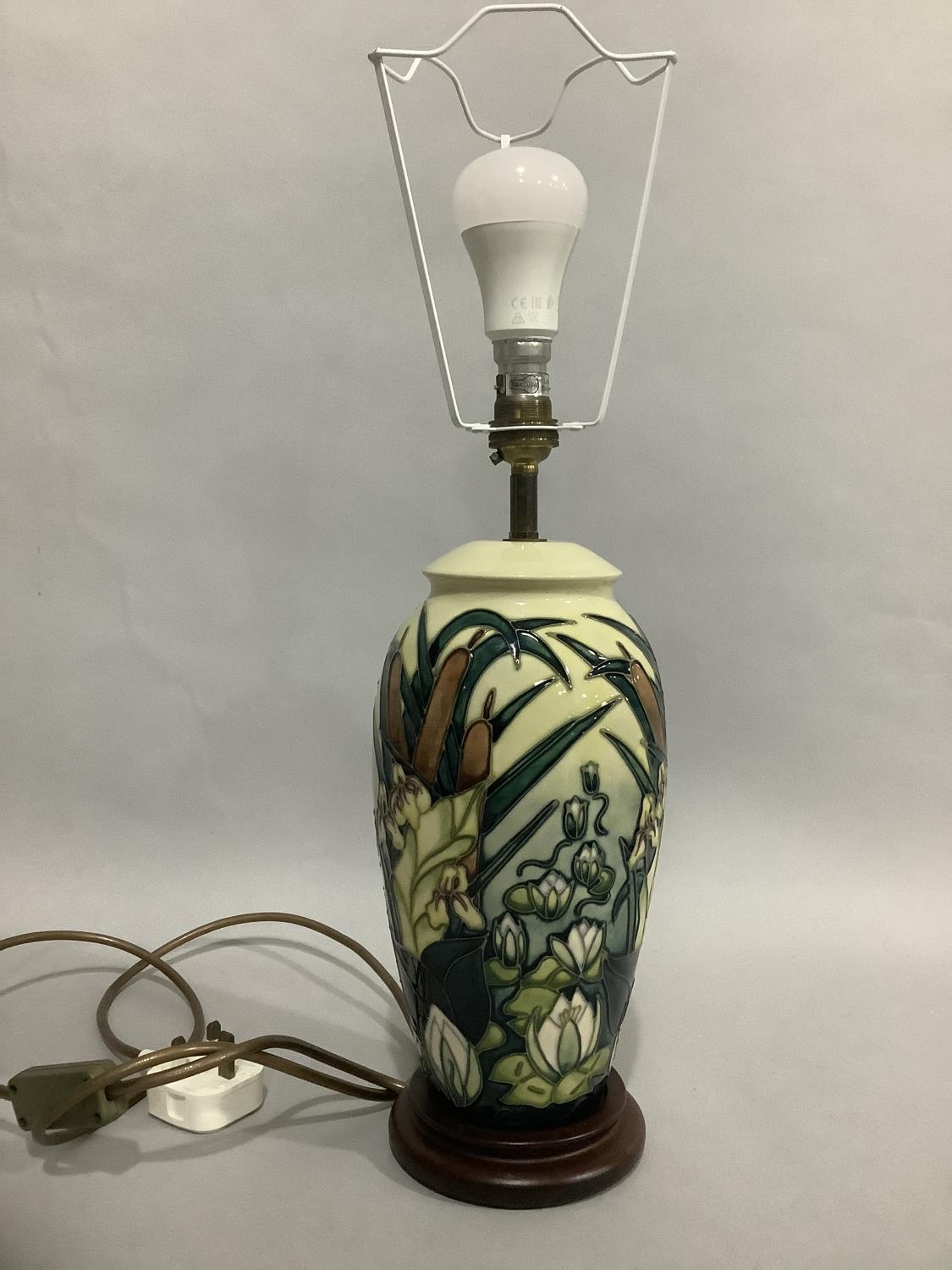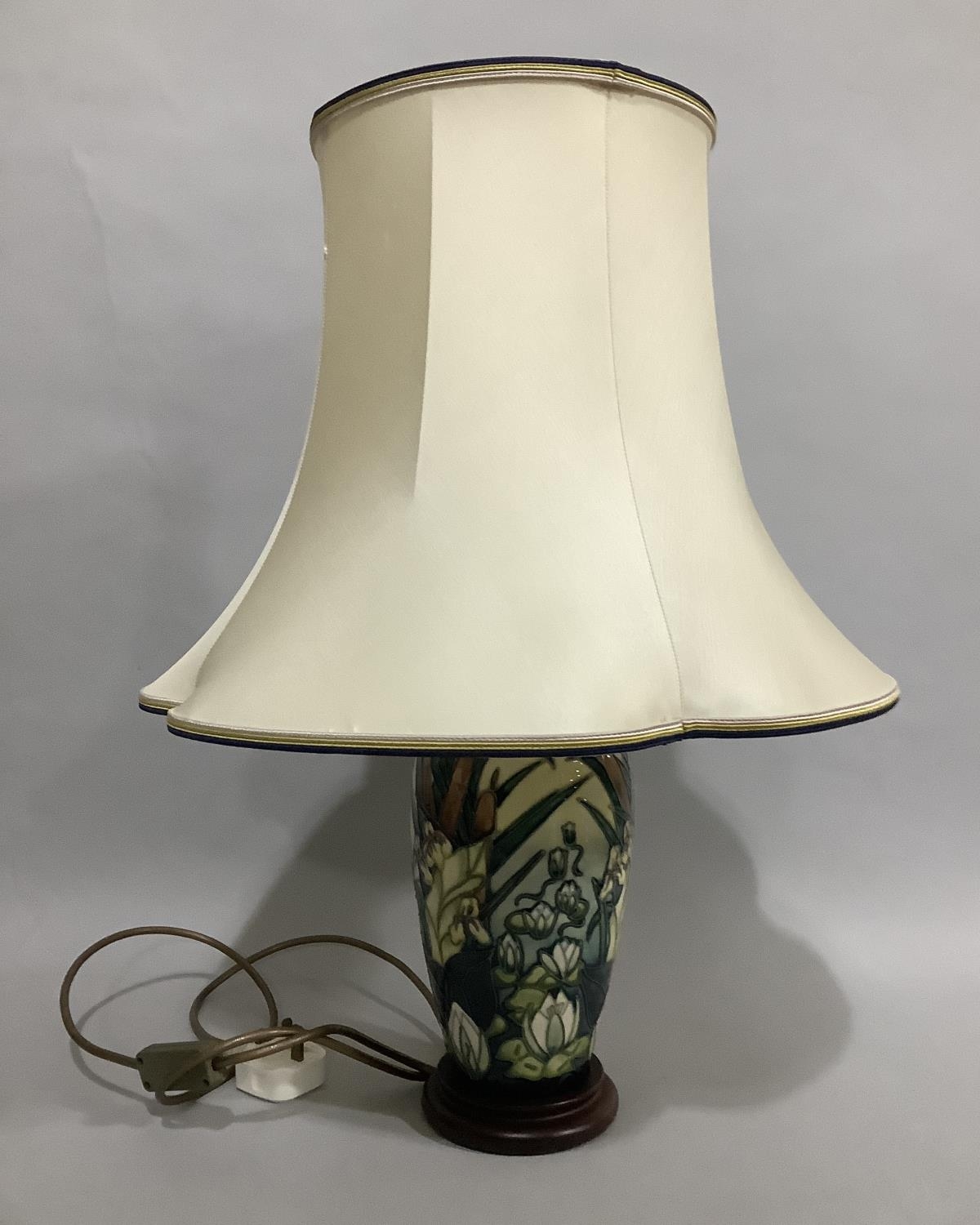 A Moorcroft table lamp of Lamia pattern designed by Rachel Bishop, ovoid form, on base, with shade, 29cm without fitting