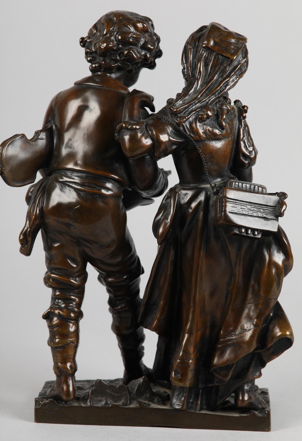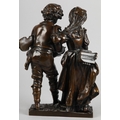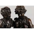 HIPPOLYTE MOREAU (FRENCH 1832-1927), A patinated bronze figure group 'The Musicians', on rectangular naturalistic base, signed to base and initialled 'FBL', 30cm high