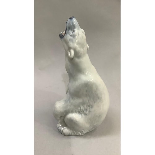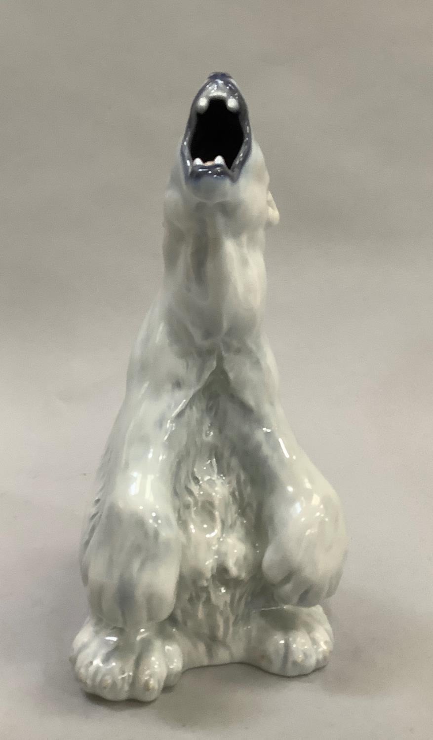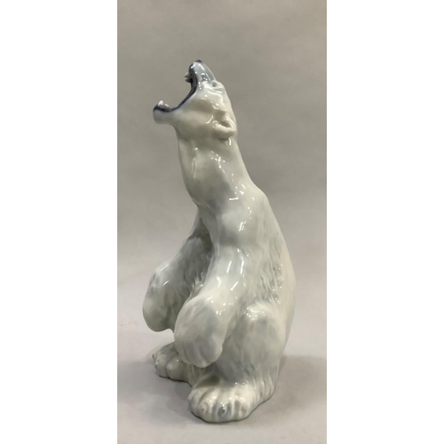 A Royal Copenhagen model of a polar bear on hind legs, his mouth open in a roar, printed and painted mark number 060, 33.5cm high