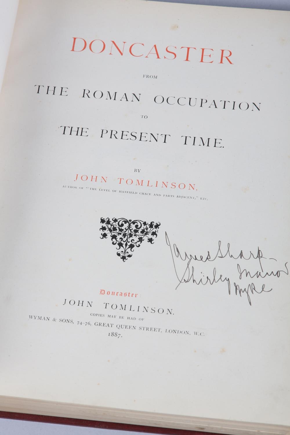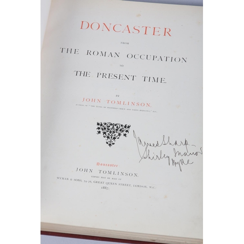 TOMLINSON, JOHN: DONCASTER FROM THE ROMAN OCCUPATION TO THE PRESENT TIME, 1887, illus. Wyman & Sons, 74-76 Great Queen Street, London W.C., previous owner's signature to title page, inscription to end page limited to 75 copies of this one and only edition, red boards