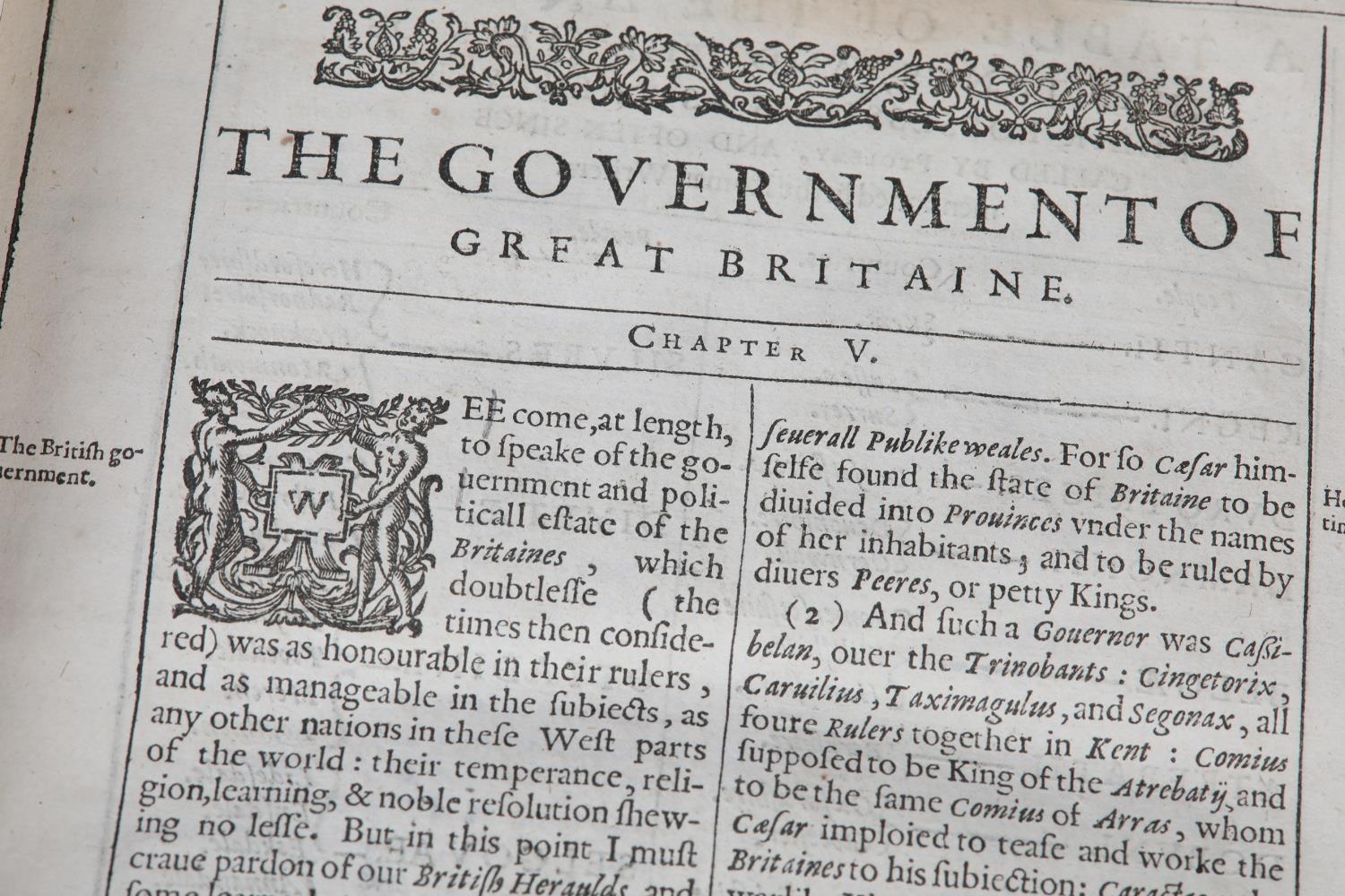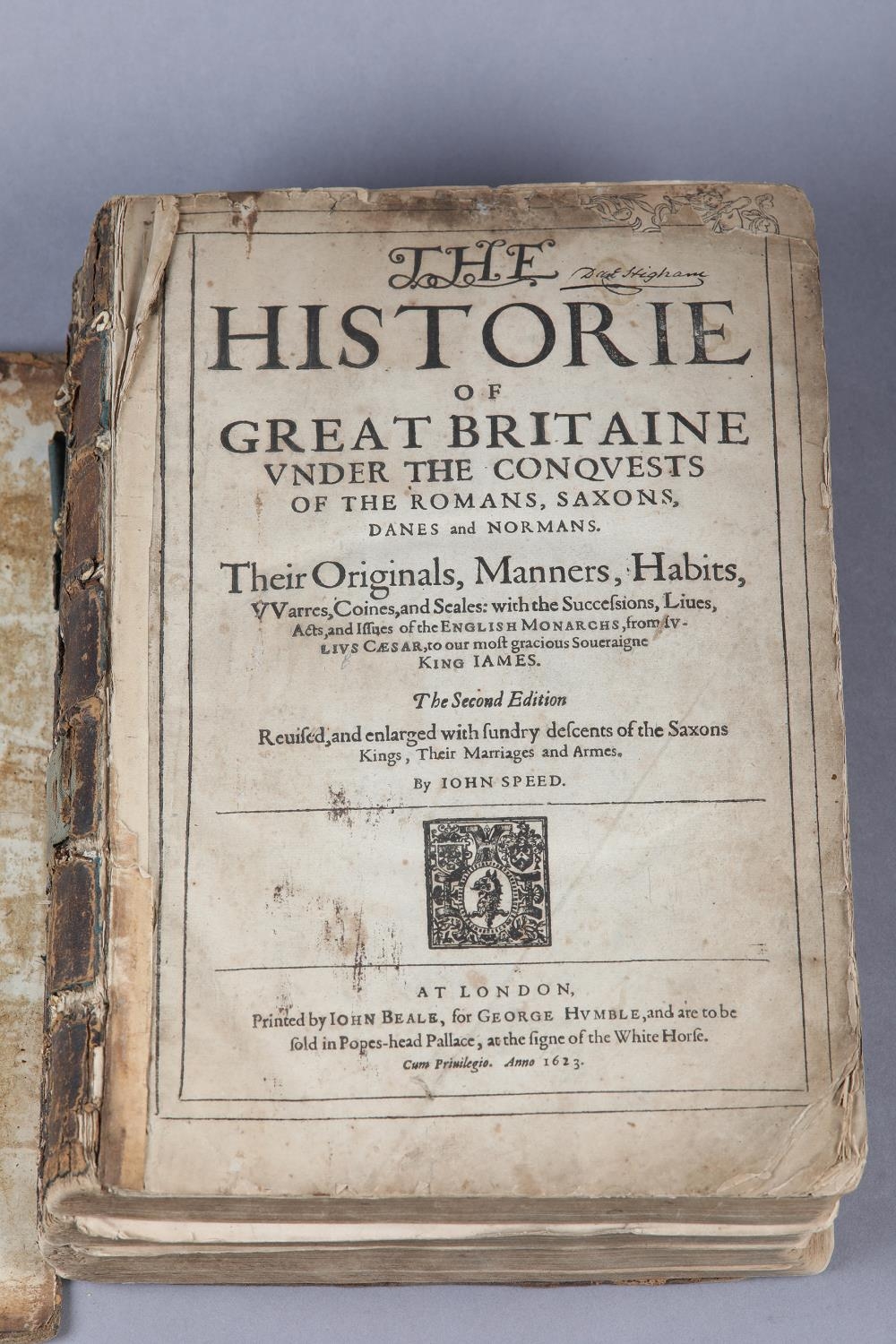 SPEED, JOHN: The Historie of Great Britaine under the Conquests of the Romans, Saxons, Danes and Normans... second edition printed by John Beale for Geo. Humble, London 1623, numerous woodcut head and tail pieces, numistic and other vignettes to text, boards detached, engraved frontispiece missing and other faults