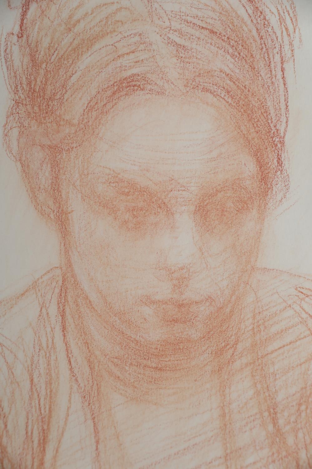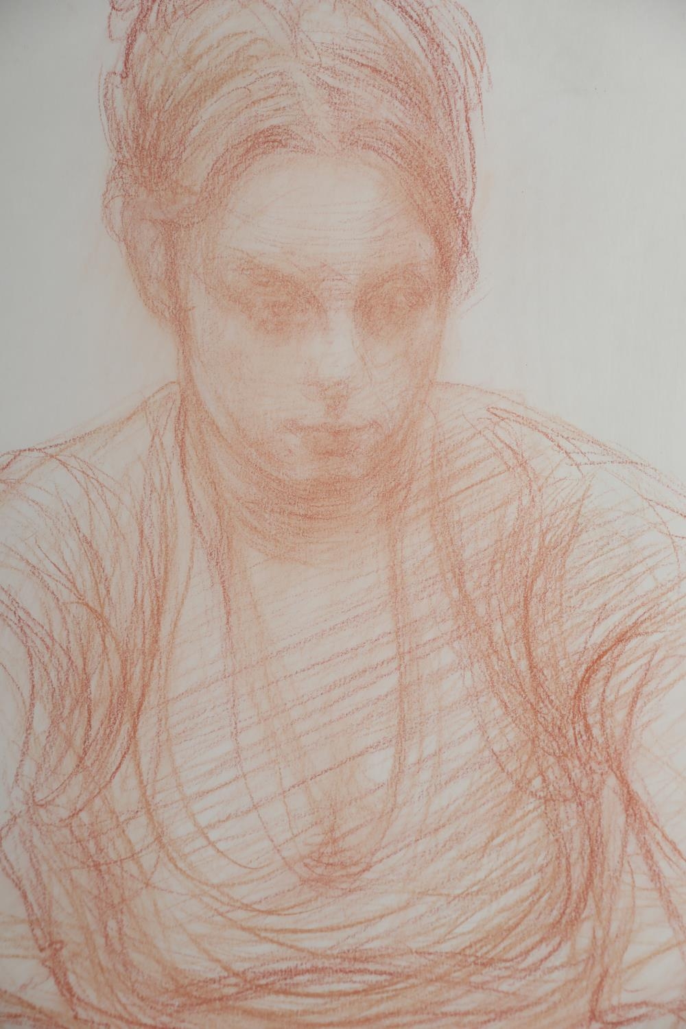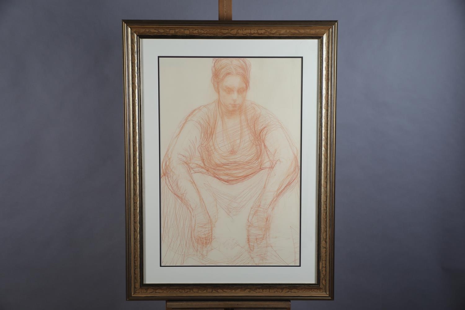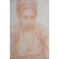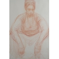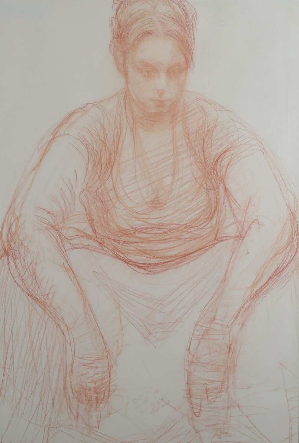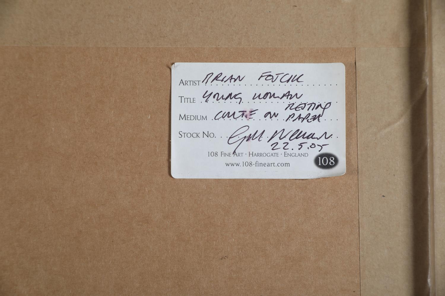 ARR BRIAN JOSEPH FOJCIK (SCOTTISH b1960), Polish field worker resting conte on paper, inscribed 'Study of Polish Girl' initialled and dated '05, with 108 Fine Art Harrogate, label verso