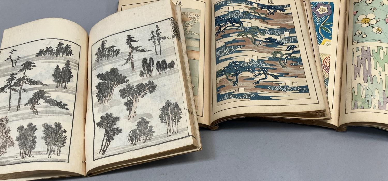 Japanese 'Jinhua' Pattern vol 1 (by Chika Hasegawa) and vol 2 (by Korin Furutani), together with Hokuzai Comics vol 4 by Japanese artist Katsushika Hokusai (3)