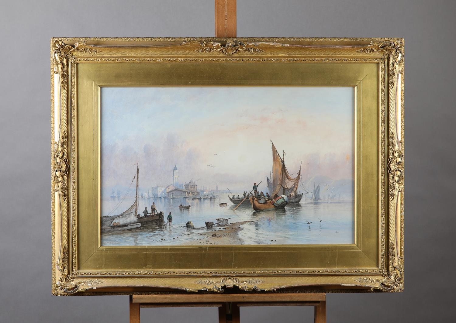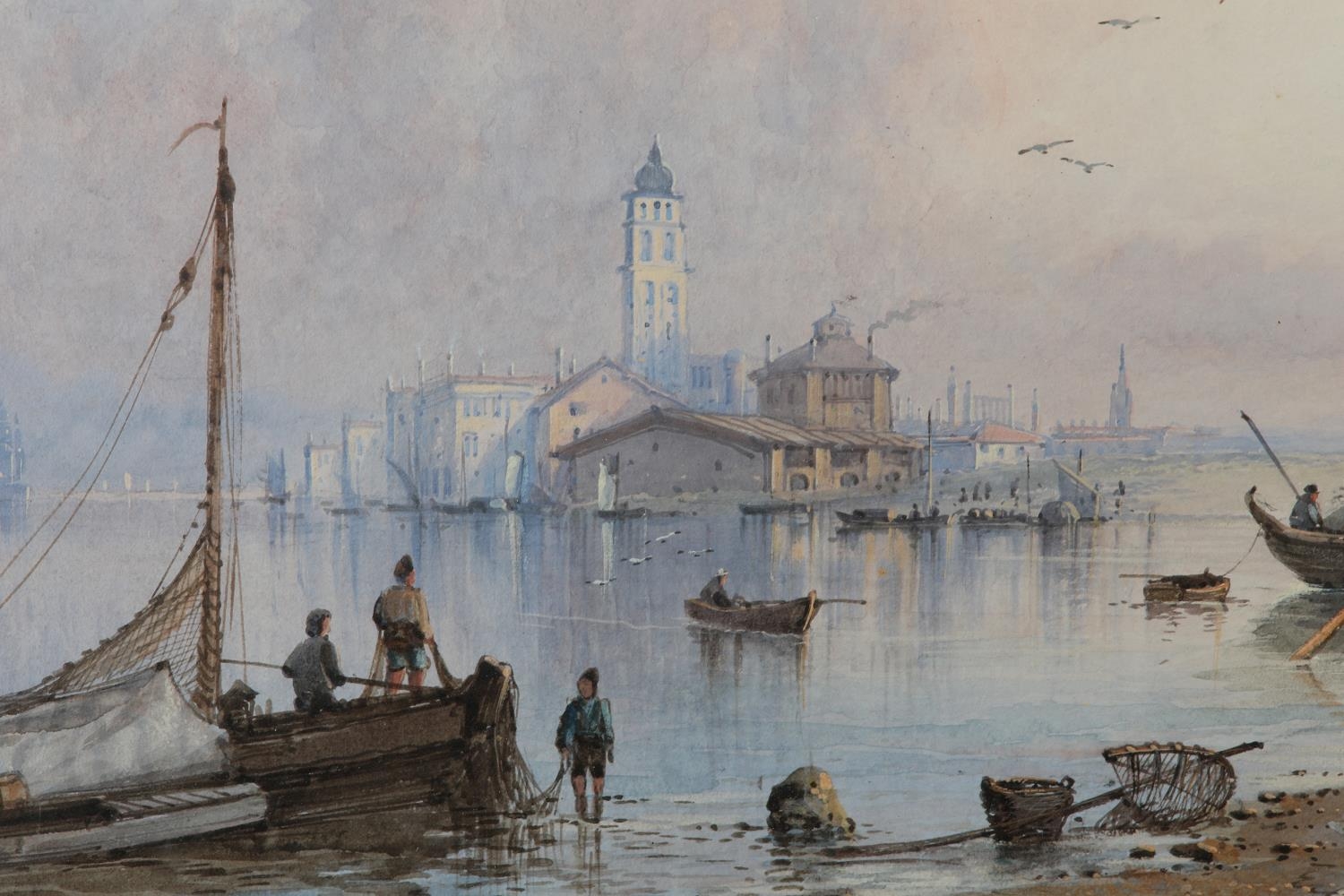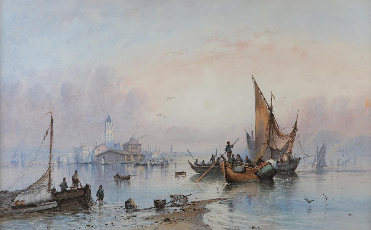EDWIN ST JOHN (Act.1880-1920), Venice Fishermen, watercolour, signed to lower left, 39.5cm x 62.5cm