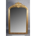 A LARGE 19TH CENTURY FRENCH GILT WOOD AND GESSO OVERMANTEL MIRROR, with shell and foliate cresting, rounded rectangular outline, moulded frame with beaded and rope twist edging, remnants of label verso 'Raveau', 184cm high x 112.5cm wide