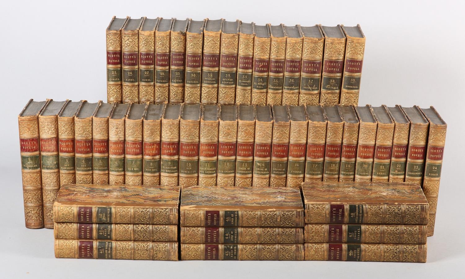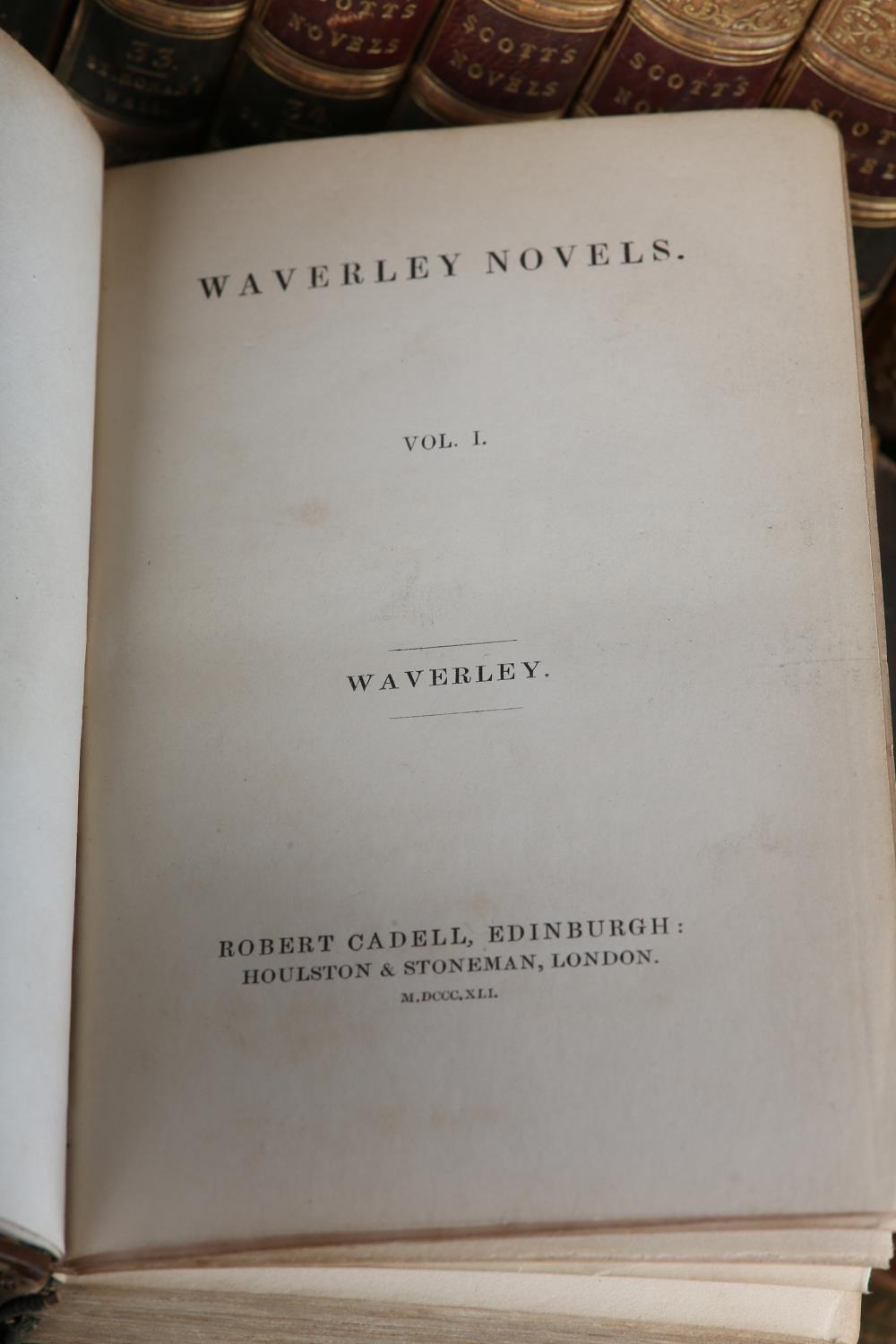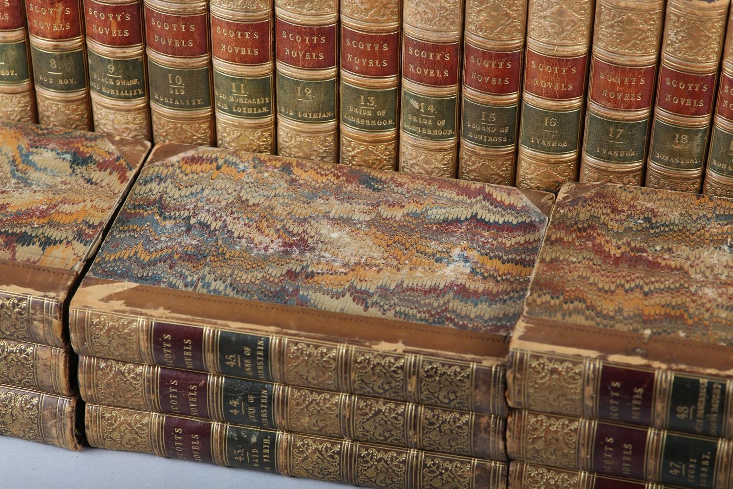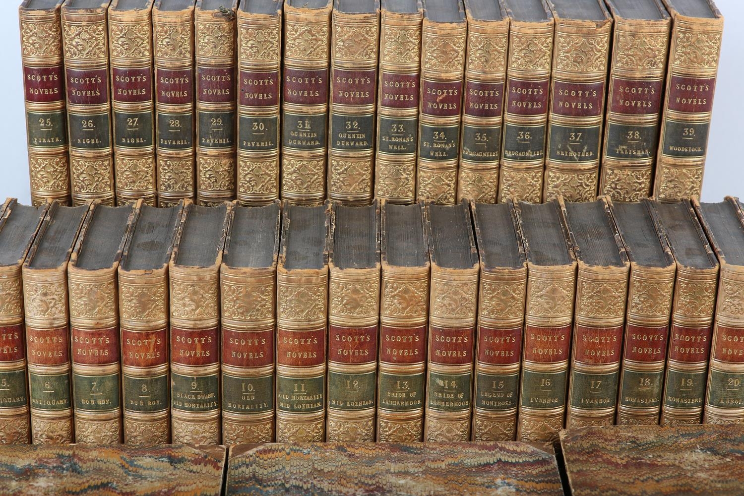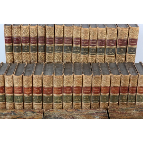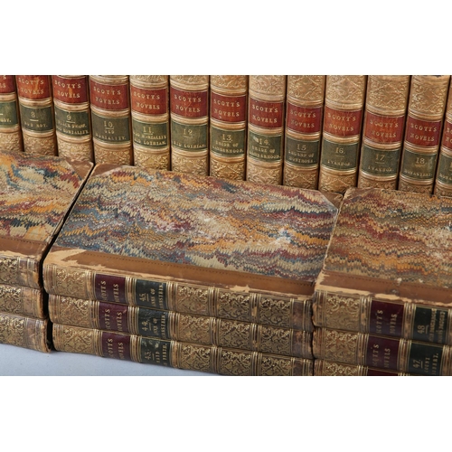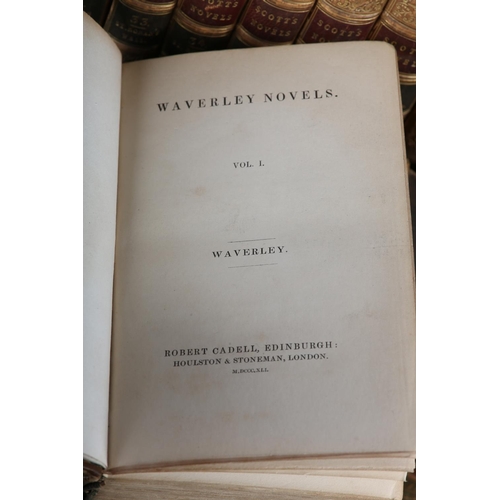 SCOTT, SIR WALTER - THE WAVERLEY NOVELS, in 48 volumes, pub. 1829 by Robt. Cadell of Edinburgh, uniform bound, half calf with marbled boards, gilt tooling to spines, engrd. frontis