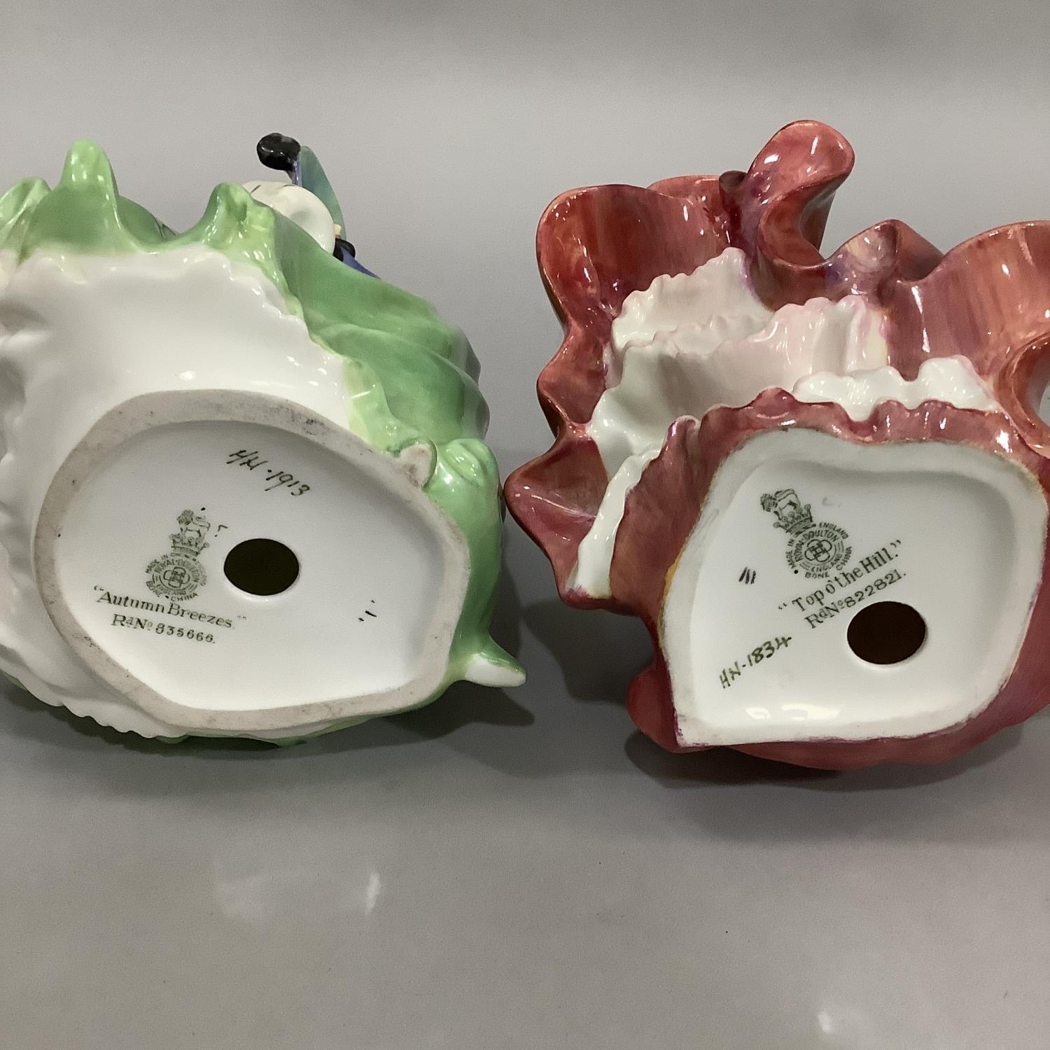 Two Royal Doulton figures, Top o' the Hill HN1834, height 18.5cm and Autumn Breezes HN1913, height 19cm