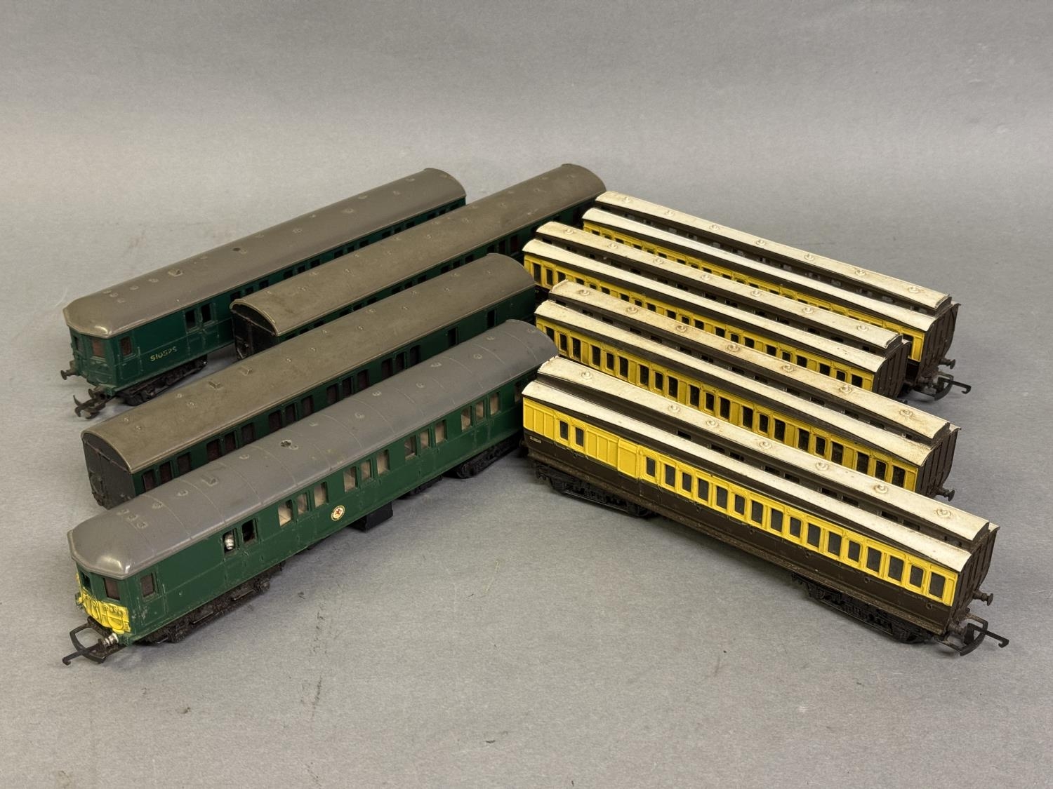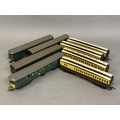 A Triang R156 power car, an R156 dummy power car and two R156 carriages, along with three R332 carriages and one R333 carriage