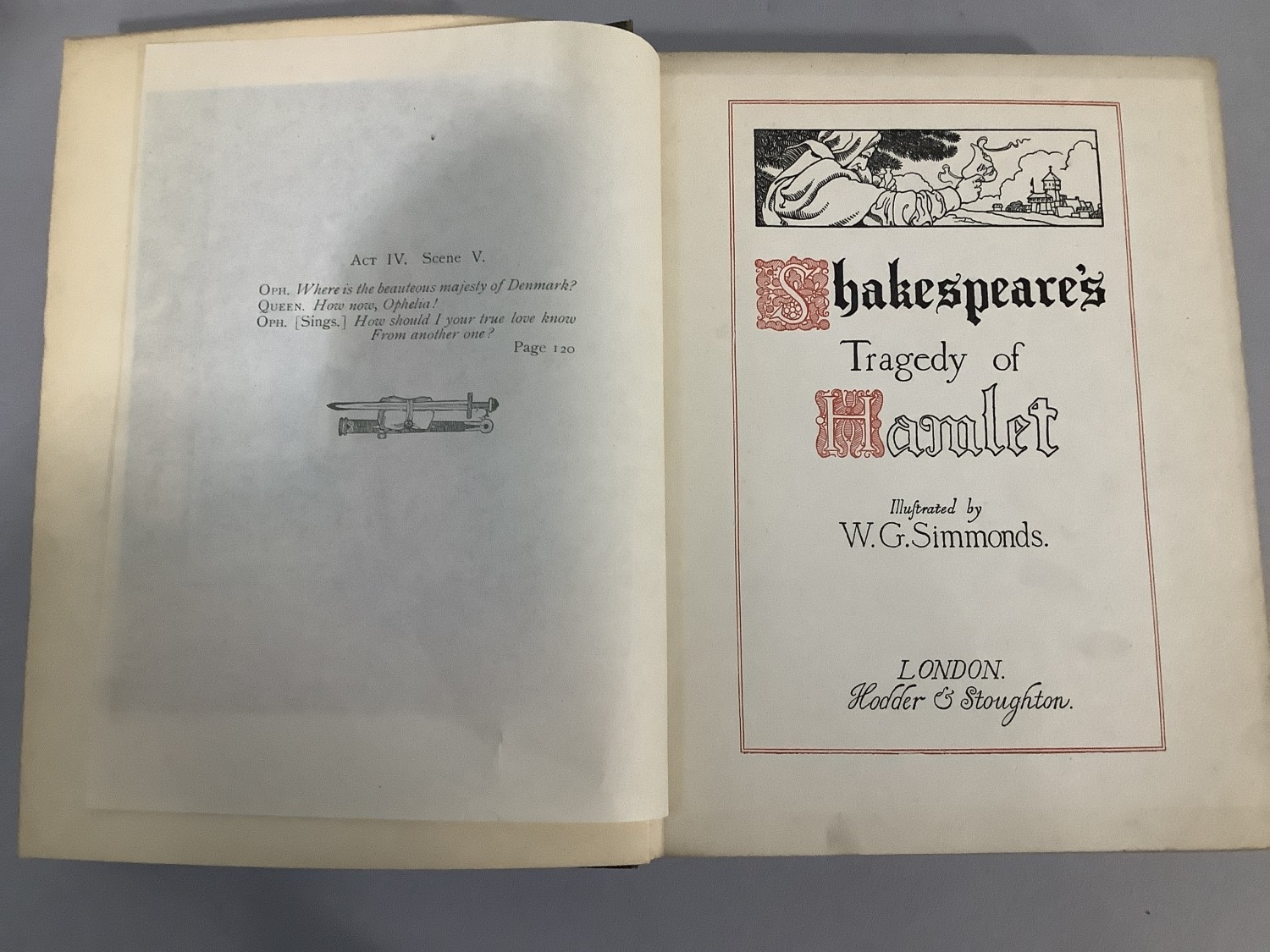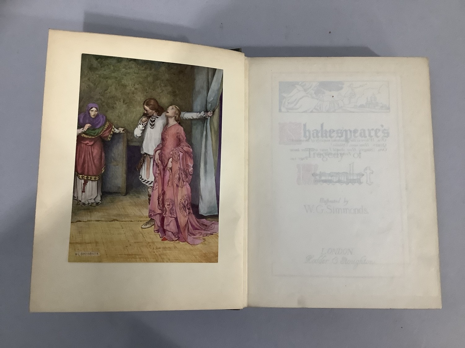SIMMONS, W G - SHAKESPEARE (Illus.) TRAGEDY OF HAMLET, pub. Hodder & Stoughton c. 1912, 24 tipped in colour plates, pictorial cloth (front board slightly faded), all plates present