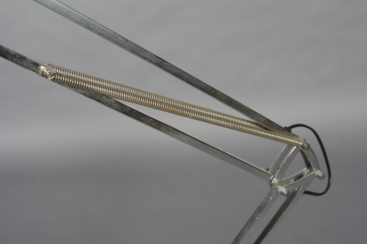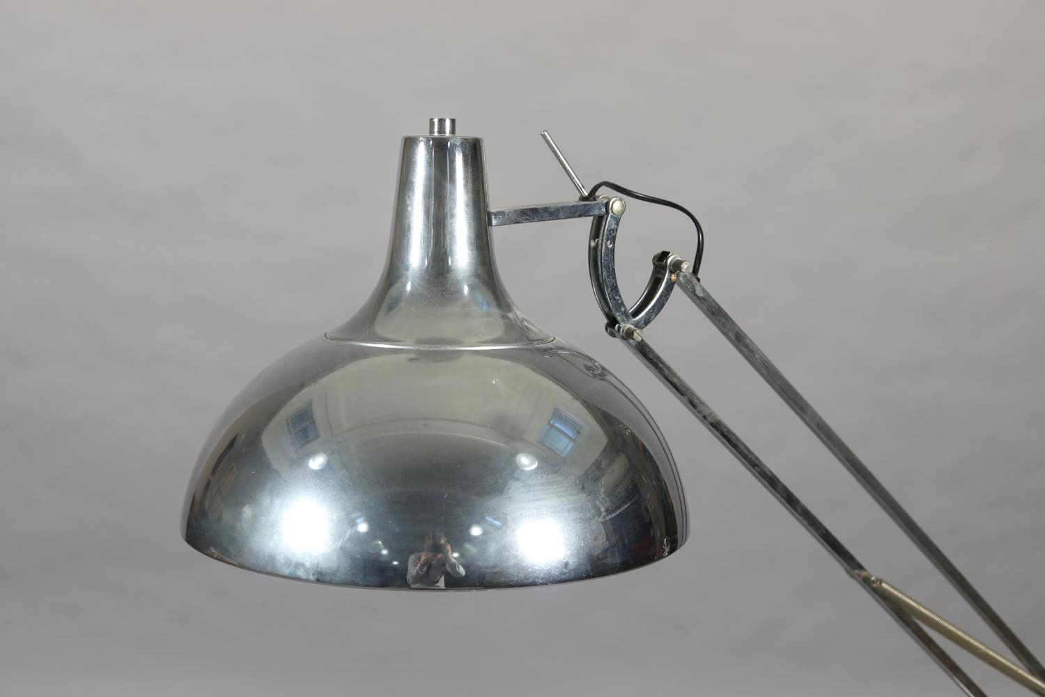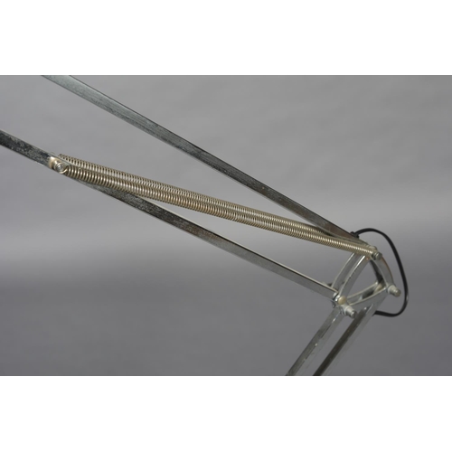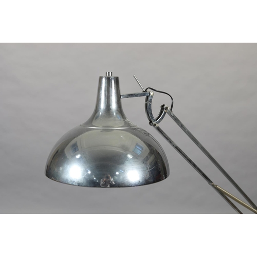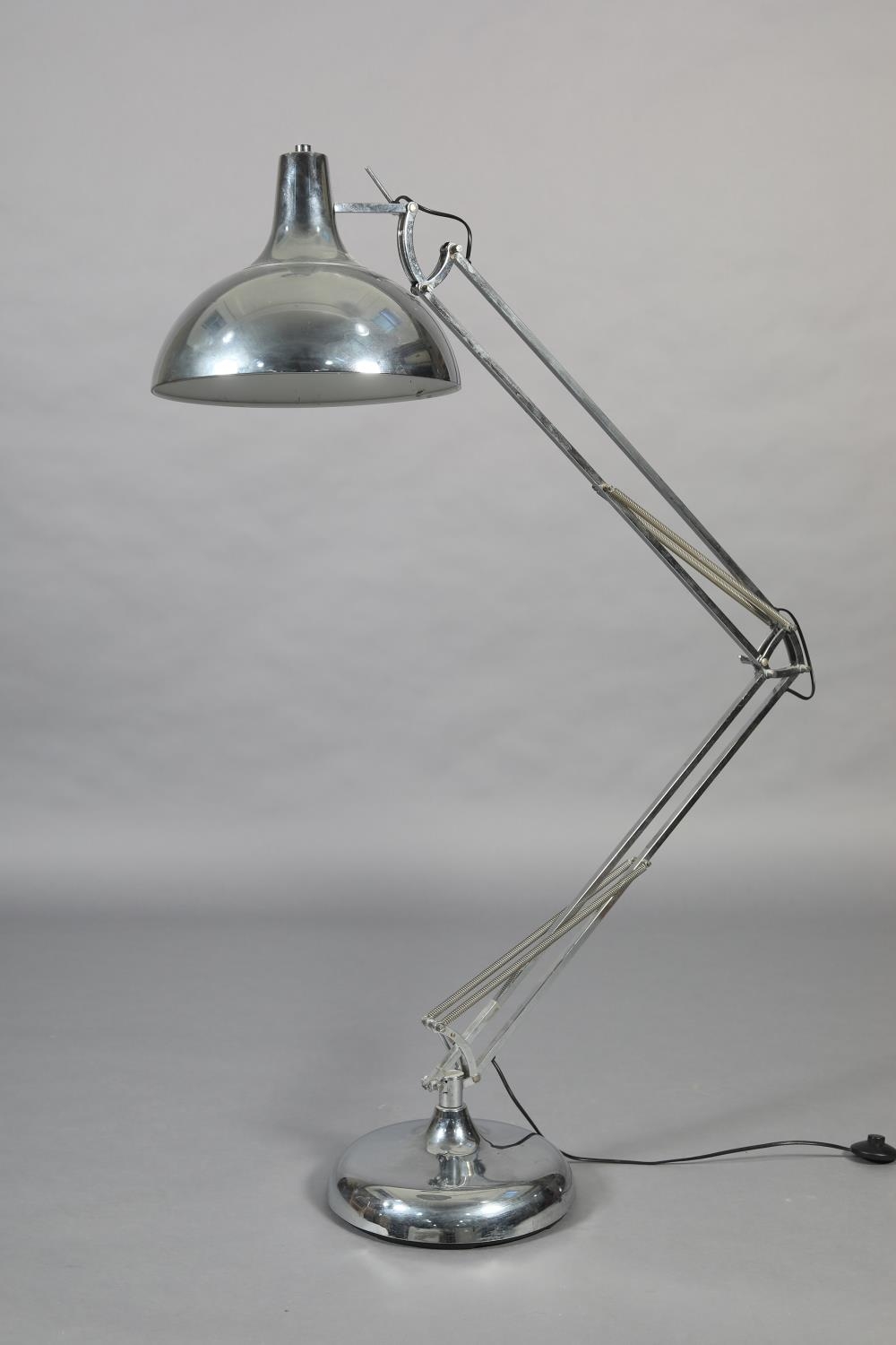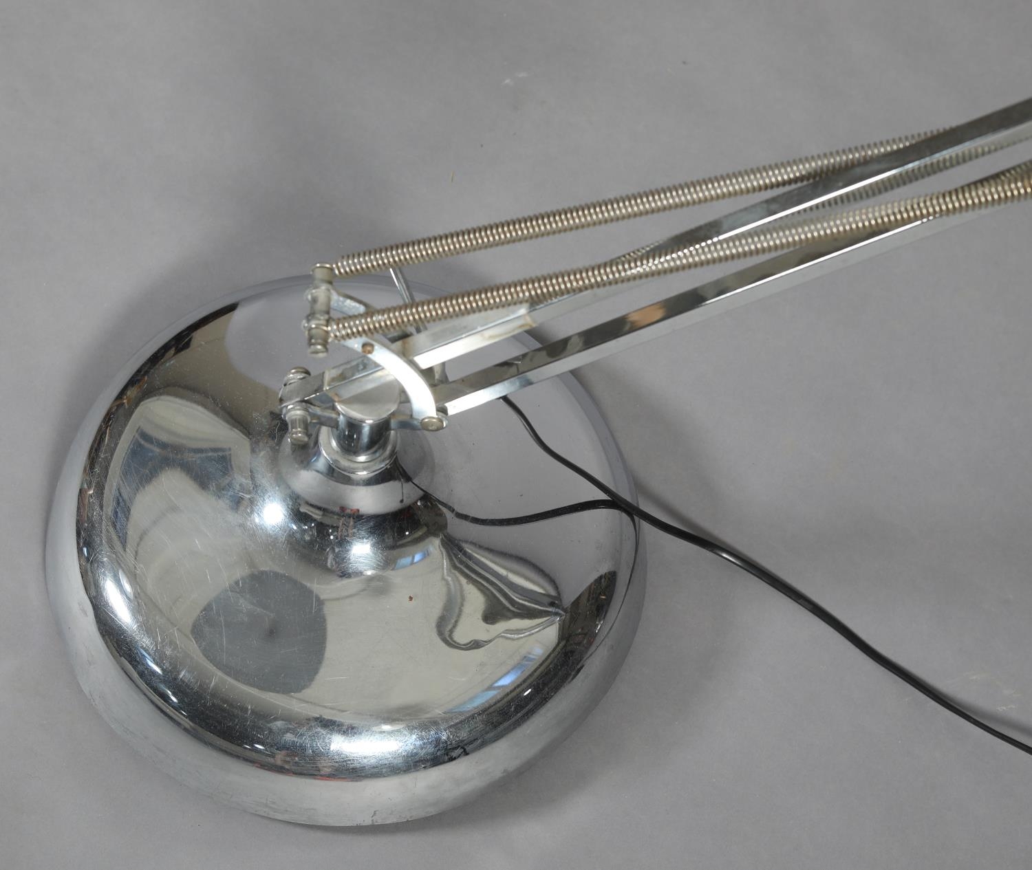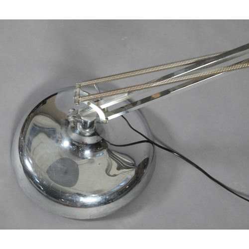 A chrome standing anglepoise lamp on circular domed base, with arm at maximum extension 173cm high