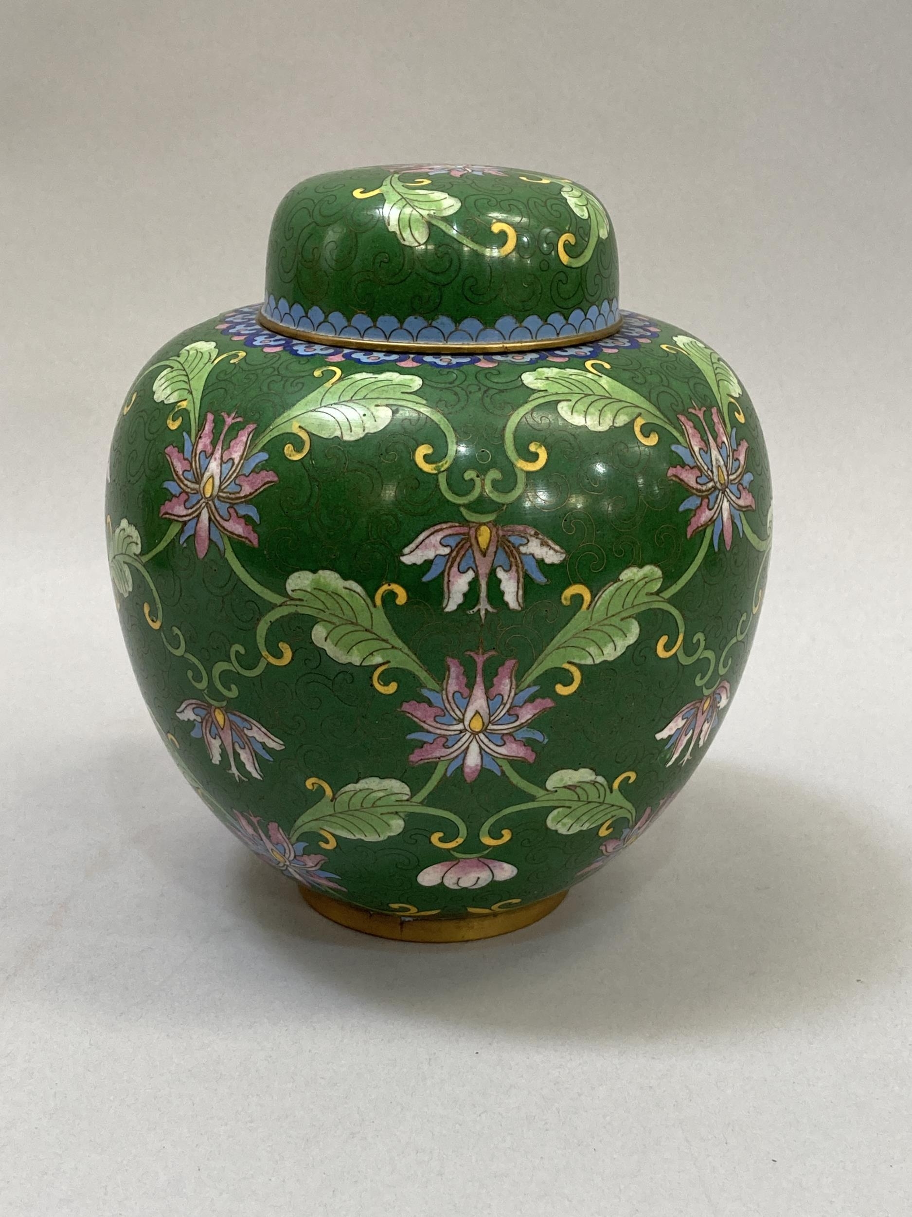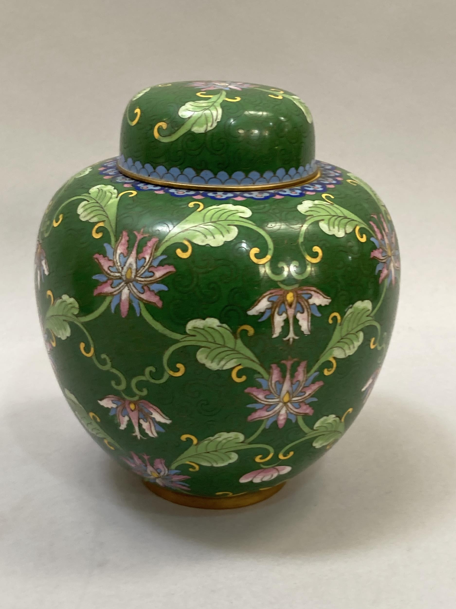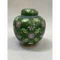A Chinese cloisonné ginger jar and cover, the green ground worked with flower heads and tendrils, 19.5cm high