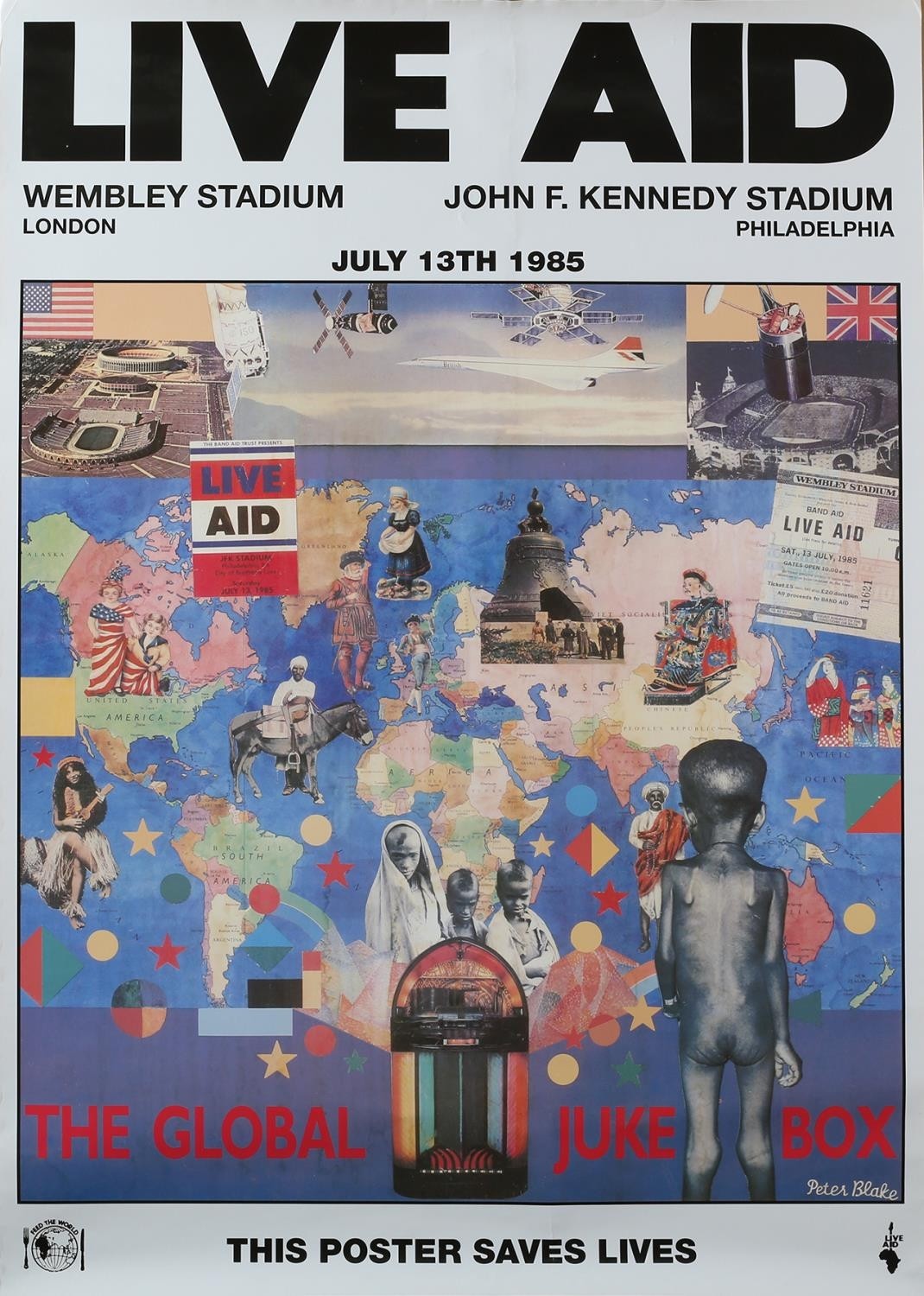 Live Aid - Wembley and Philadelphia official poster for the 1985 Wembley Concert, artwork by Sir Peter Blake, 84cm x 60cm