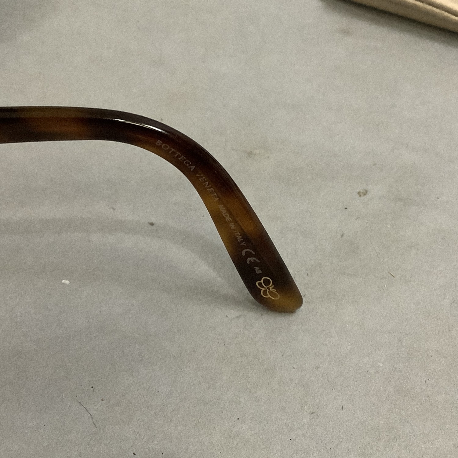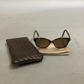 A pair o Bottega Veneta sun glasses in brown intrecciato leather case