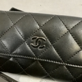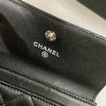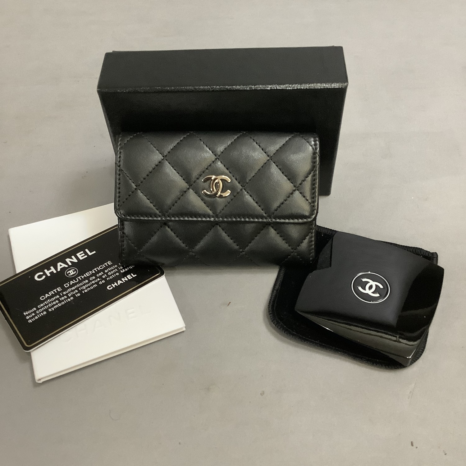 A Chanel black leather card wallet in original box with authentication card No. 17364237 together with a Chanel handbag mirror in original box