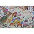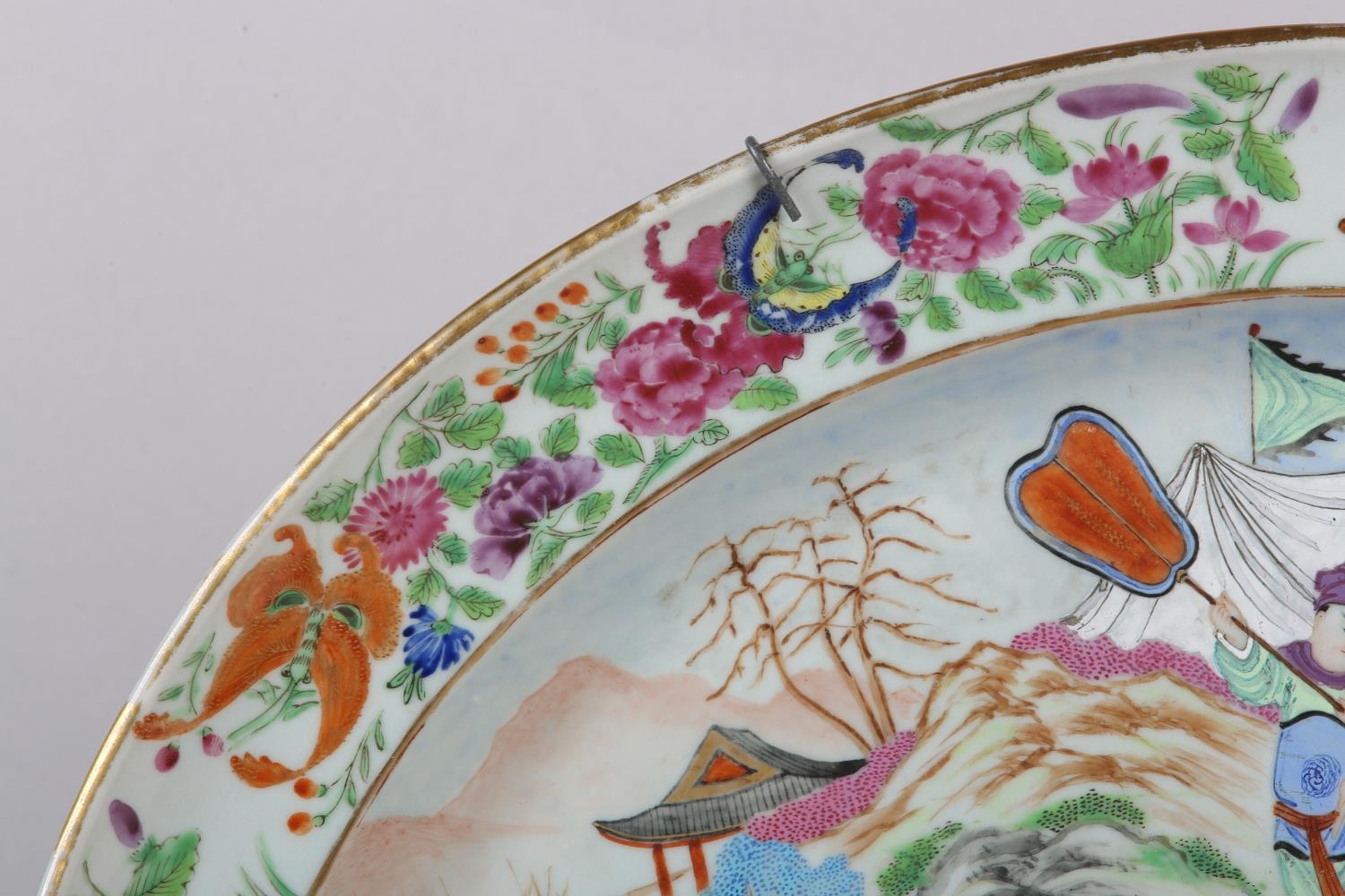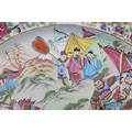 Gilding on rim is rubbed. The inner gilt rim is rubbed, some enamel is scuffed on the clothes of the figures at the lower middle. No chips, cracks or restoration