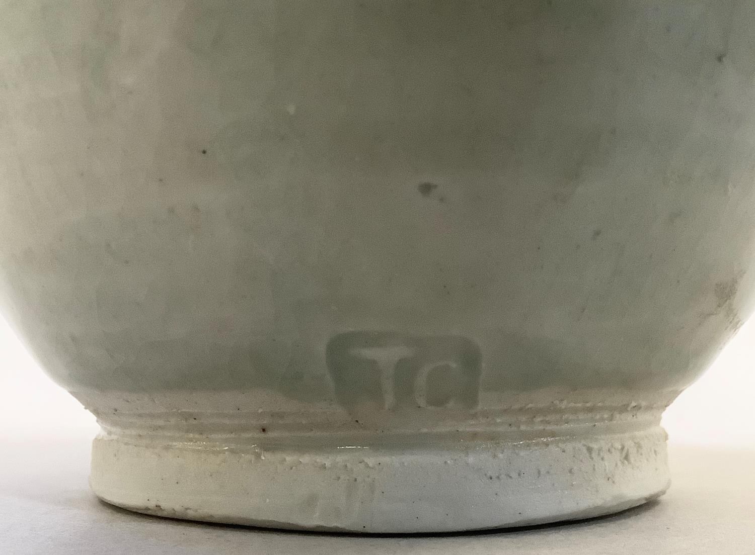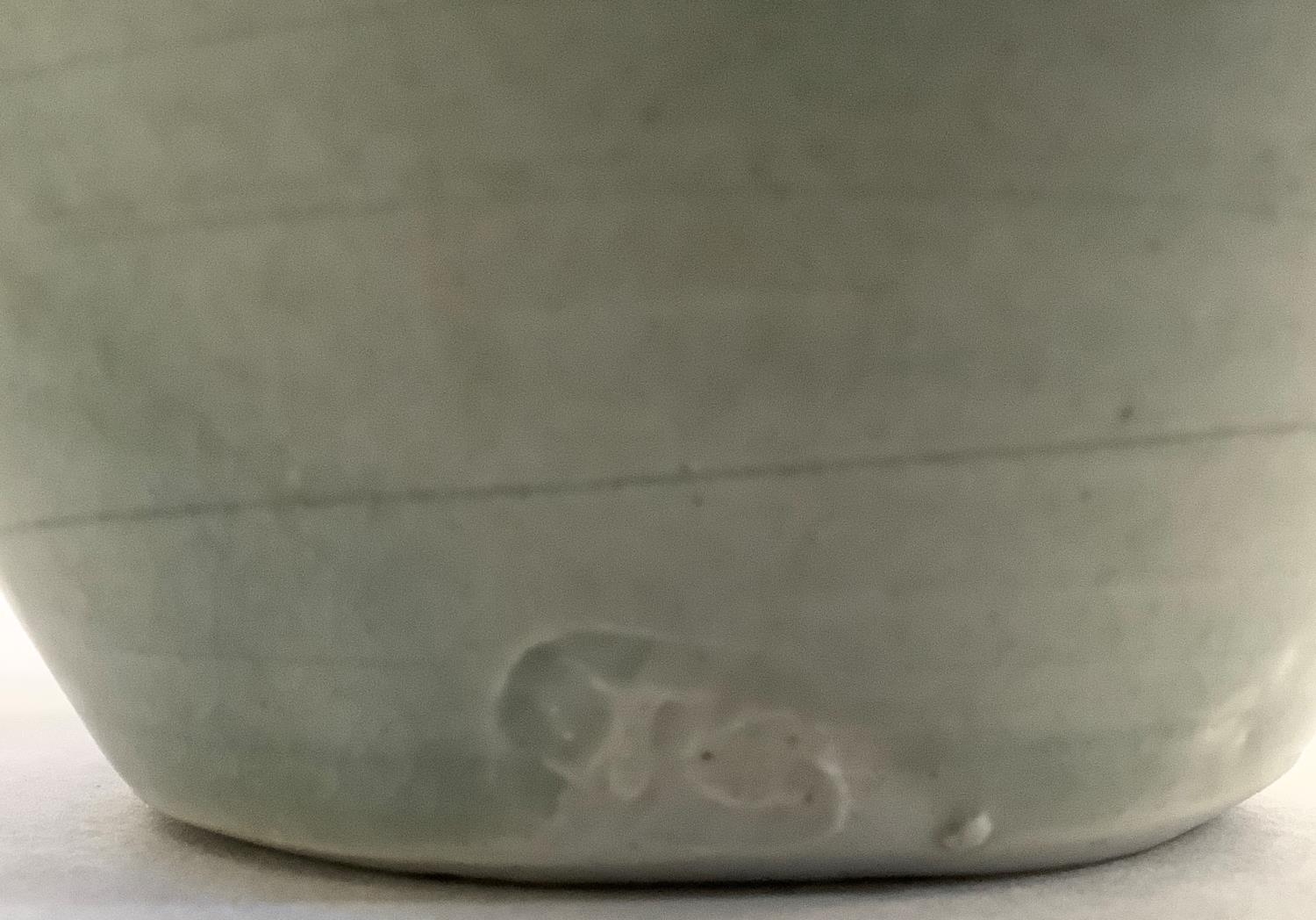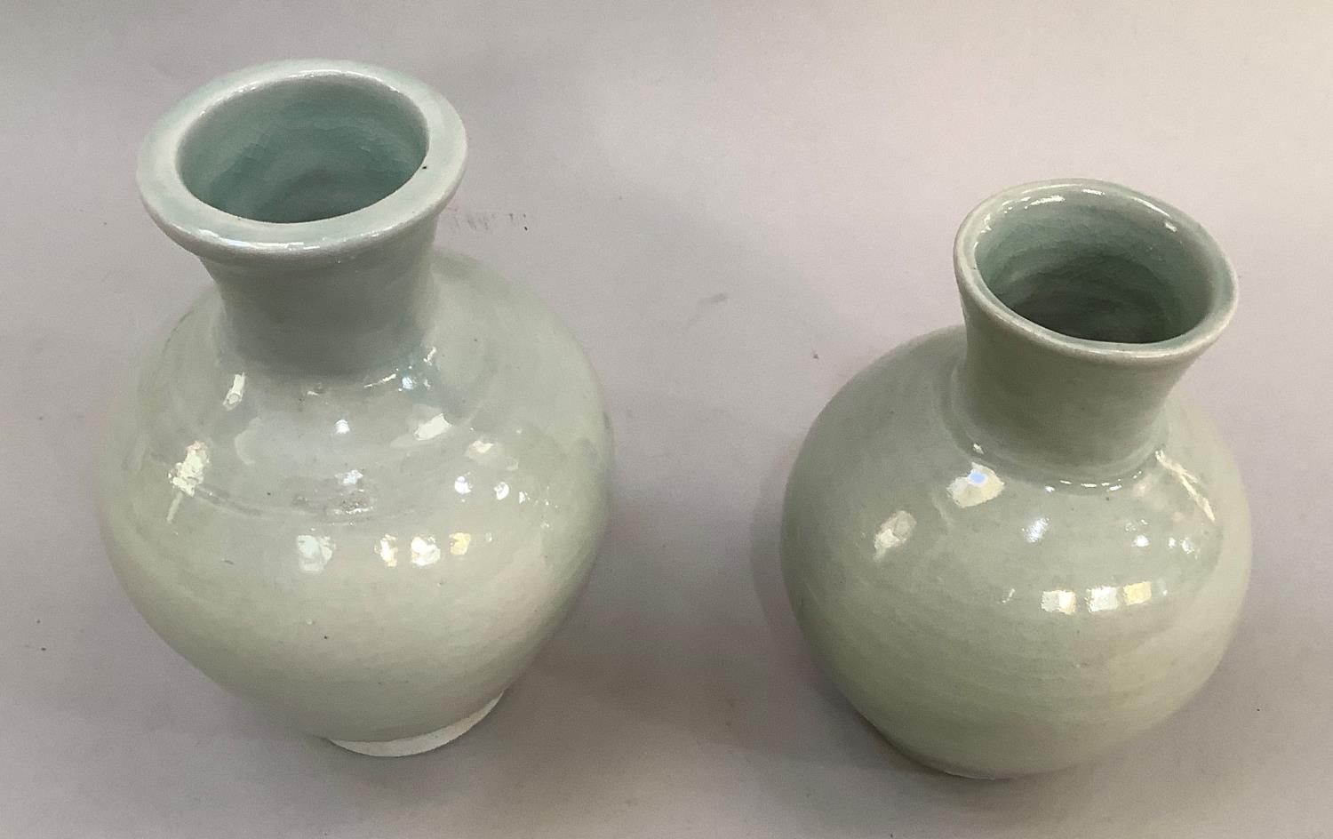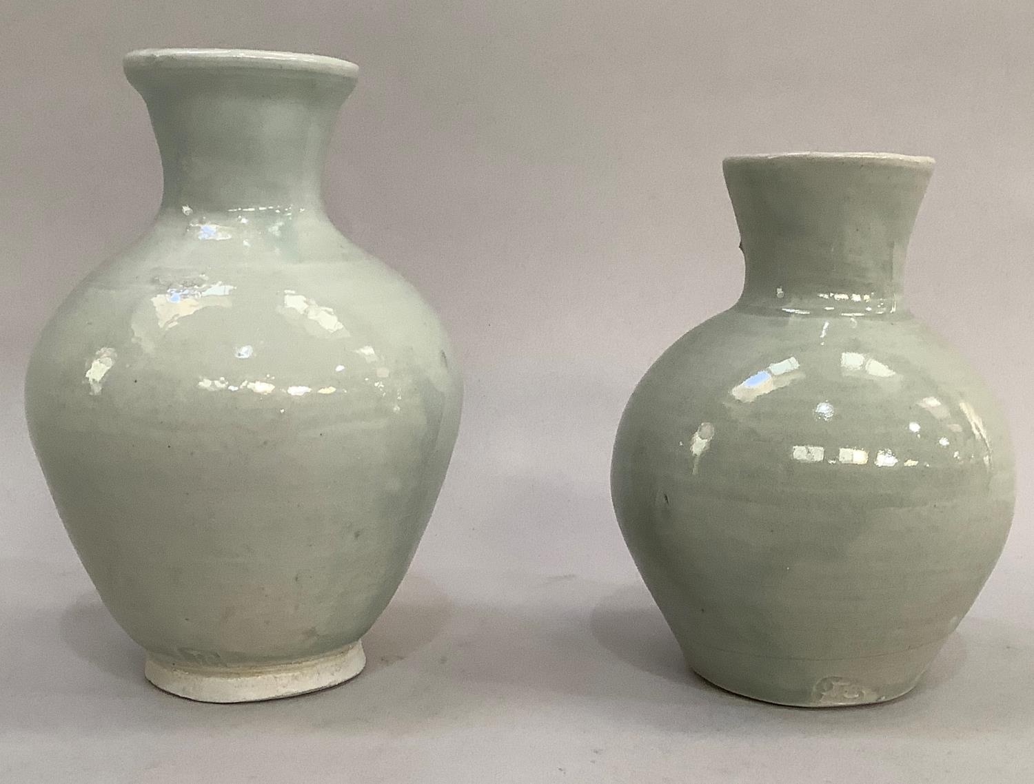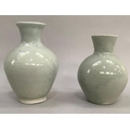 Two Celadon glazed vases by Trevor Corser, 17.5cm and 15cm high, (Trevor Corser potted at Bernard Leach's studio in St Ives)