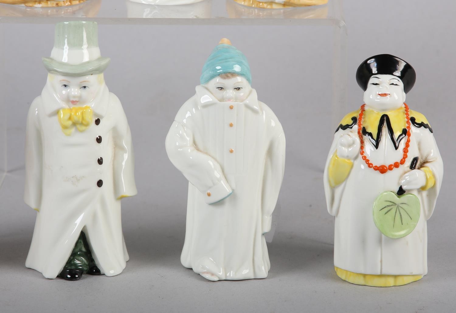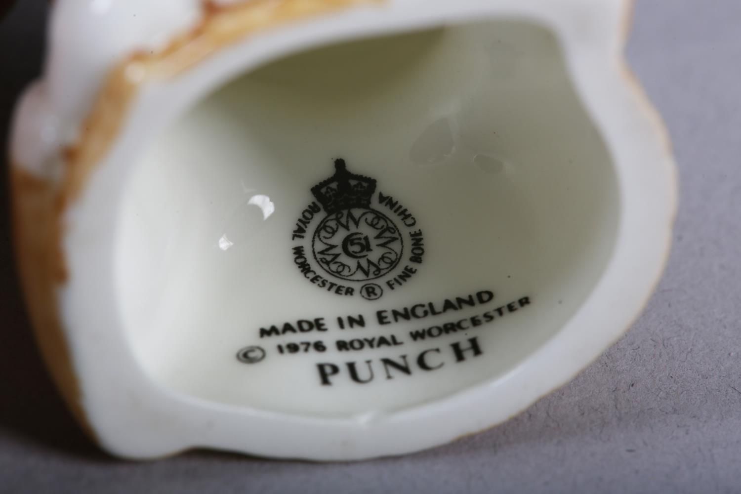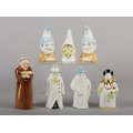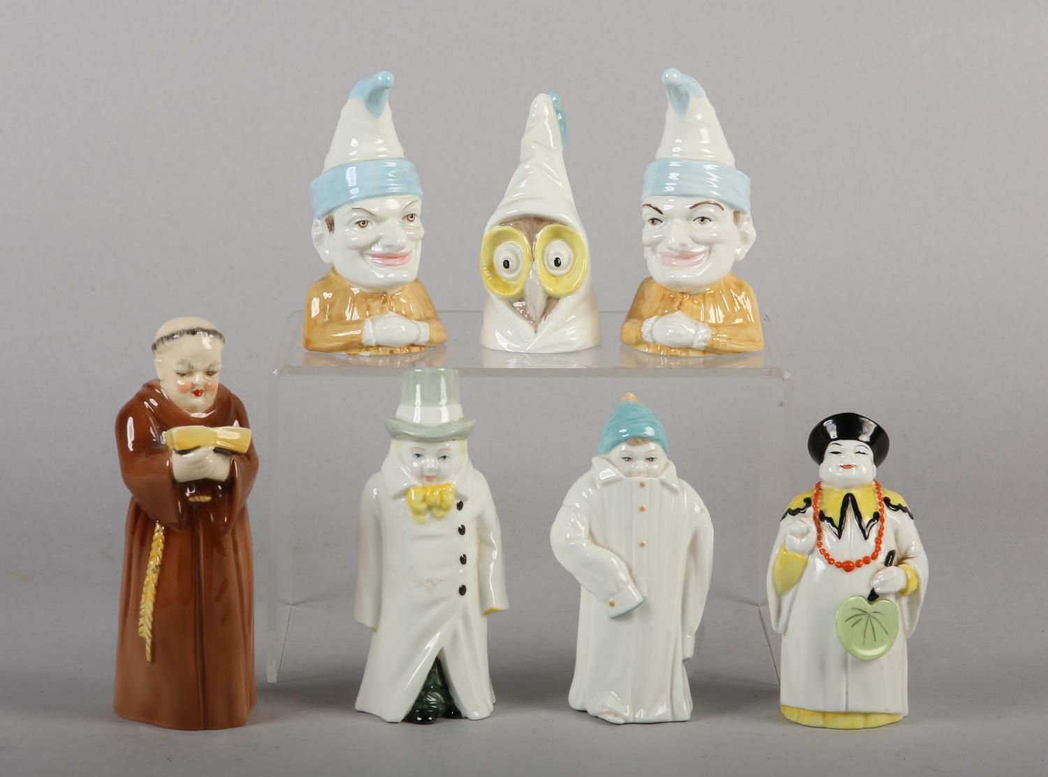 SEVEN ROYAL WORCESTER PORCELAIN CANDLE SNUFFERS, including Monk, Toddie, Budge, Mandarin, Owl, Punch (2), 8cm to 12cm high
