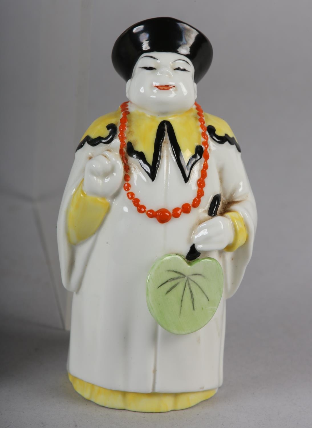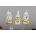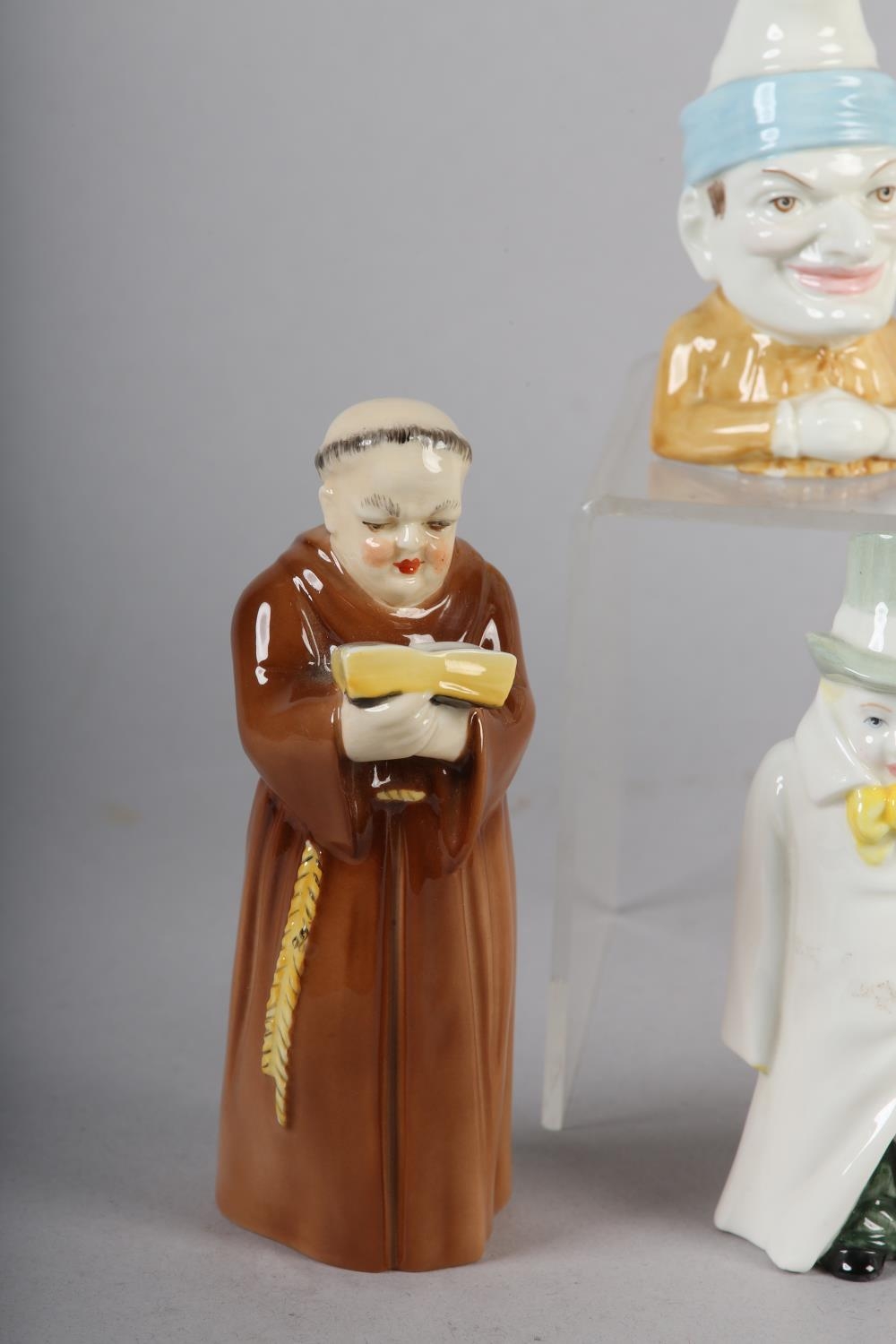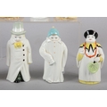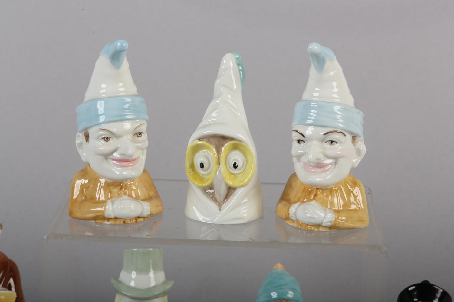 SEVEN ROYAL WORCESTER PORCELAIN CANDLE SNUFFERS, including Monk, Toddie, Budge, Mandarin, Owl, Punch (2), 8cm to 12cm high