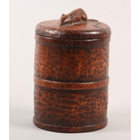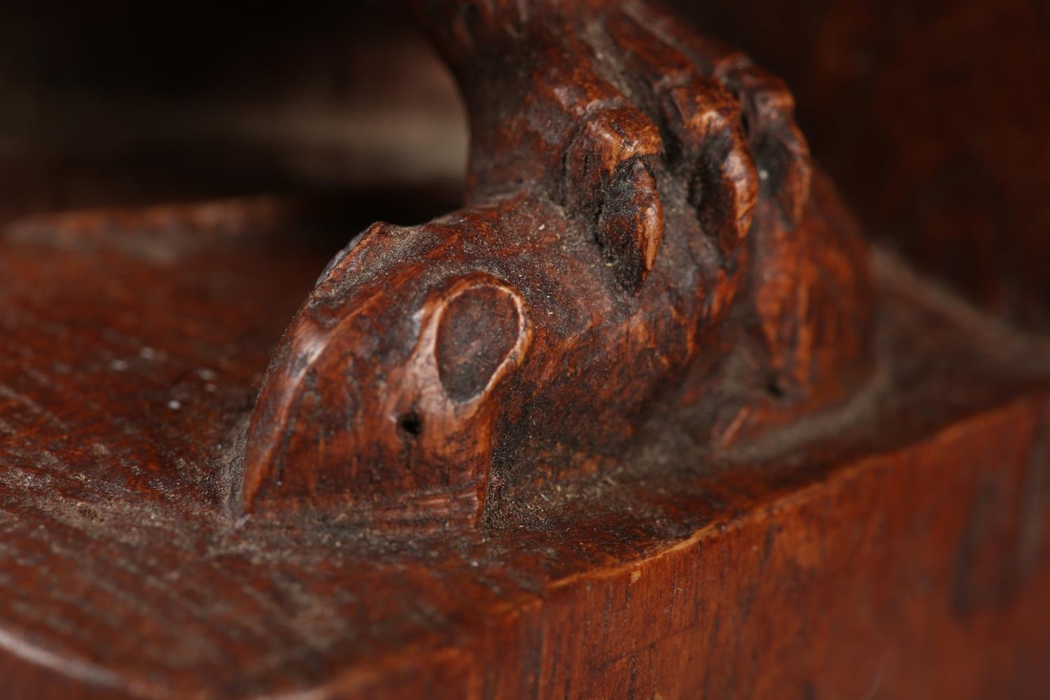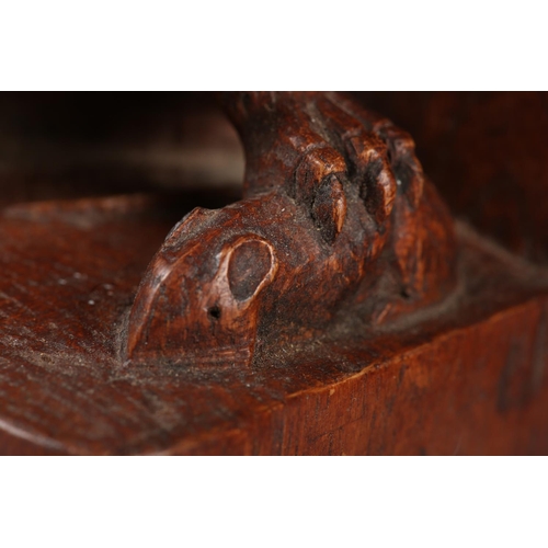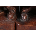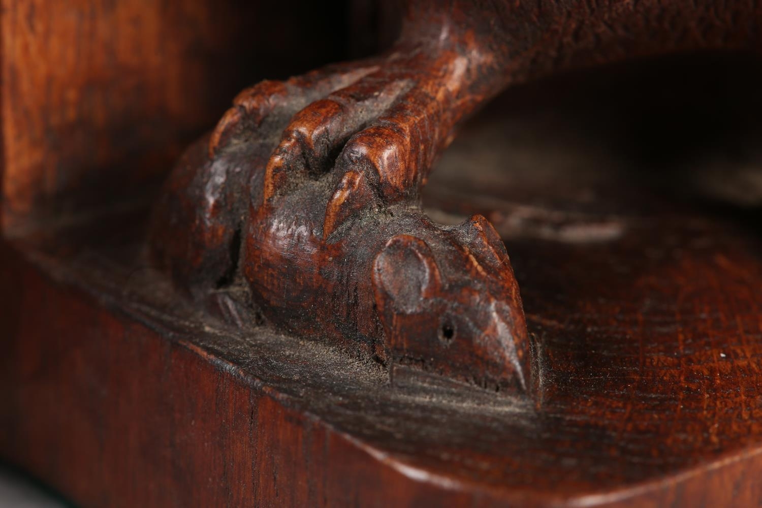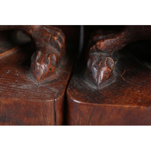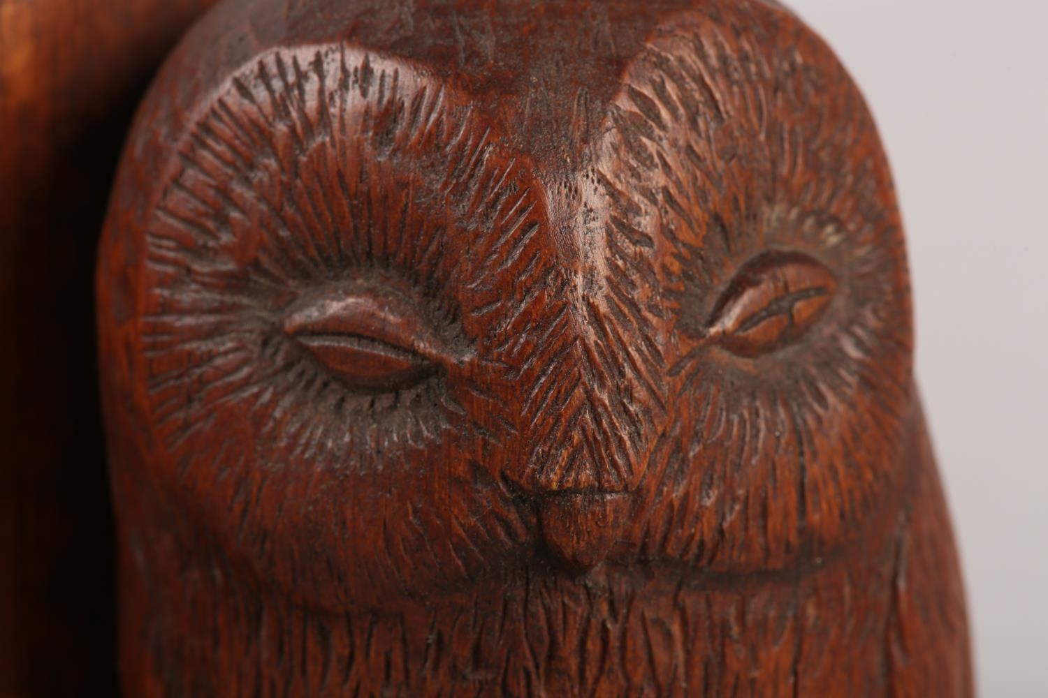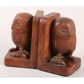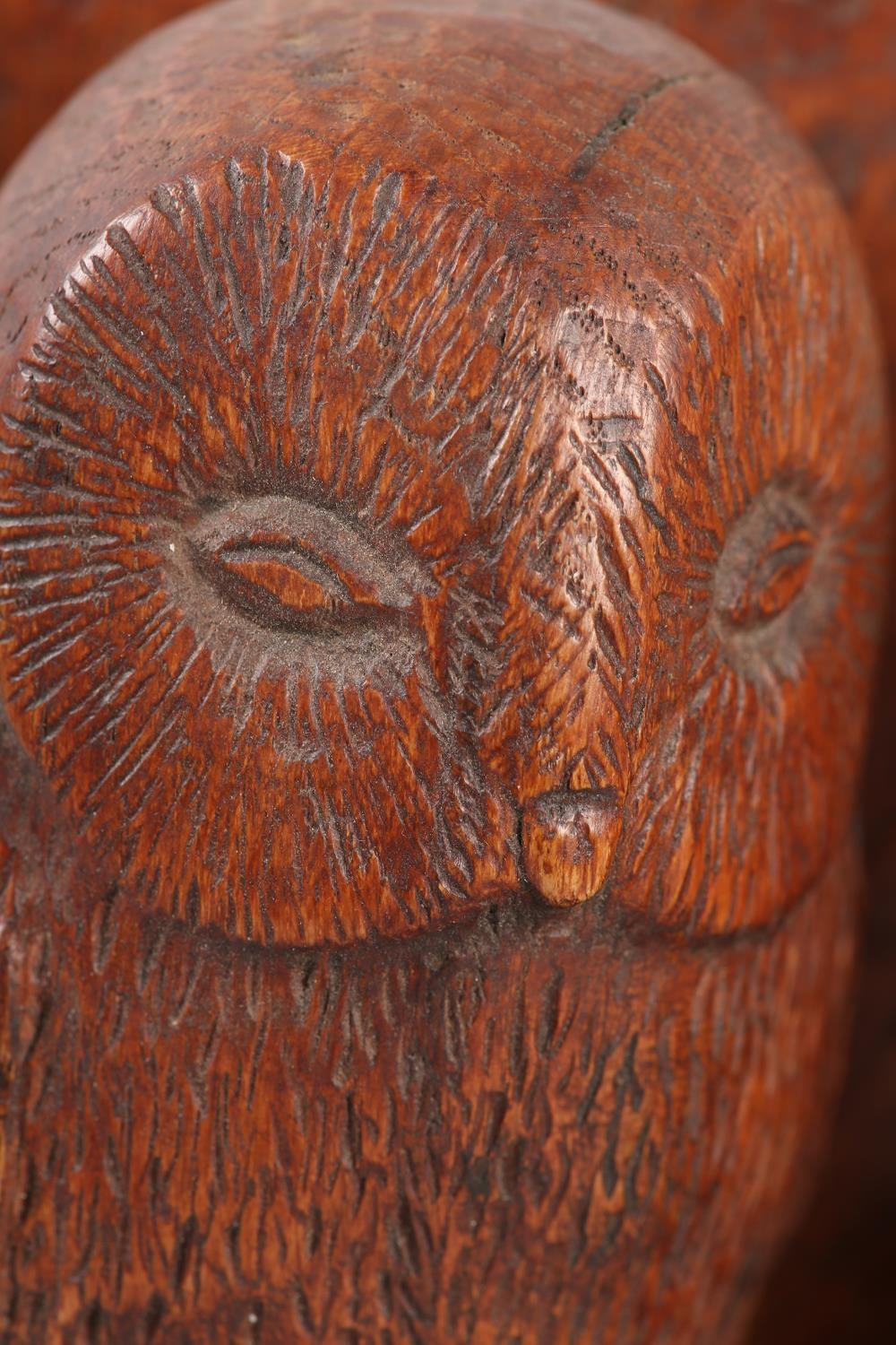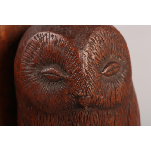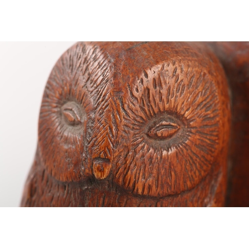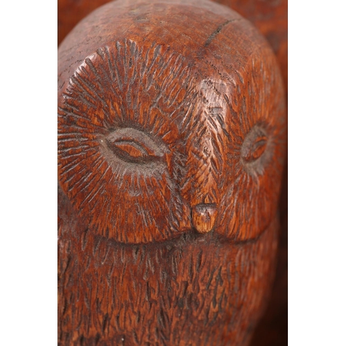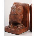 WORKSHOP OF ROBERT 'MOUSEMAN' THOMPSON OF KILBURN, a pair of carved English oak owl bookends, each standing, holding a mouse under it's claw. 17cm high x 11cm wide x 11cm deep