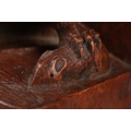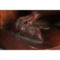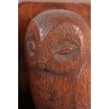 The front of the upright has two fine cracks, vertical on right hand side. The base has two short vertical cracks on right hand corner, 1cm and 0.75cm. Right hand side has two parallel cracks adjacent to the back. The grain has opened slightly, just below the right eye.