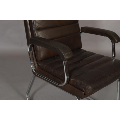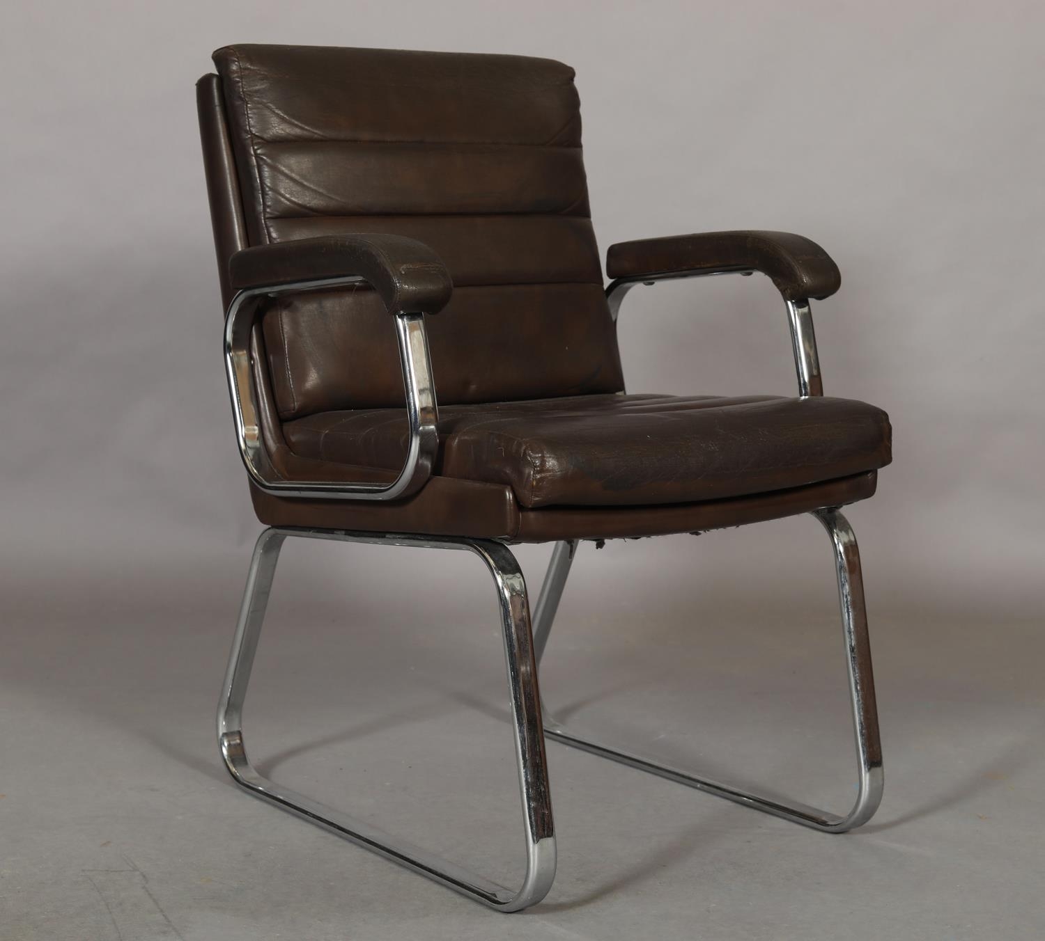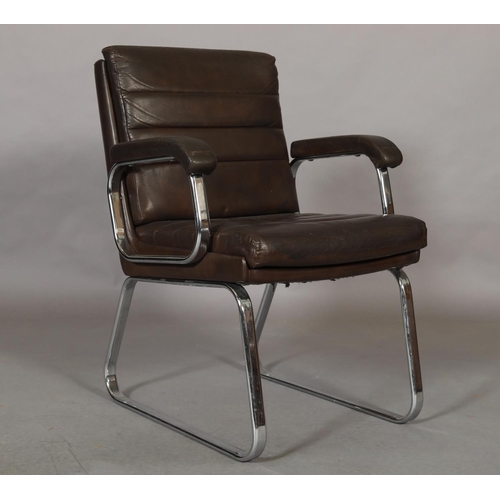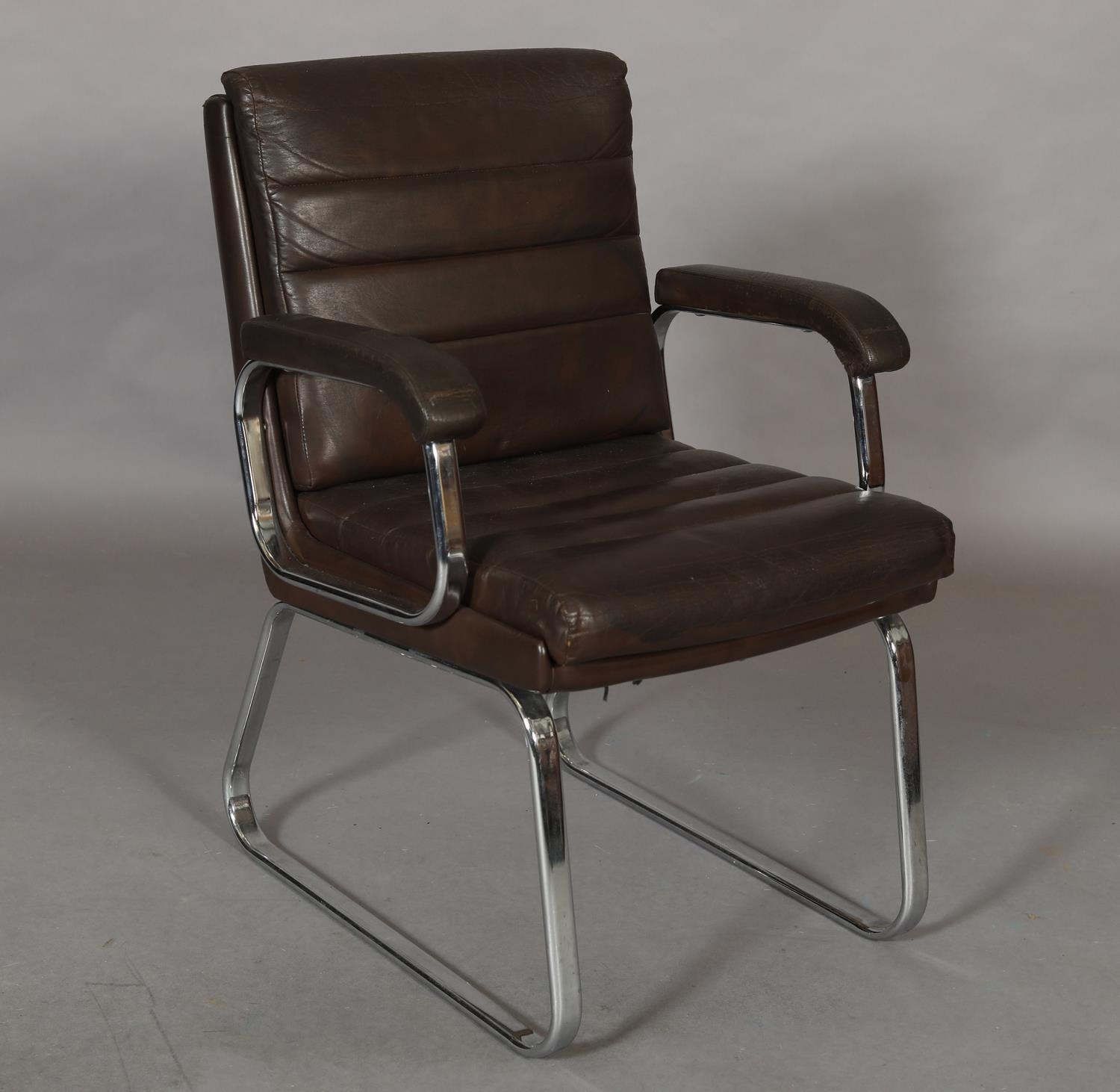 Gordon Russell for Verco, c1970s, a brown leather and chrome office desk chair
