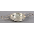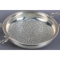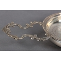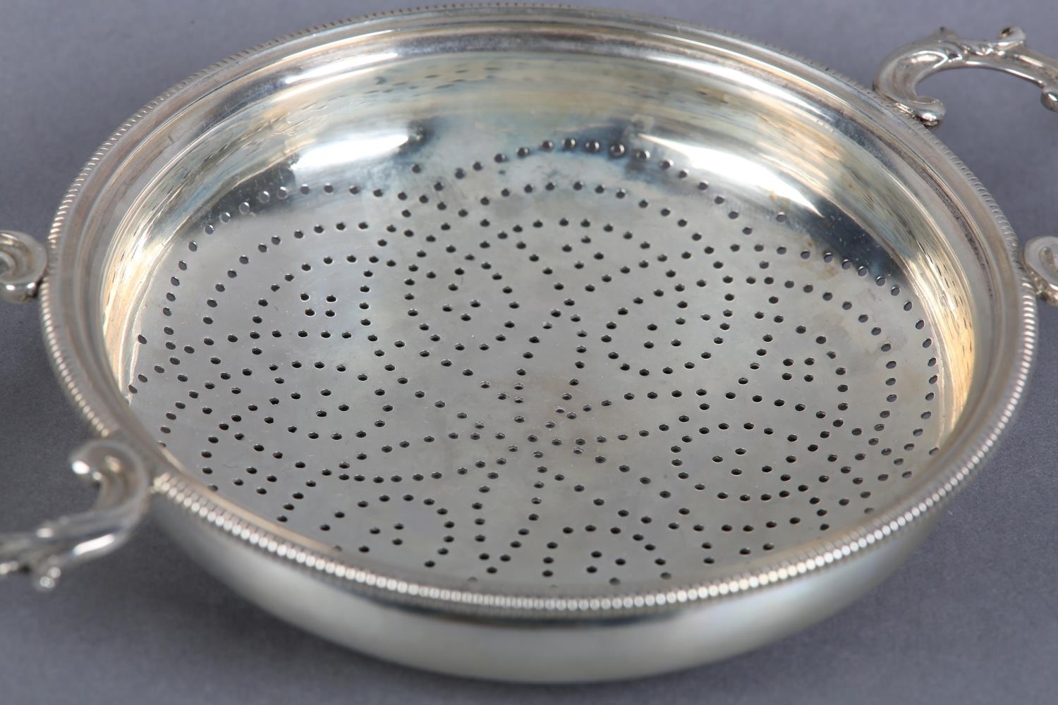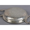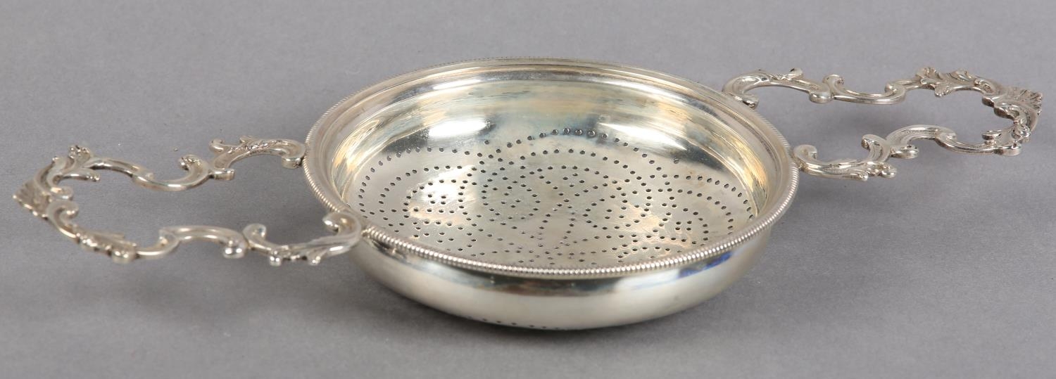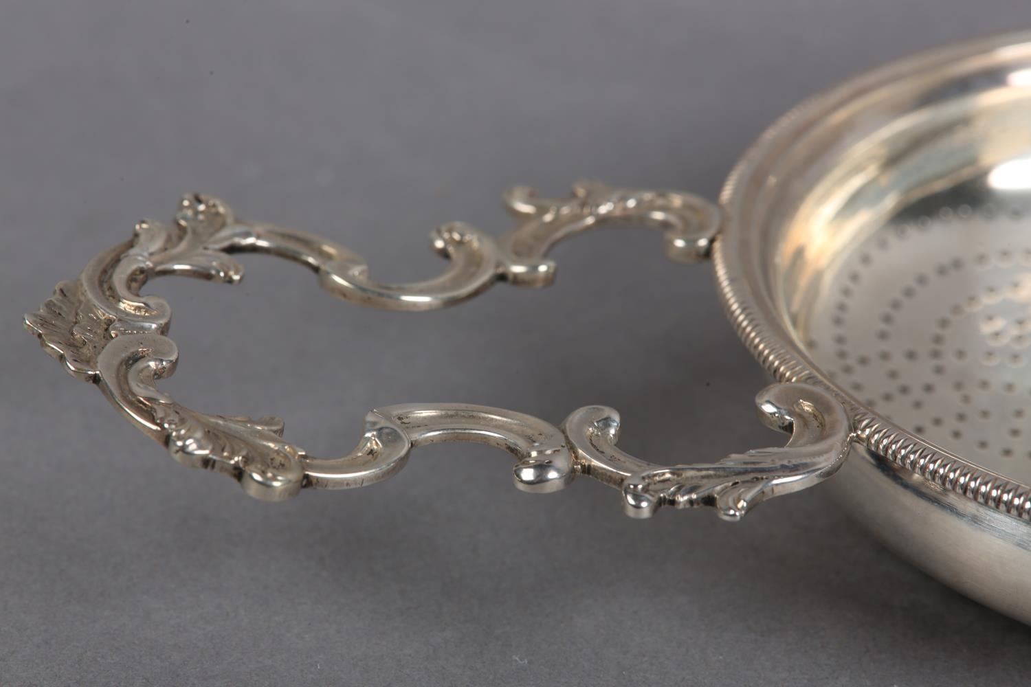 A GEORGE II SILVER LEMON STRAINER, London 1759 by Samuel Herbert, with star and scroll dot pierced circular bowl, gadroon edge and leaf scroll handles, approximately 25cm x 12cm, approximate weight 5.25oz