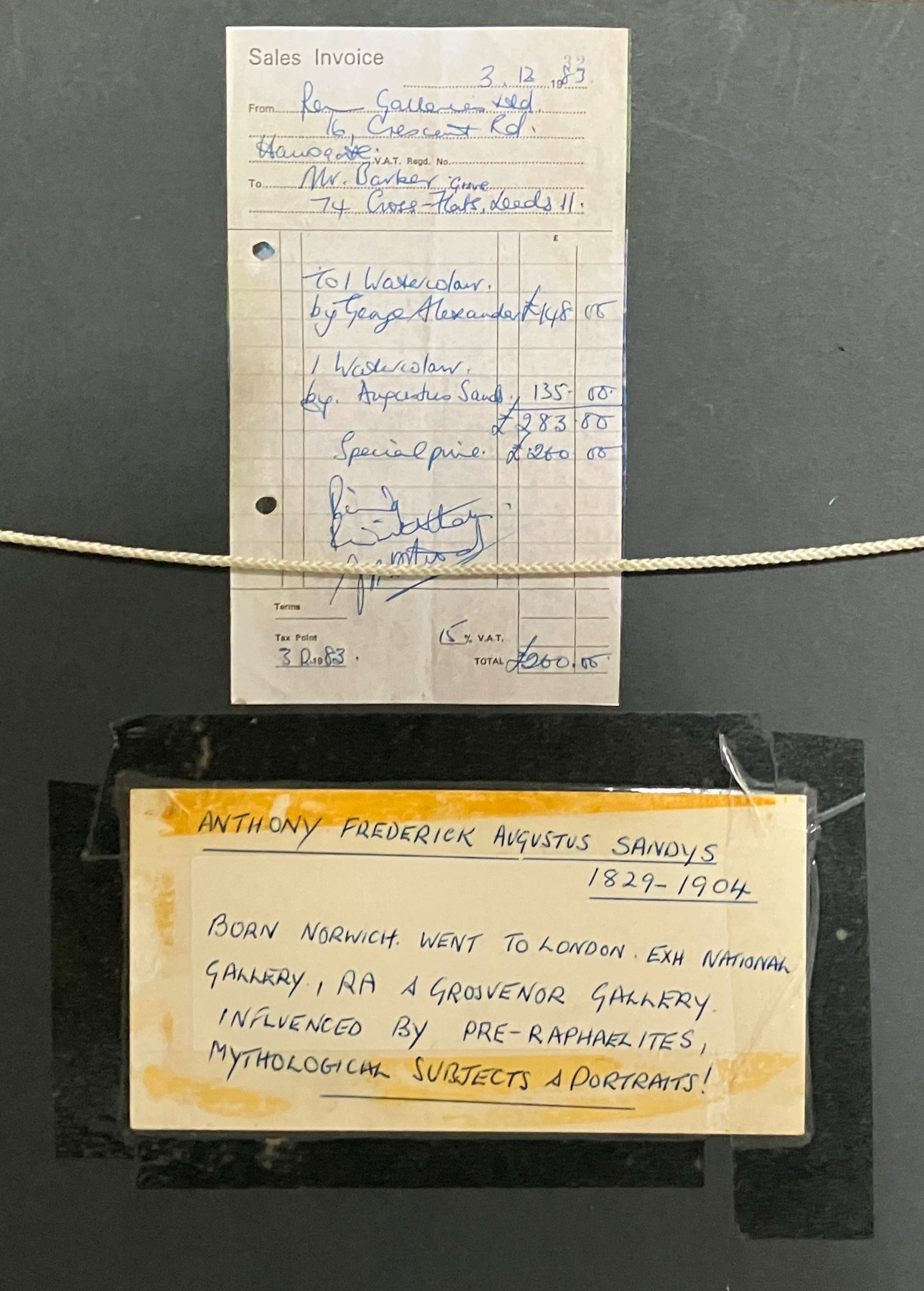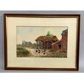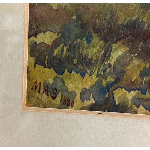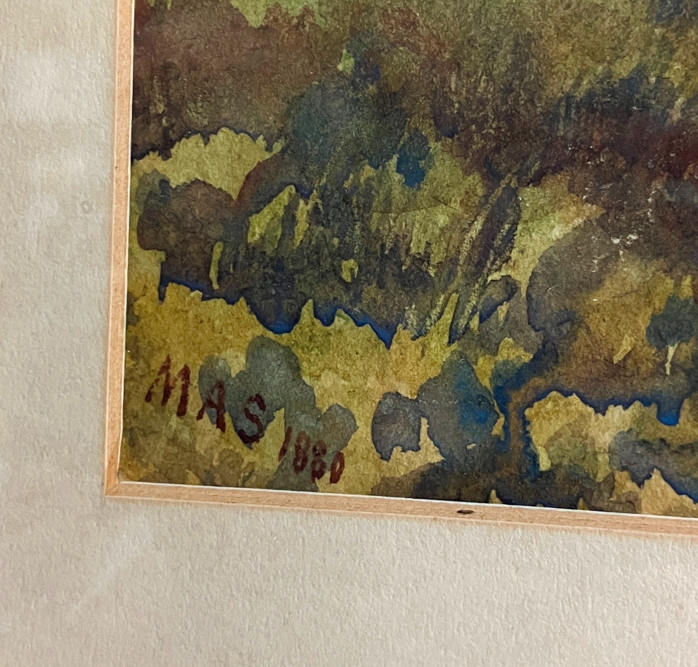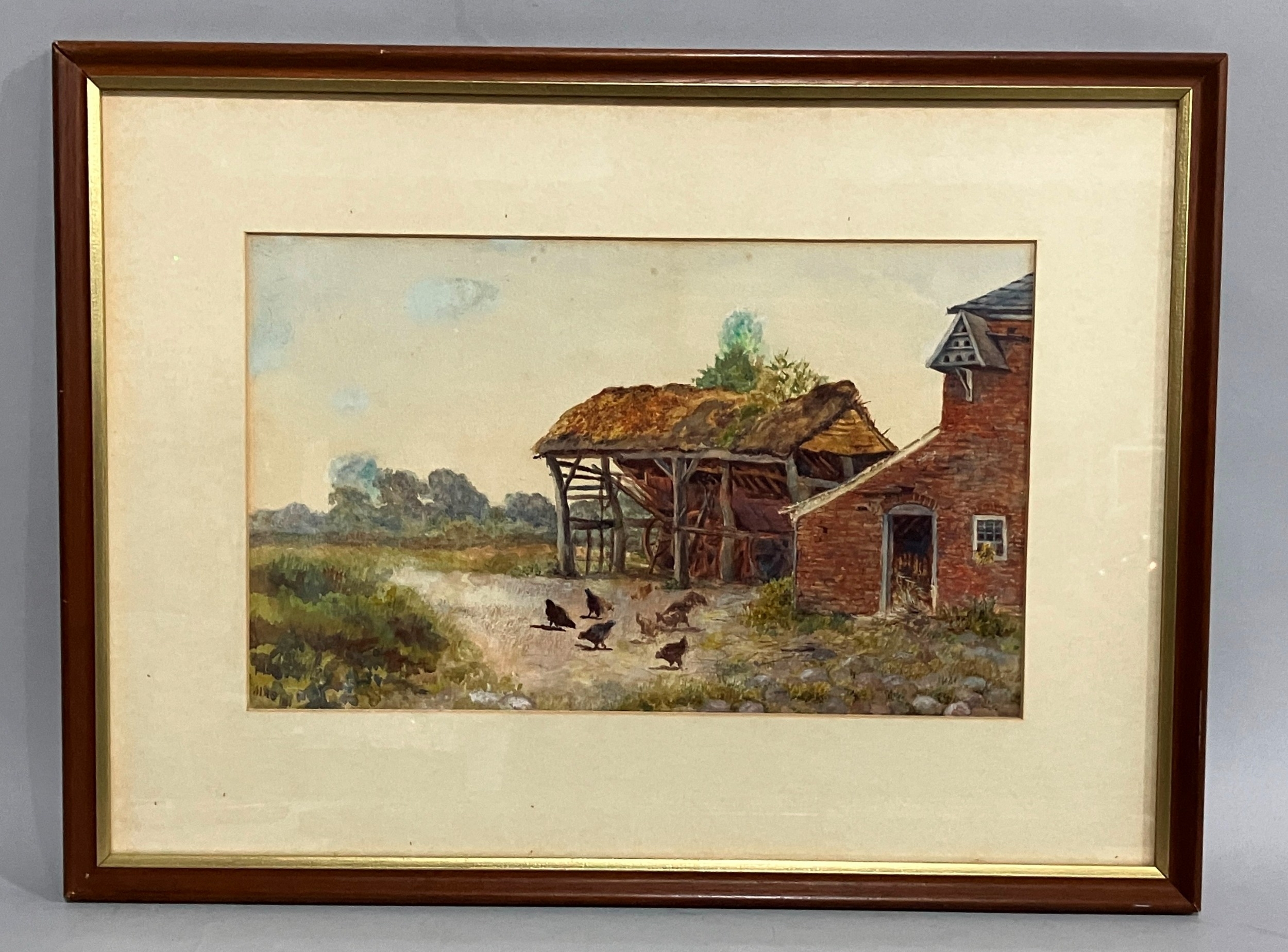 Farmyard with chickens, watercolour, initialled 'MAS 1880' to lower left, 81cm x 34cm