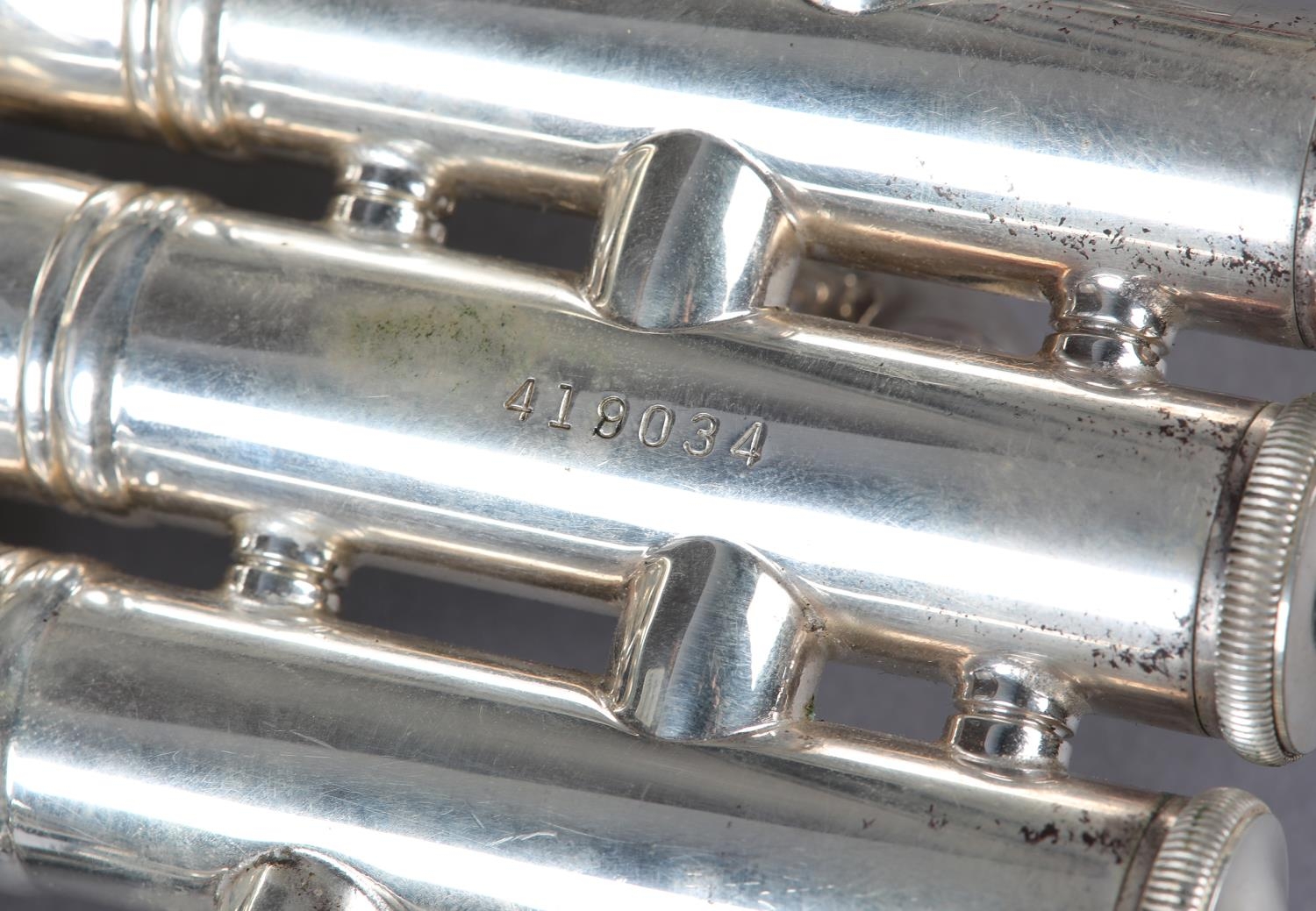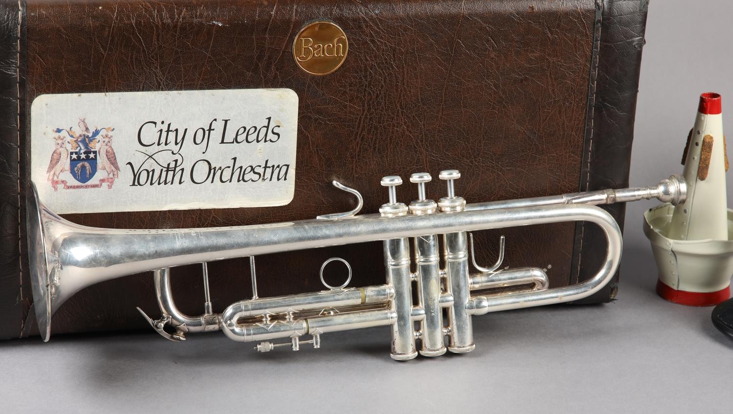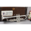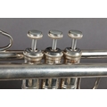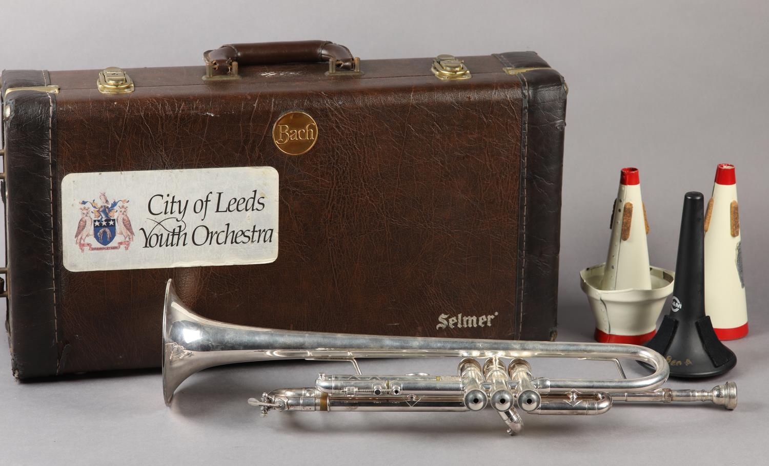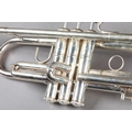 A VINCENT BACH STRADIVARIUS MODEL 43 SILVER PLATED TRUMPET, with 7C mouthpiece, a straight mute and a cup mute, in original fitted case