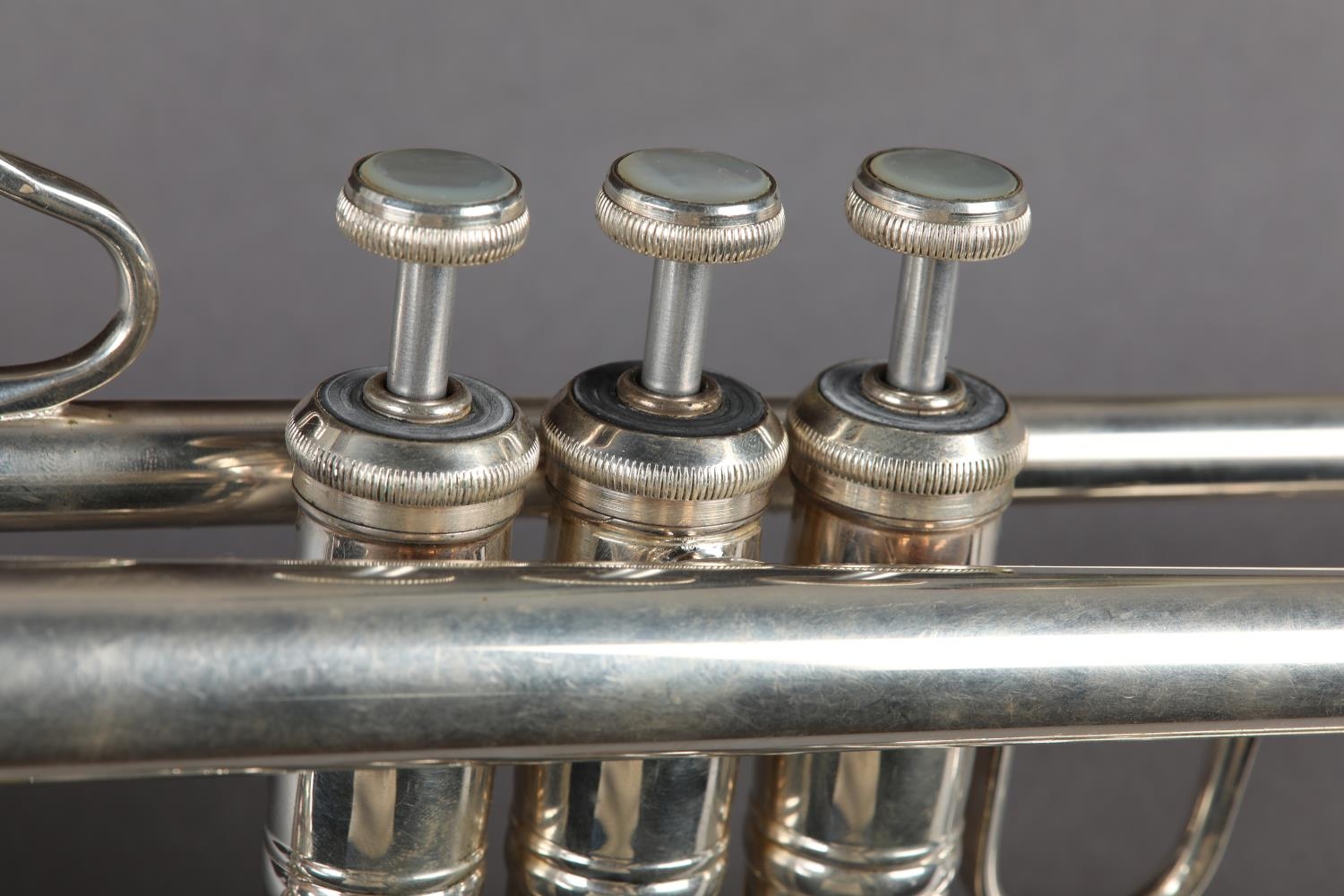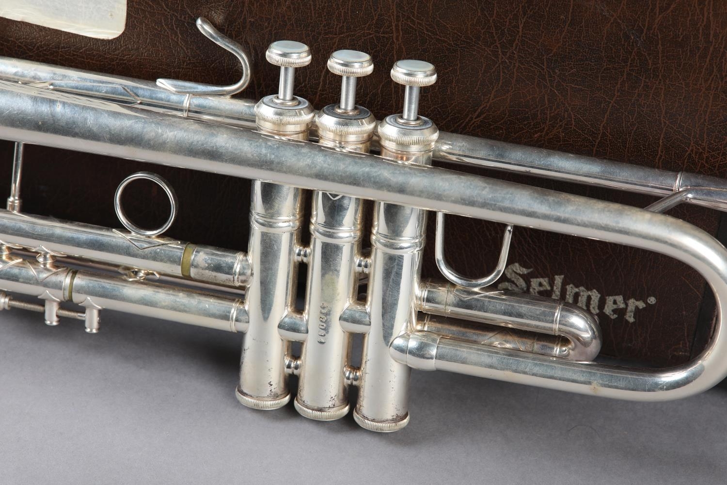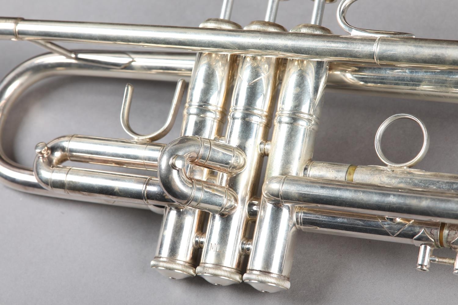 A VINCENT BACH STRADIVARIUS MODEL 43 SILVER PLATED TRUMPET, with 7C mouthpiece, a straight mute and a cup mute, in original fitted case
