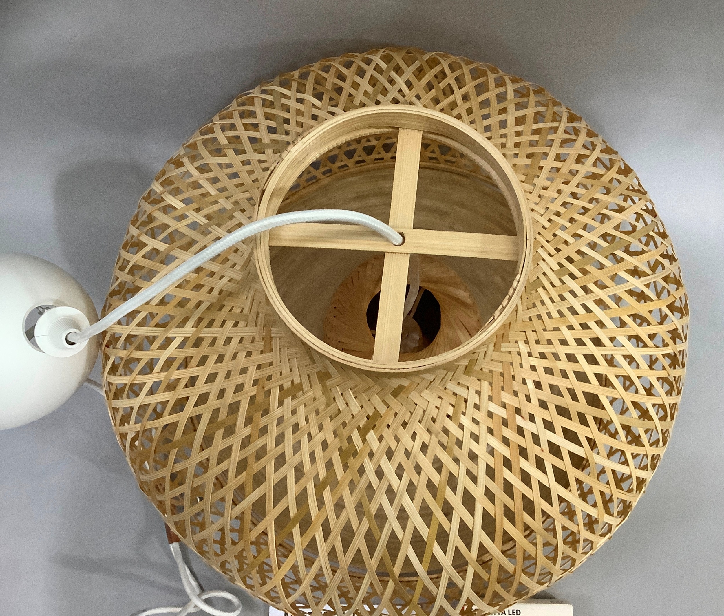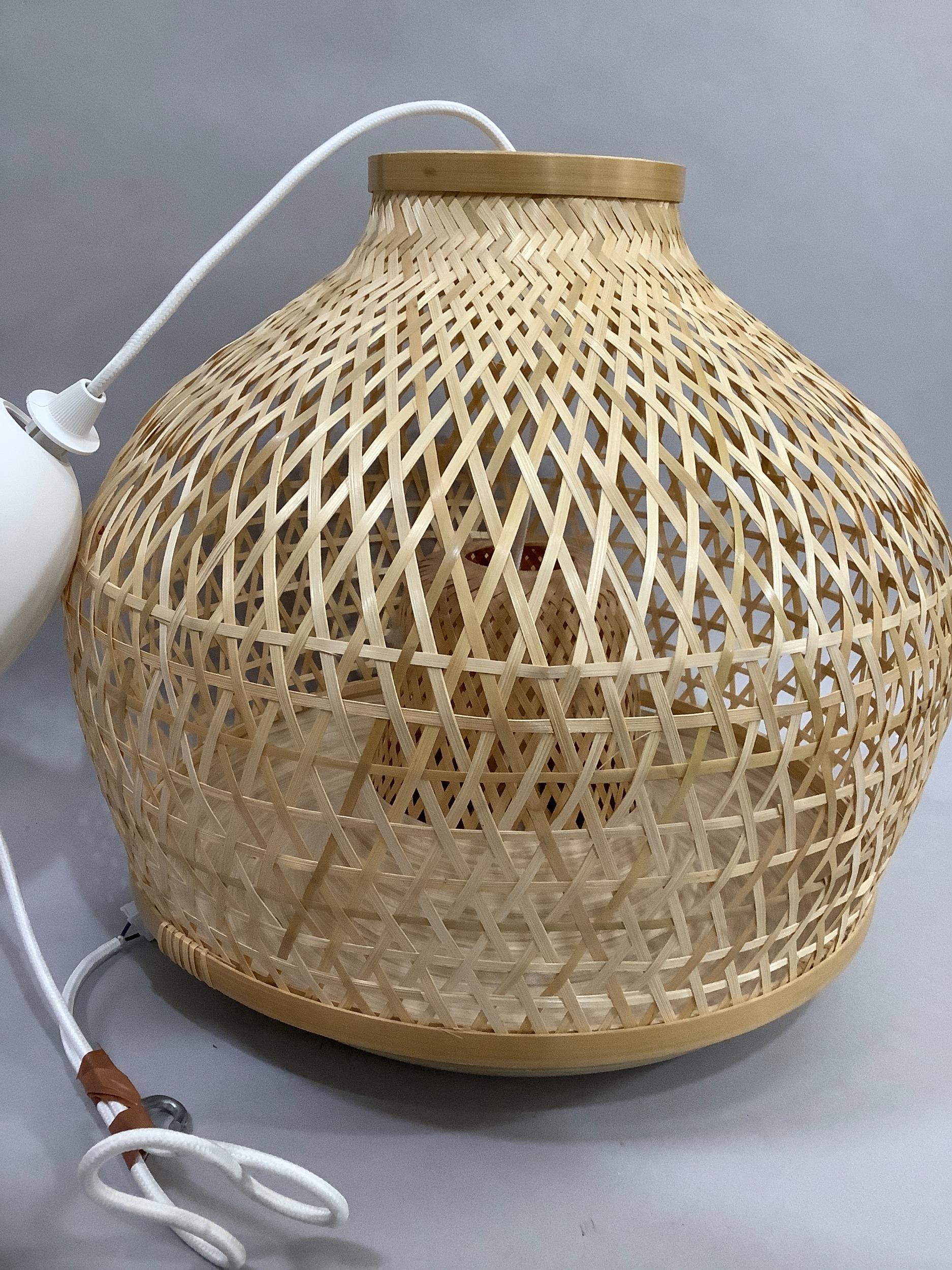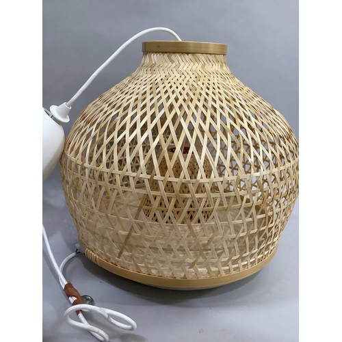 An Ikea basket weave ceiling light, 35cm high x 41cm diameter approximately