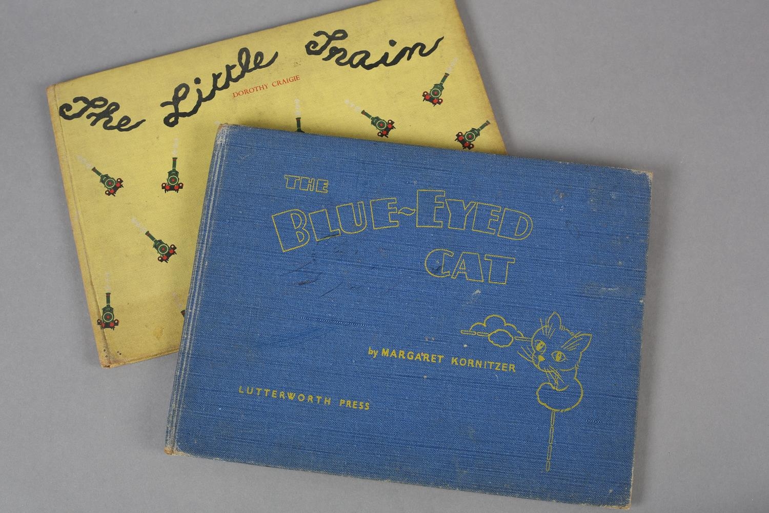 THE LITTLE TRAIN, 1ST ED., col. illus. by Dorothy Craigie. pictorial endpapers, yellow pictorial cloth, pub. Eyre & Spottiswode, oblong, inscription in ink to end paper, together with Kornitzer, Margaret - The Blue-Eyed Cat 1st ed. 1945, pub. Lutterworth Press, blue pictorial cloth