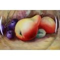 Several tiny specks of paint loss above and left of the pears on the rim.