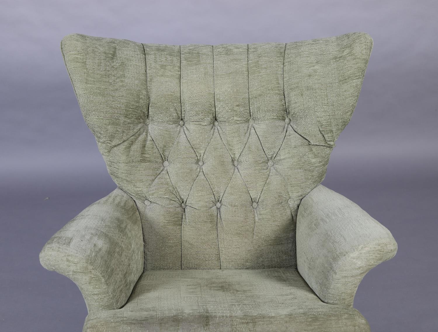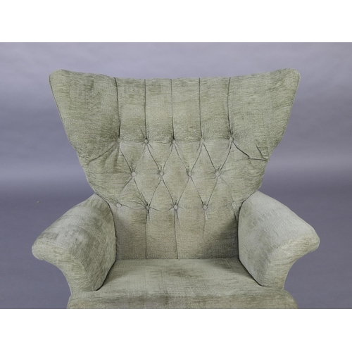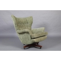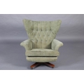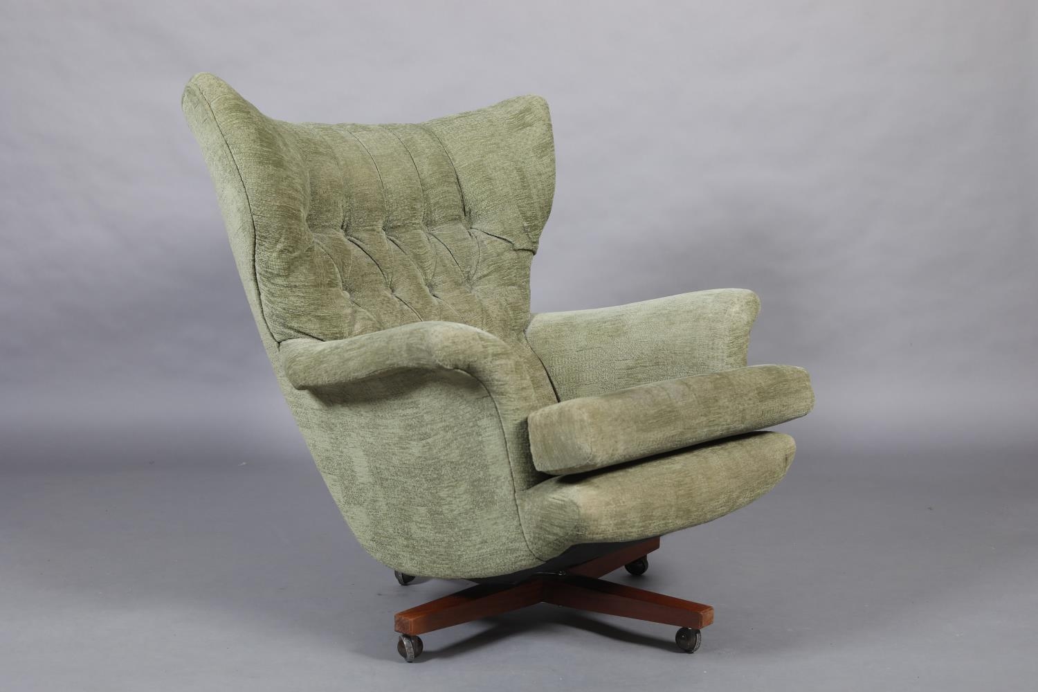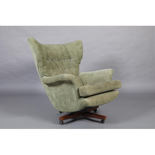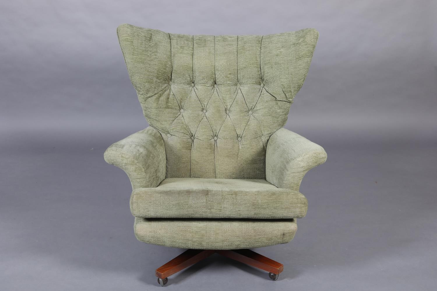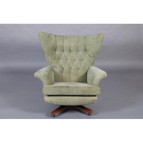 Paul Conti for G-Plan, A 'Blofeld' model 6250 swivel armchair, mid 20th century, upholstered in buttoned green velour, on a teak base with castors, 92cm wide x 97cm high