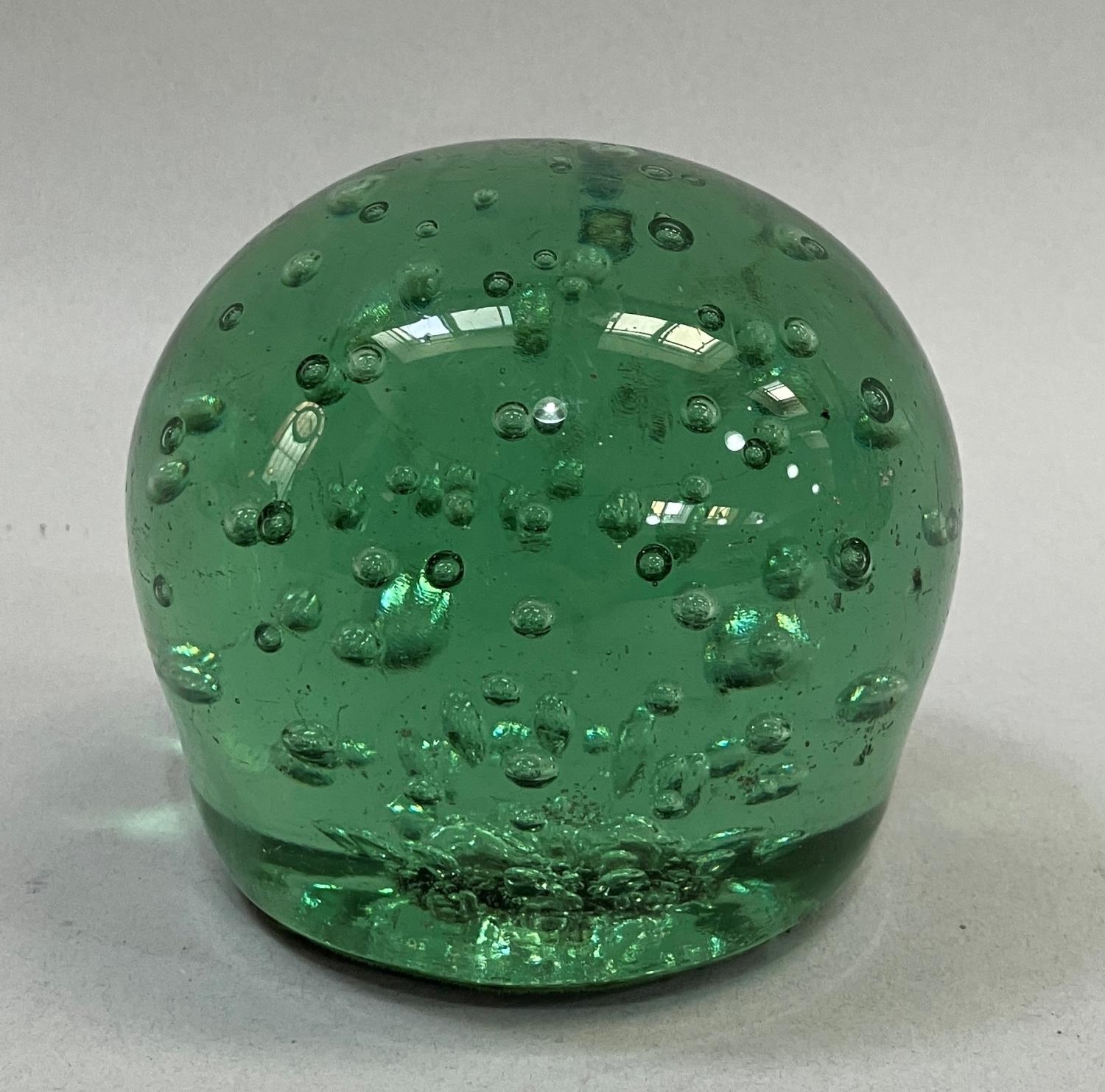 A 19th century green glass dump, approximately 10cm diameter x 10cm high