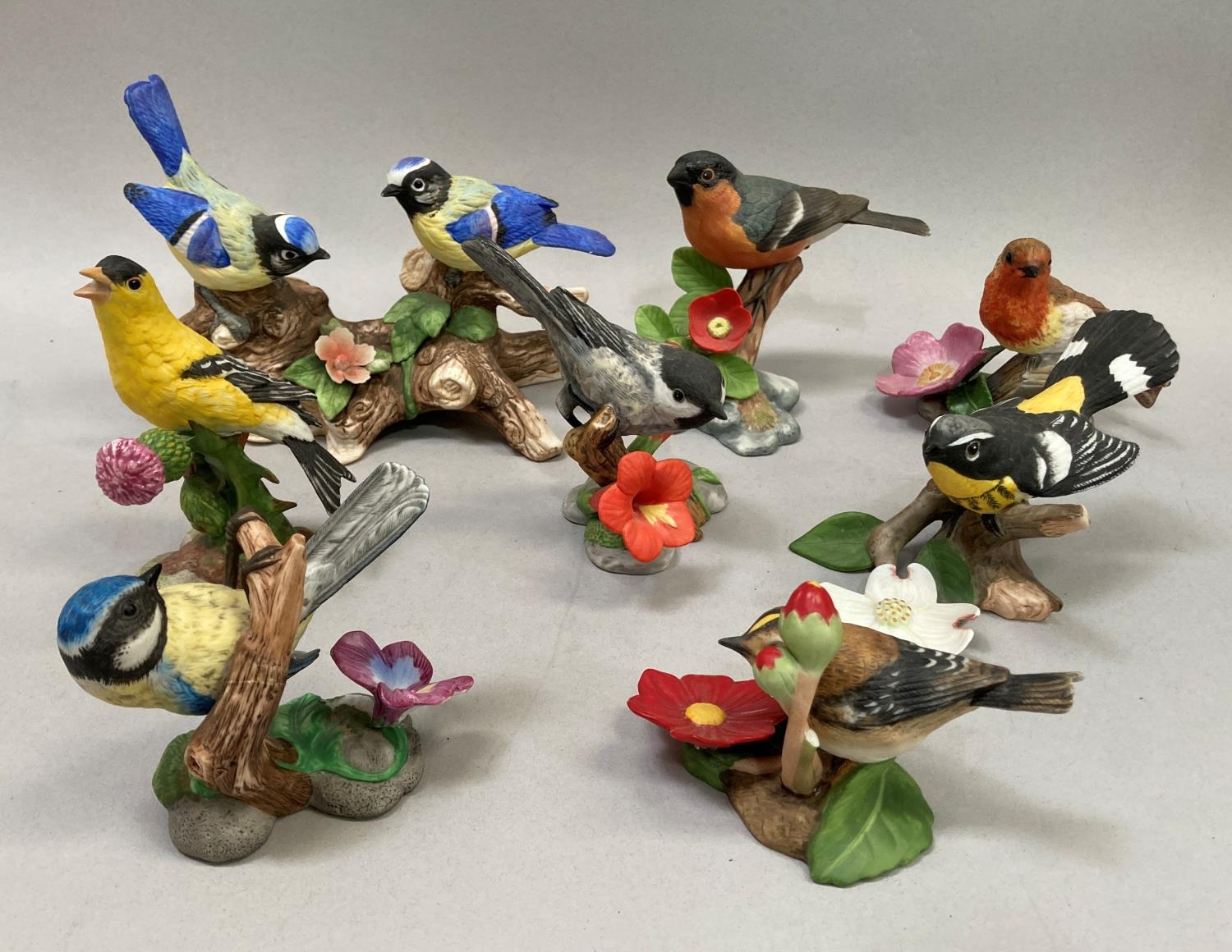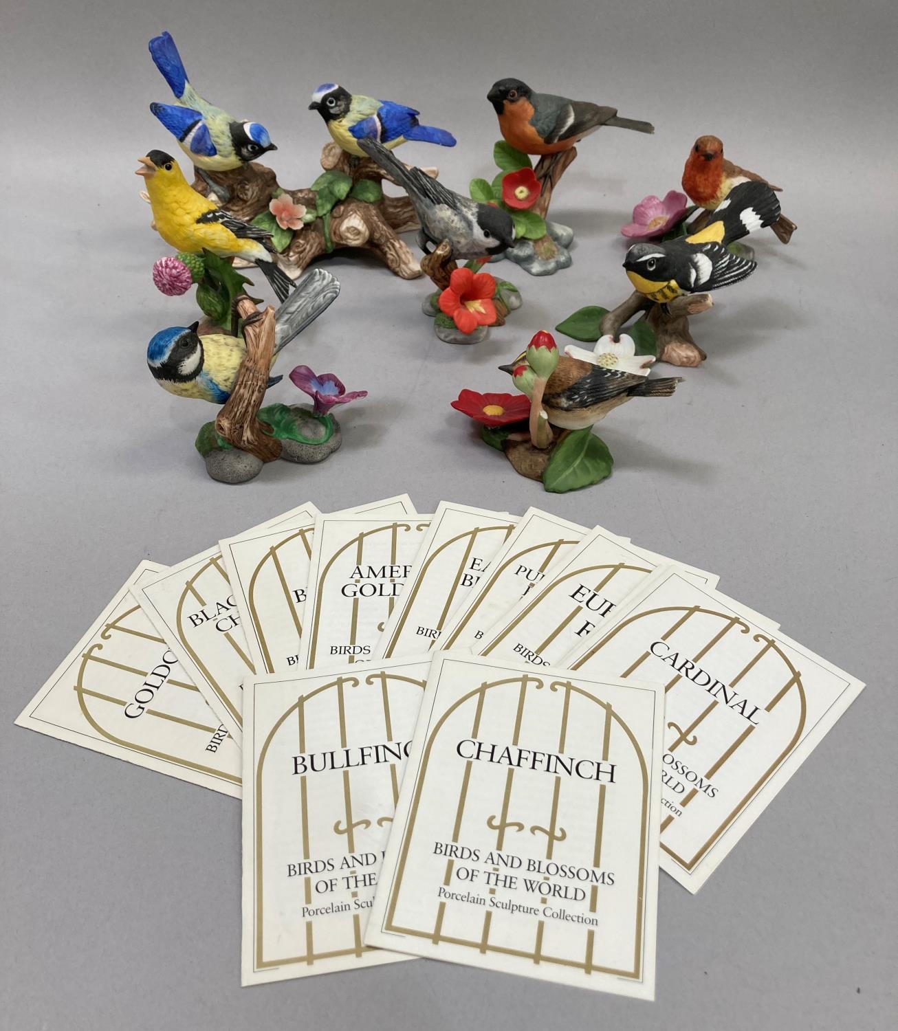 A collection of nine porcelain birds by Franklin Mint