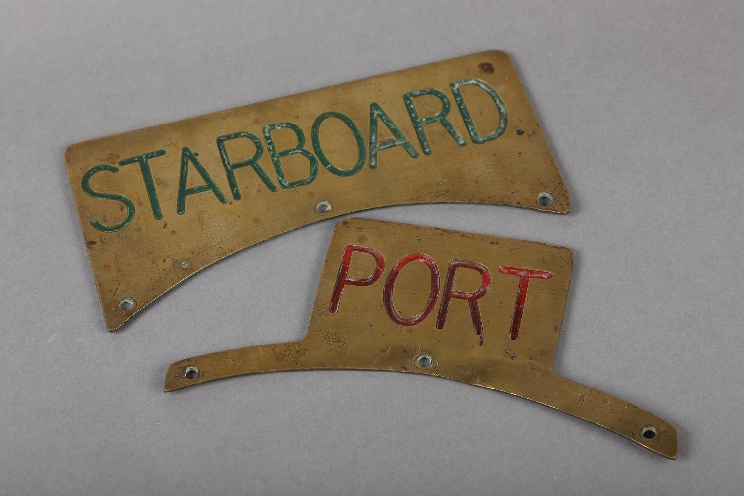TWO EARLY 20TH CENTURY SHIP'S COPPER PLAQUES, lettered 'Port' and 'Starboard', 19.5cm x 7cm and 19cm x 9cm with fixing holes (2)